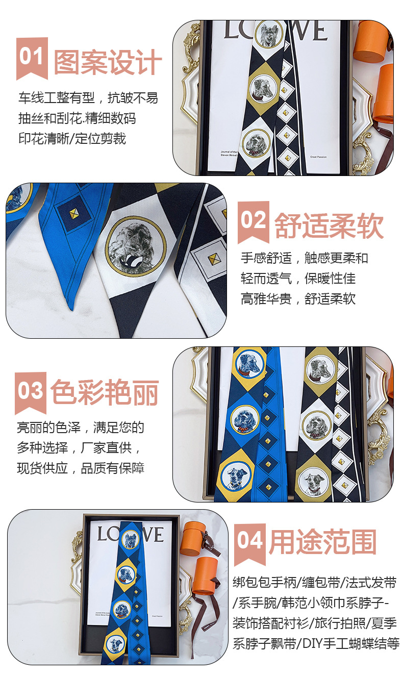 포장 스트랩 하이 엔드 프랑스 스타일 헤어 스트랩 손목 한국 스타일 작은 스카프 목 장식 리본 애완 동물 개 실크 스카프