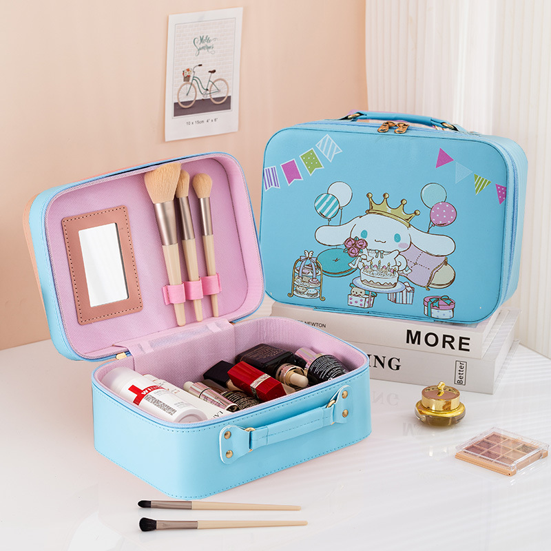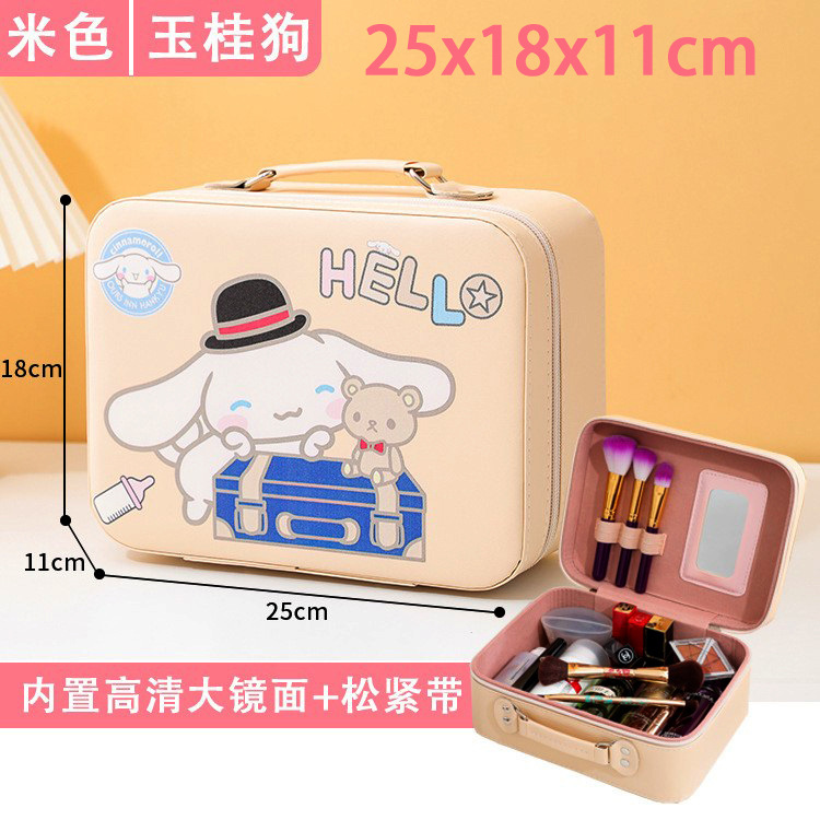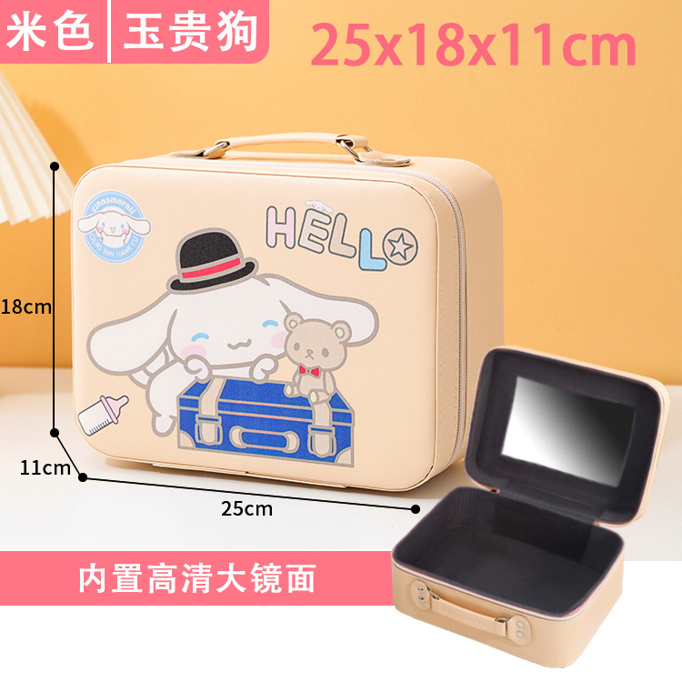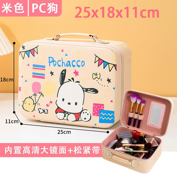 거울이 달린 휴대용 화장품 케이스 Kapibara 화장품 가방 휴대용 대용량 스킨 케어 제품 귀여운 만화 보관 상자스토어 가기