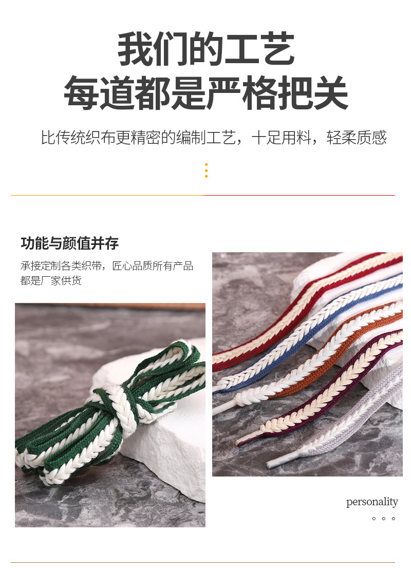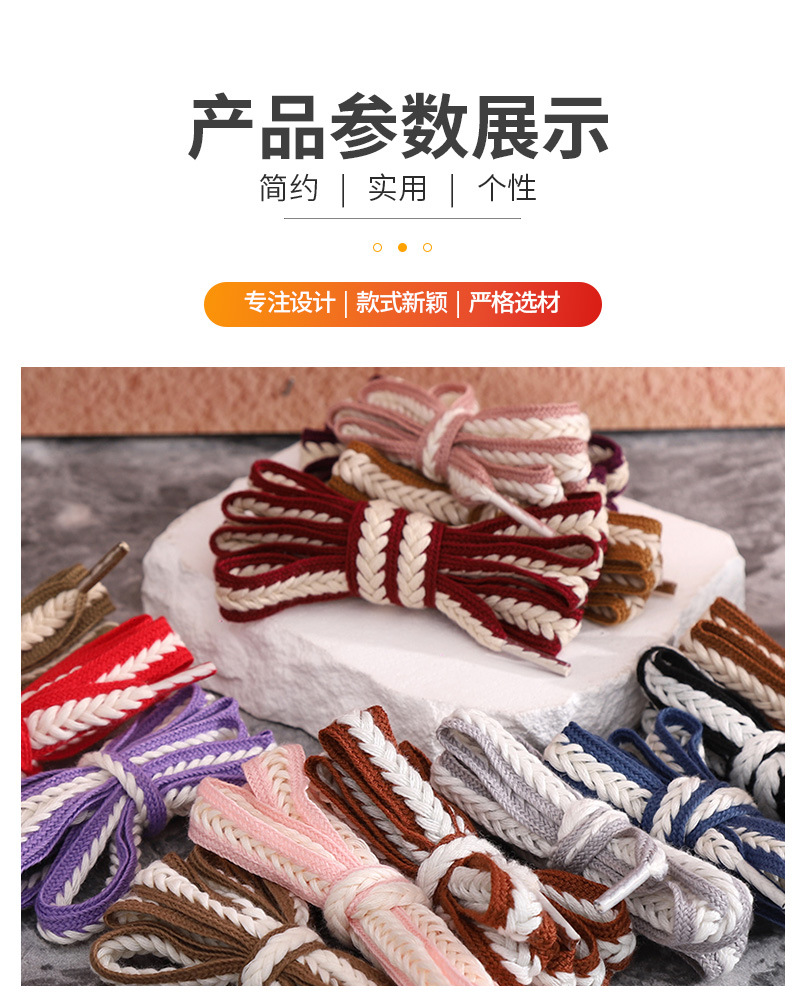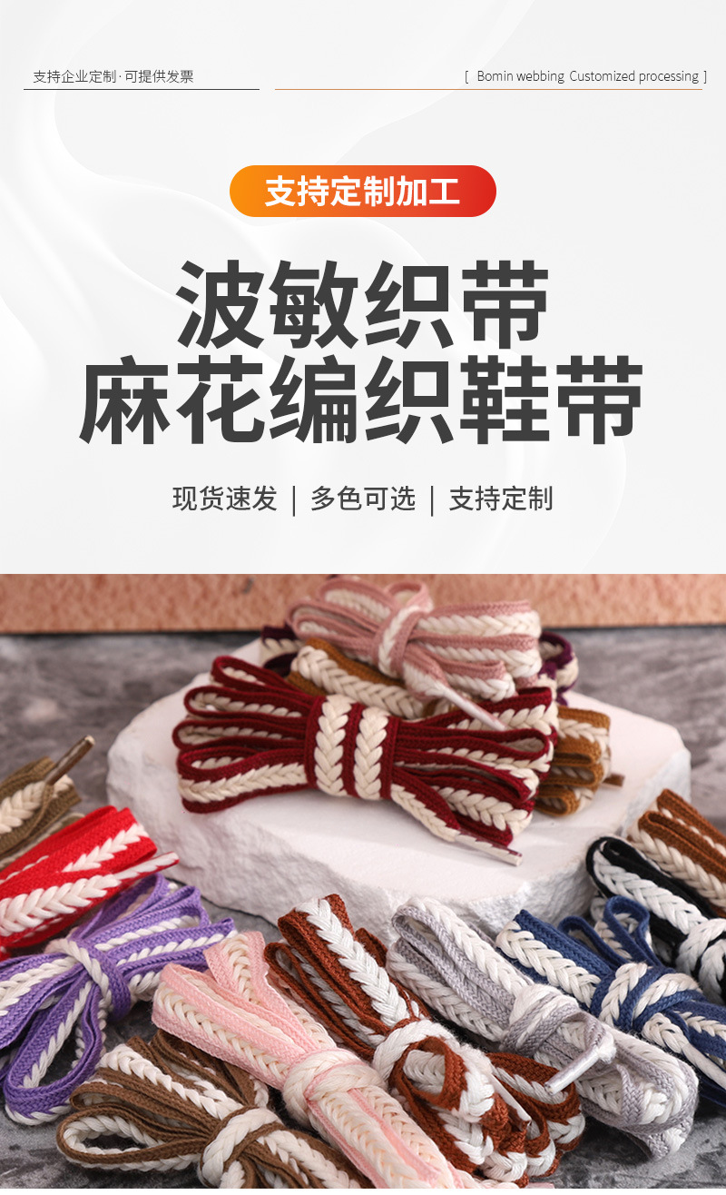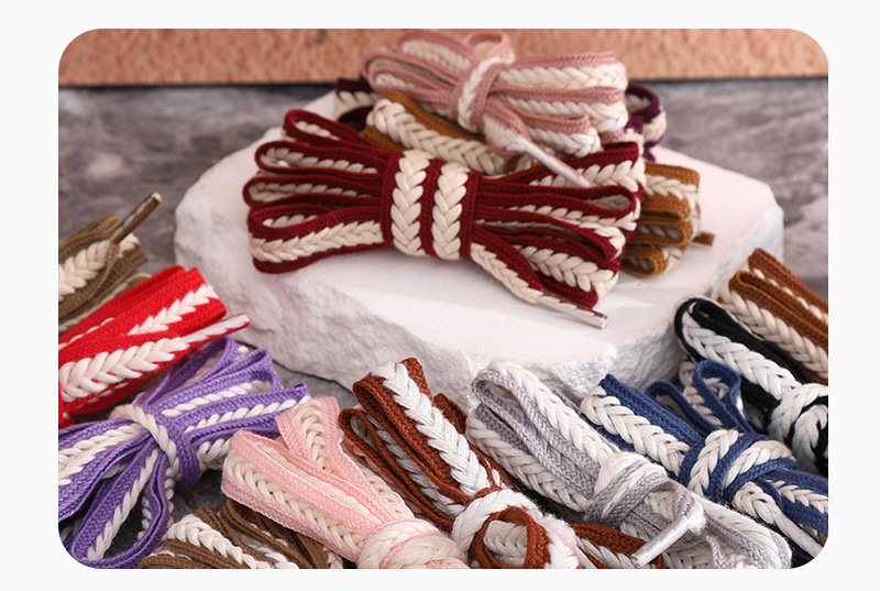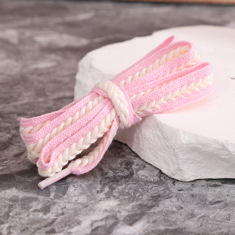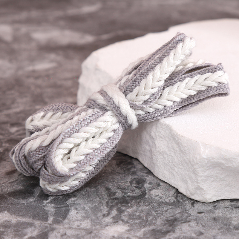 재고 도매 15mm 밀짚 꼬임 평평하고 넓은 폴리에스터 면 혼방 끈, 캐주얼 운동화 신발끈에 적합스토어 가기
