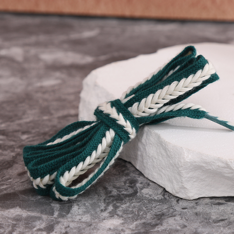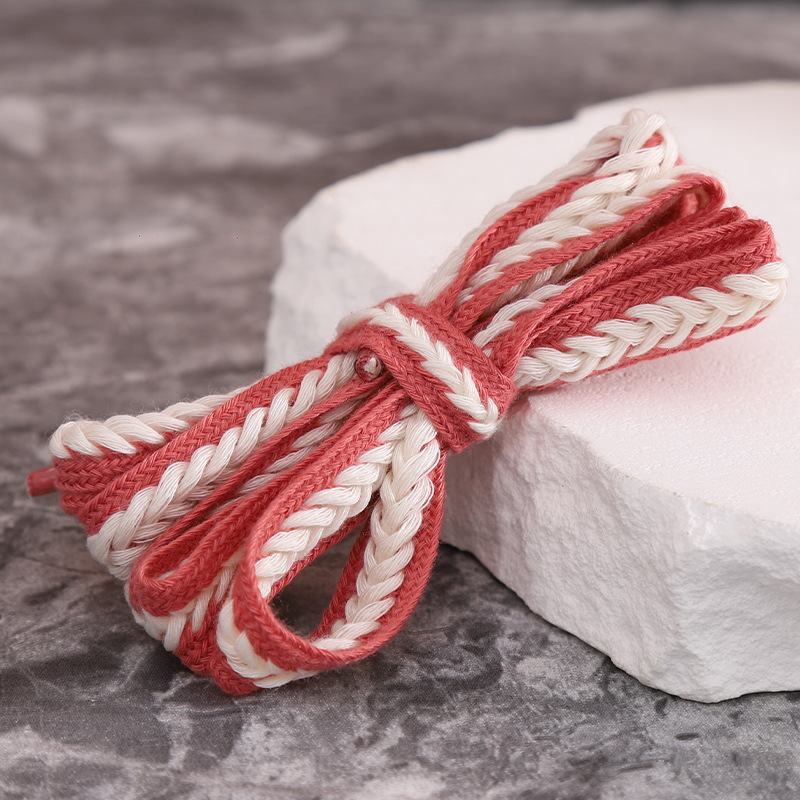 재고 도매 15mm 밀짚 꼬임 평평하고 넓은 폴리에스터 면 혼방 끈, 캐주얼 운동화 신발끈에 적합