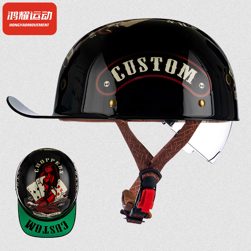 3C 인증 오토바이 오토바이 하프 헬멧 레트로 스쿠프 헬멧 독 수축 렌즈 야구 모자 오토바이 헬멧 안전 헬멧