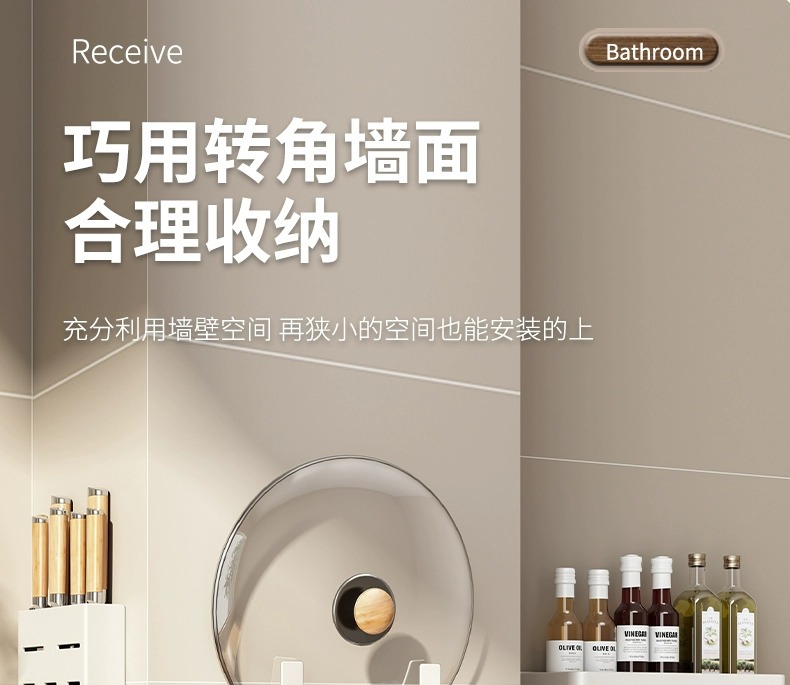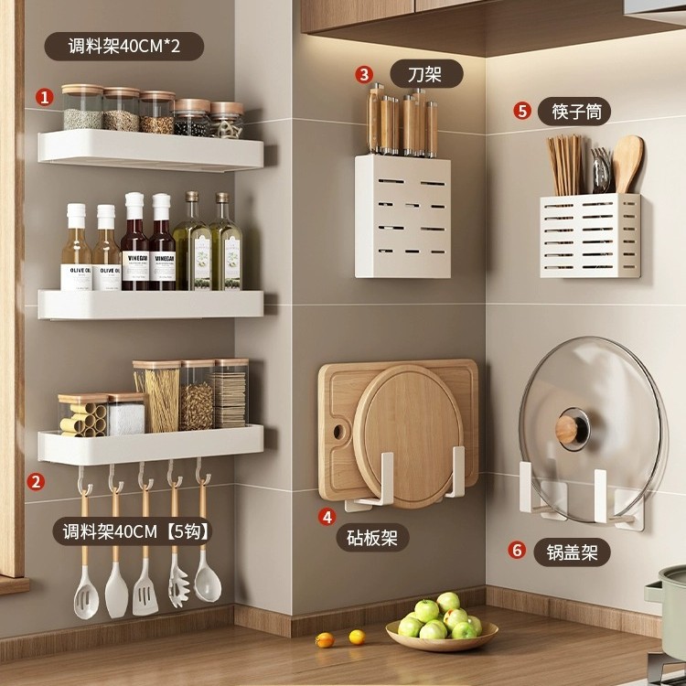화이트 주방 수납 랙 벽걸이 형 펀치없는 가정용 공간 알루미늄 조미료 코너 도마 보관 조미료 랙스토어 가기