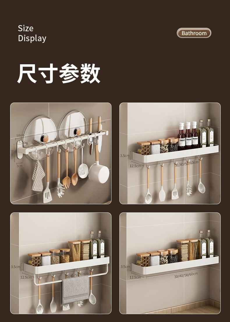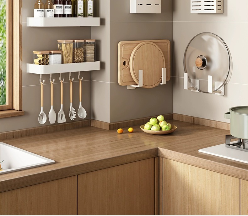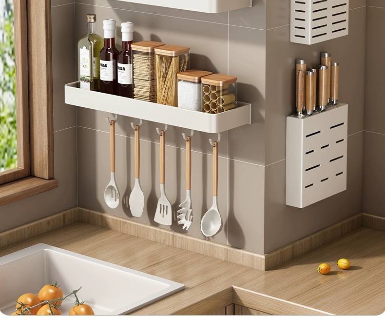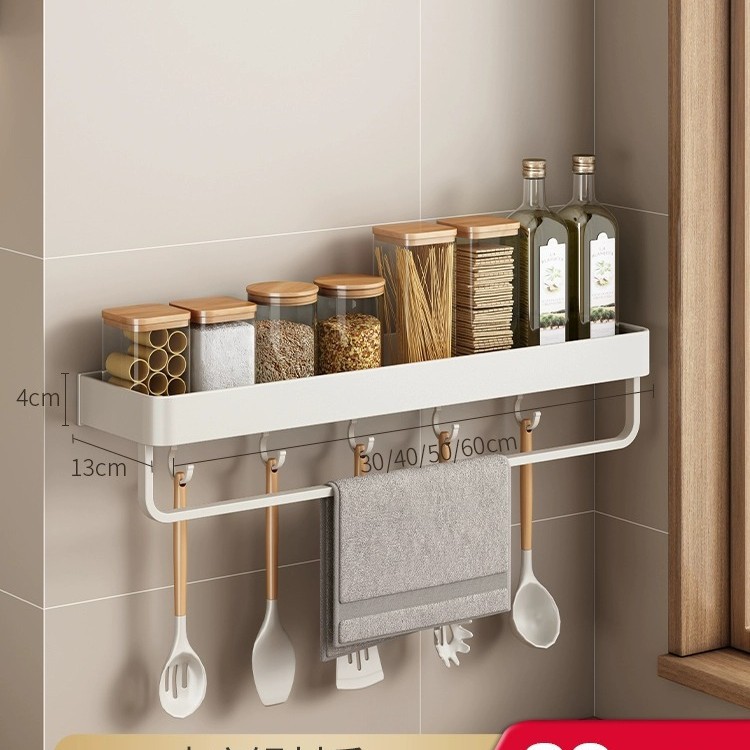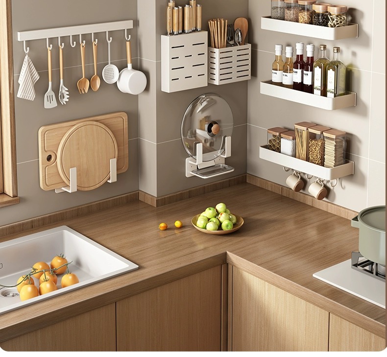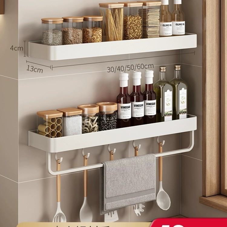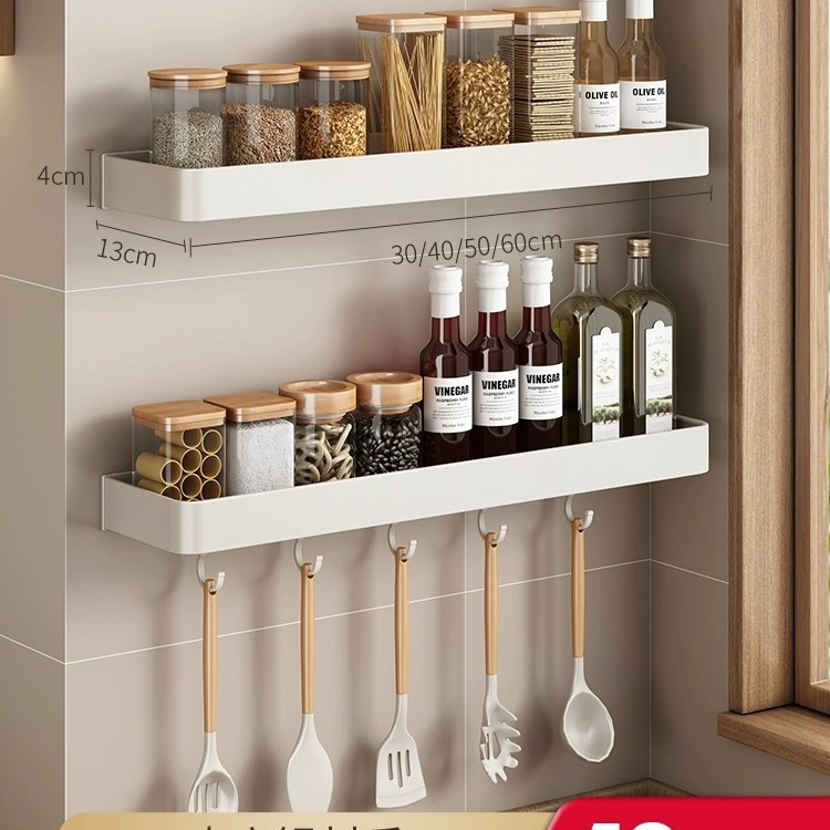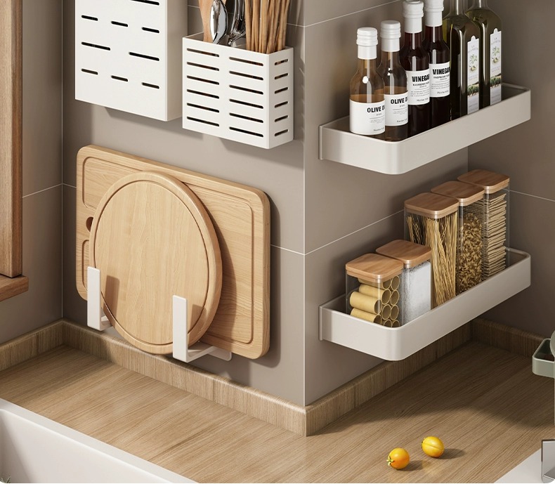 화이트 주방 수납 랙 벽걸이 형 펀치없는 가정용 공간 알루미늄 조미료 코너 도마 보관 조미료 랙