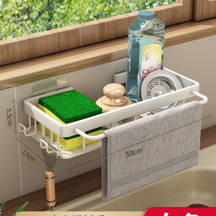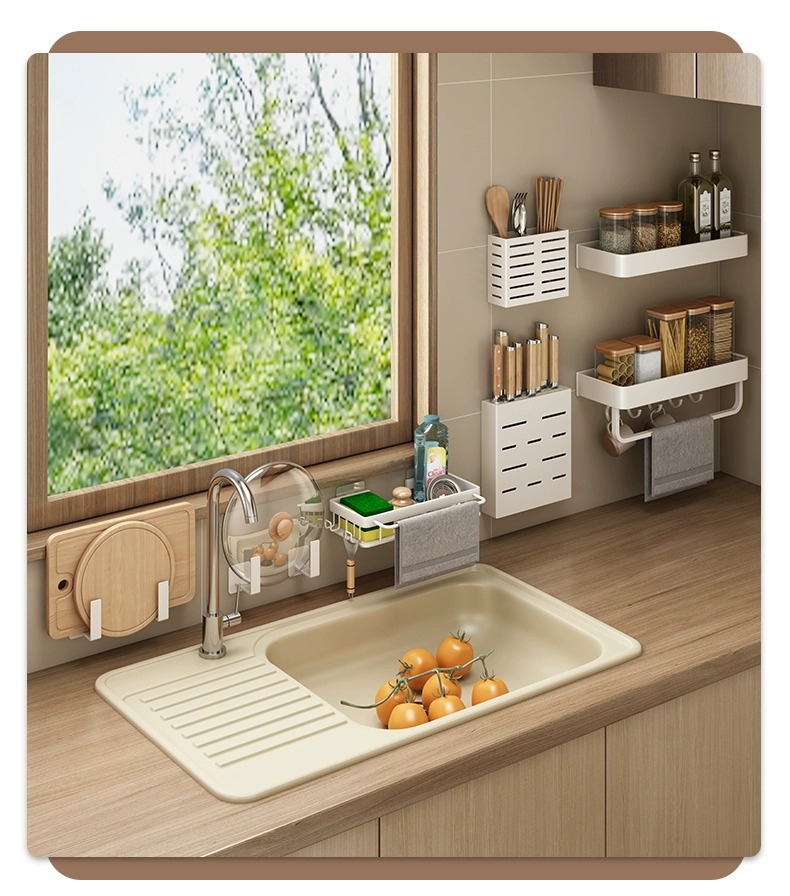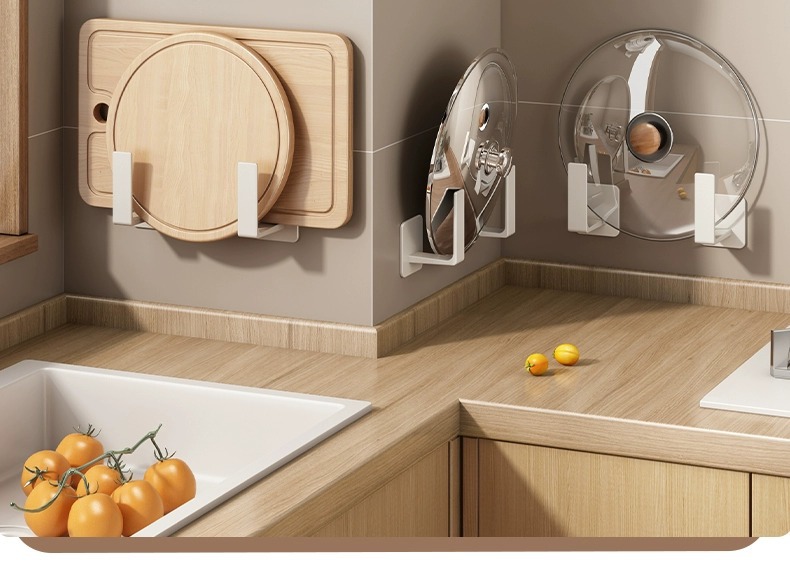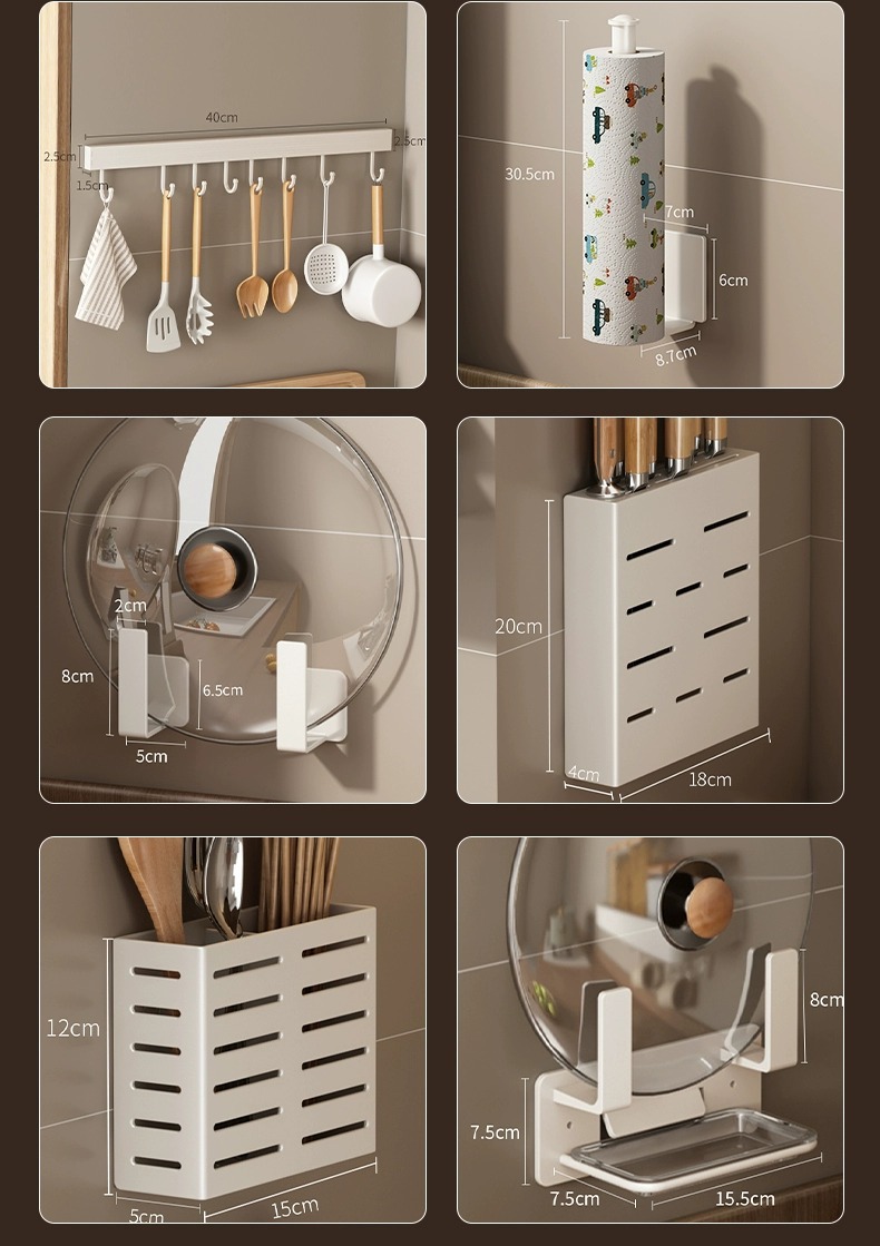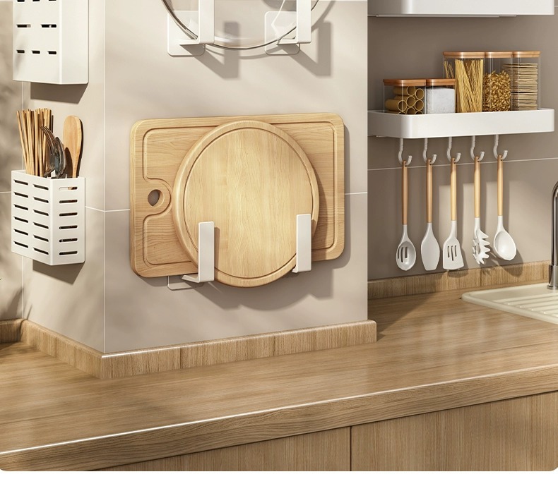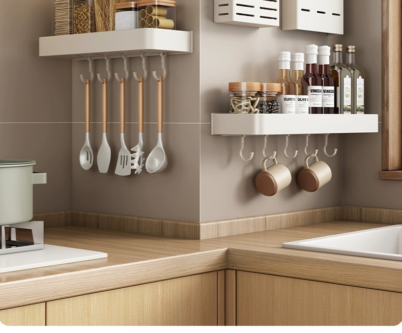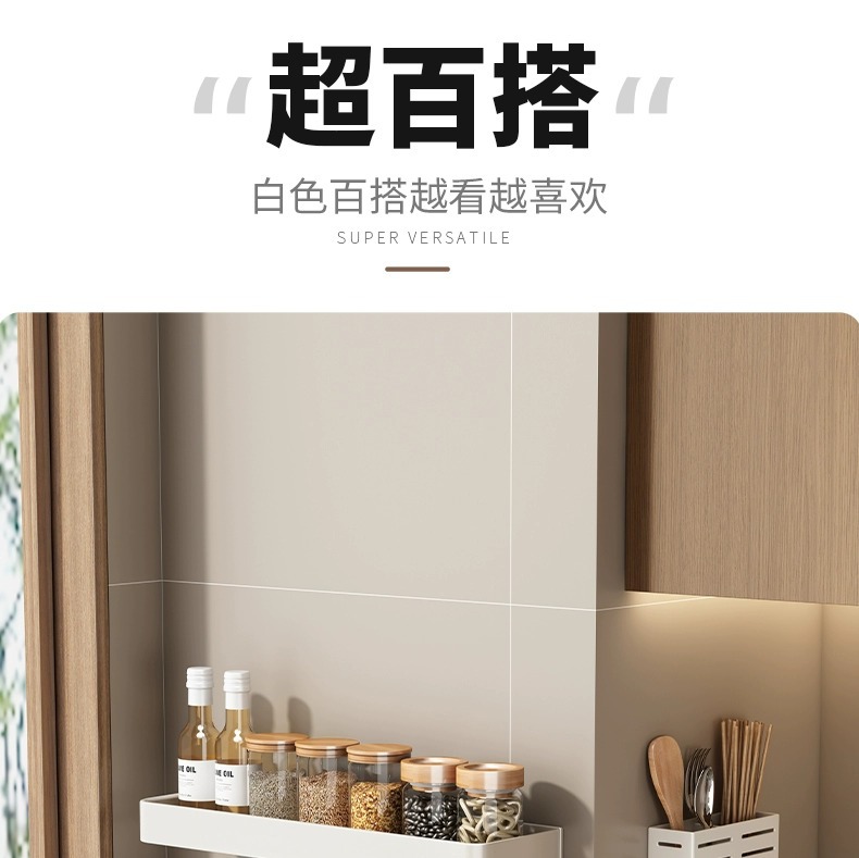 화이트 주방 수납 랙 벽걸이 형 펀치없는 가정용 공간 알루미늄 조미료 코너 도마 보관 조미료 랙