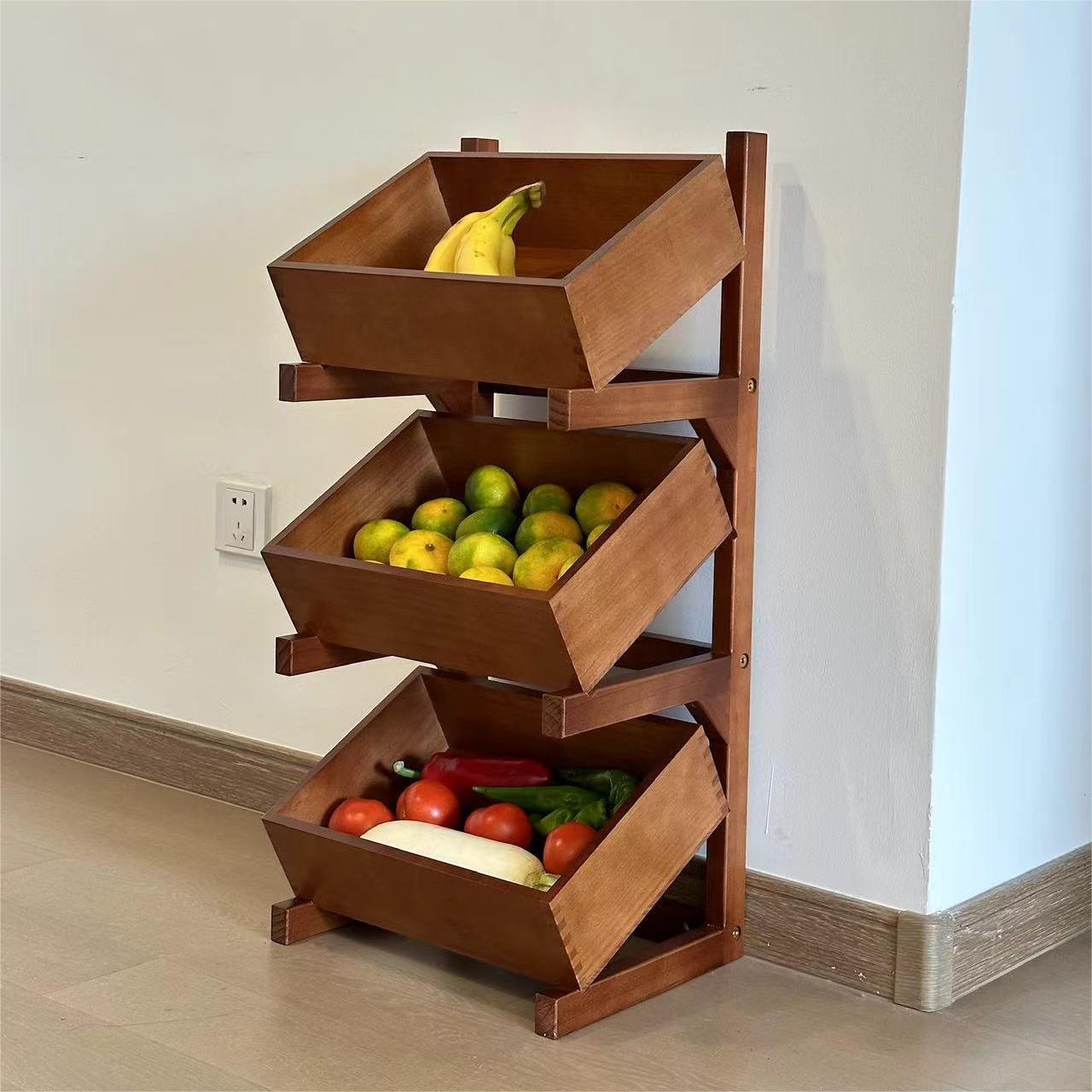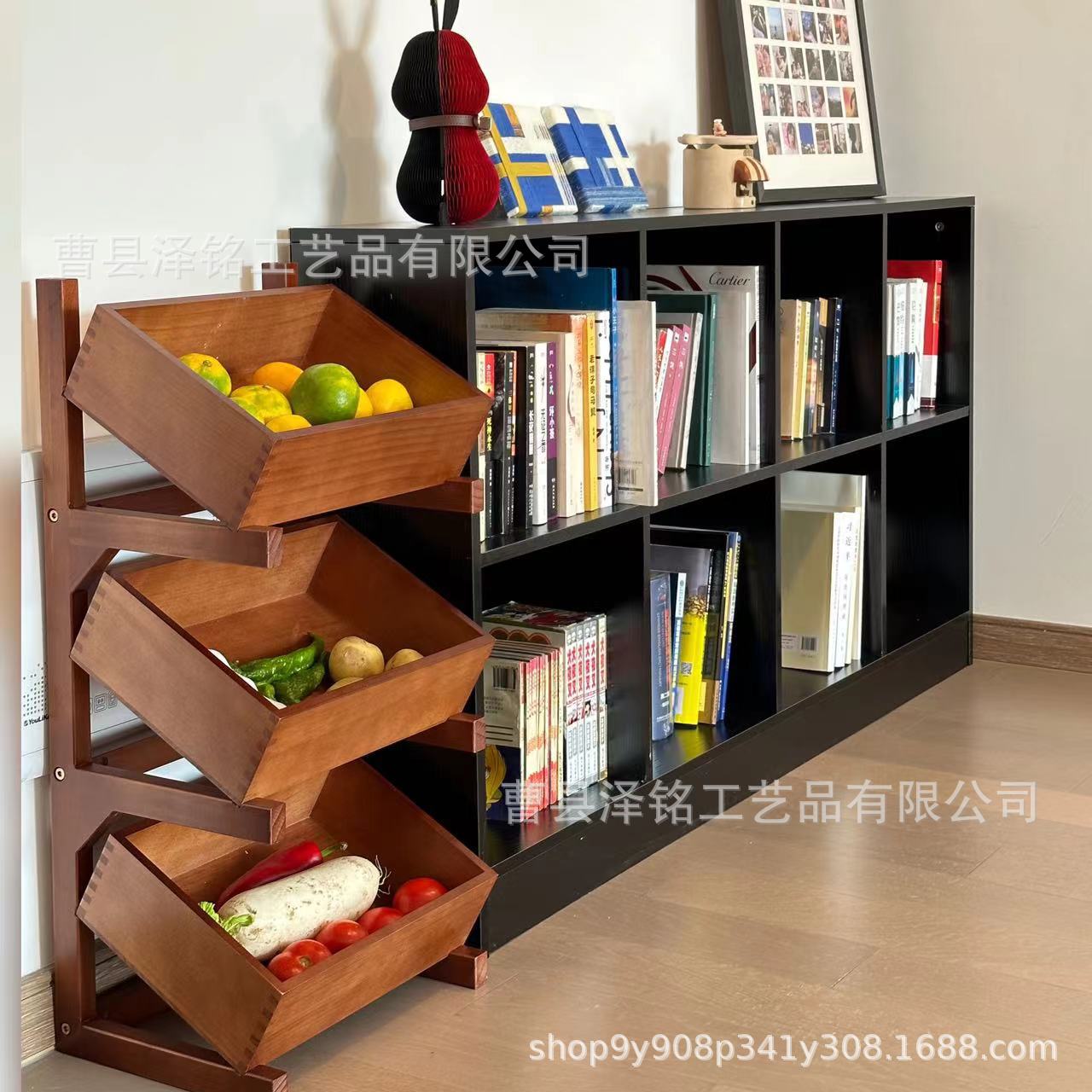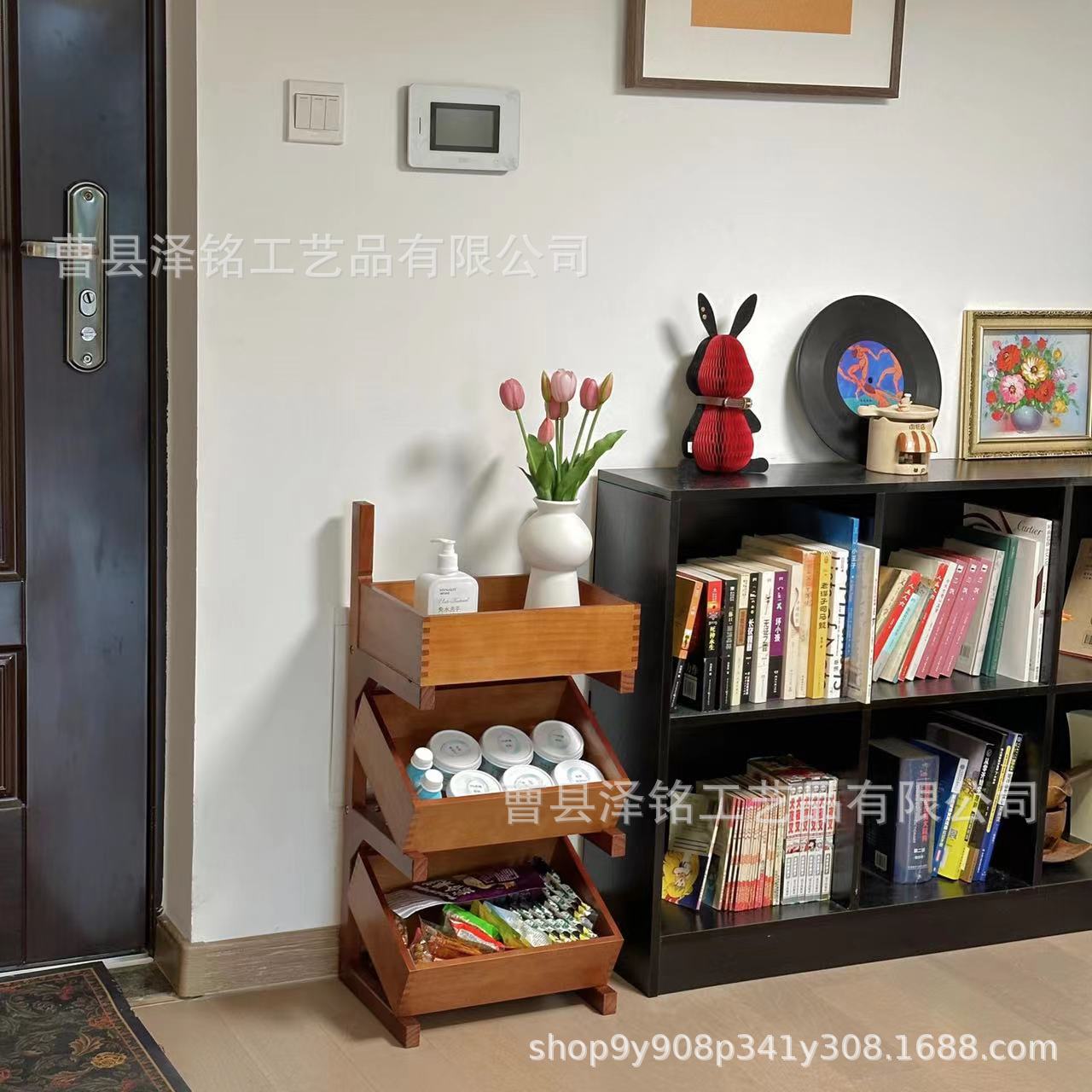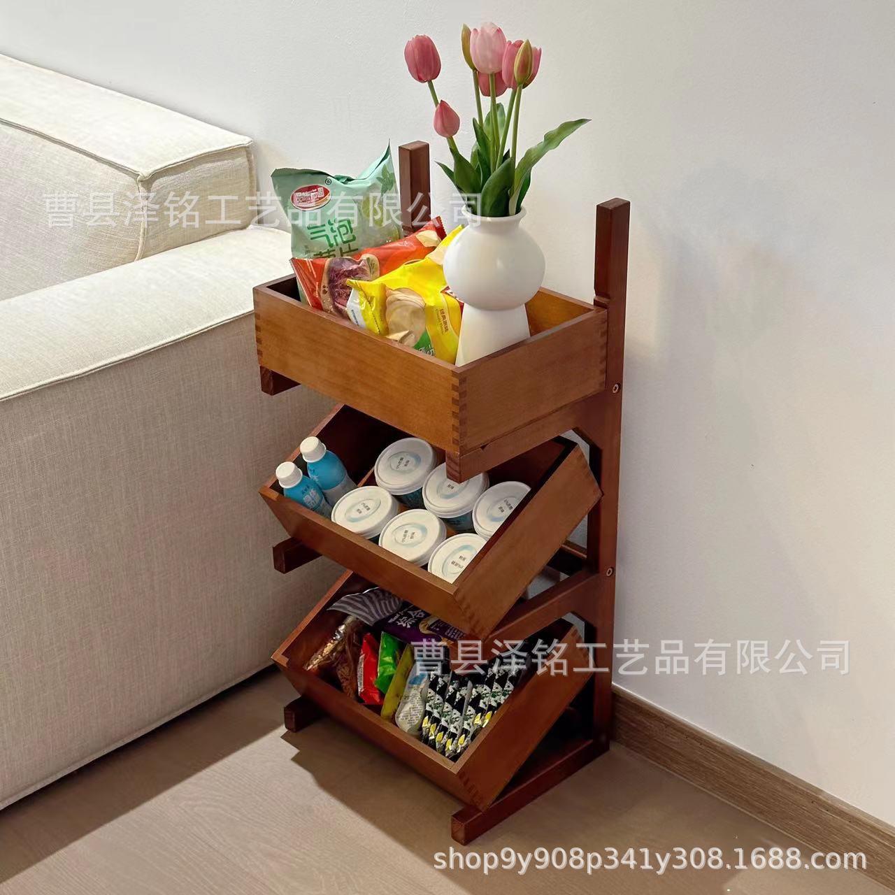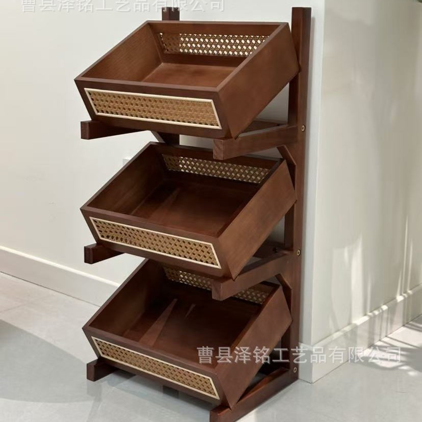 재고 중간 및 고대 스타일 바닥 서 스토리지 랙 나무 다층 잡화 보관 랙 거실 장식 과일 저장 바구니