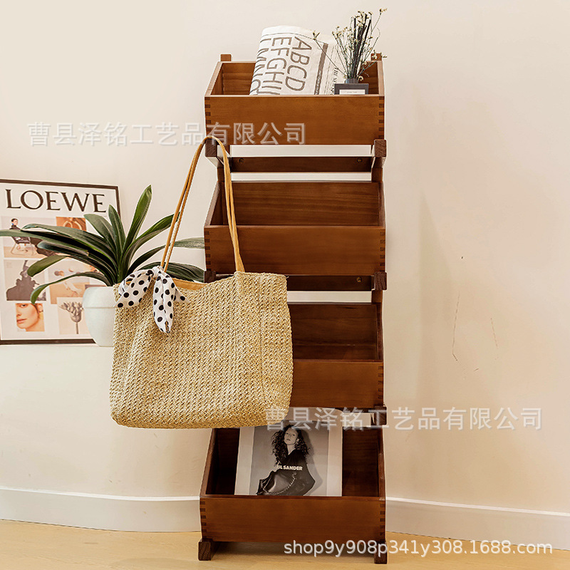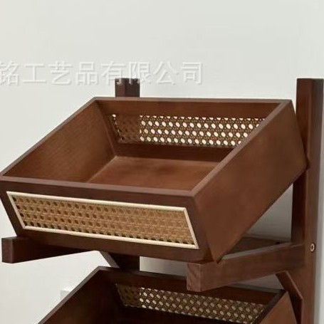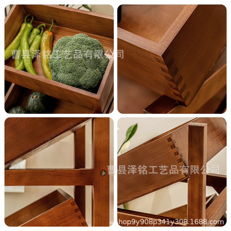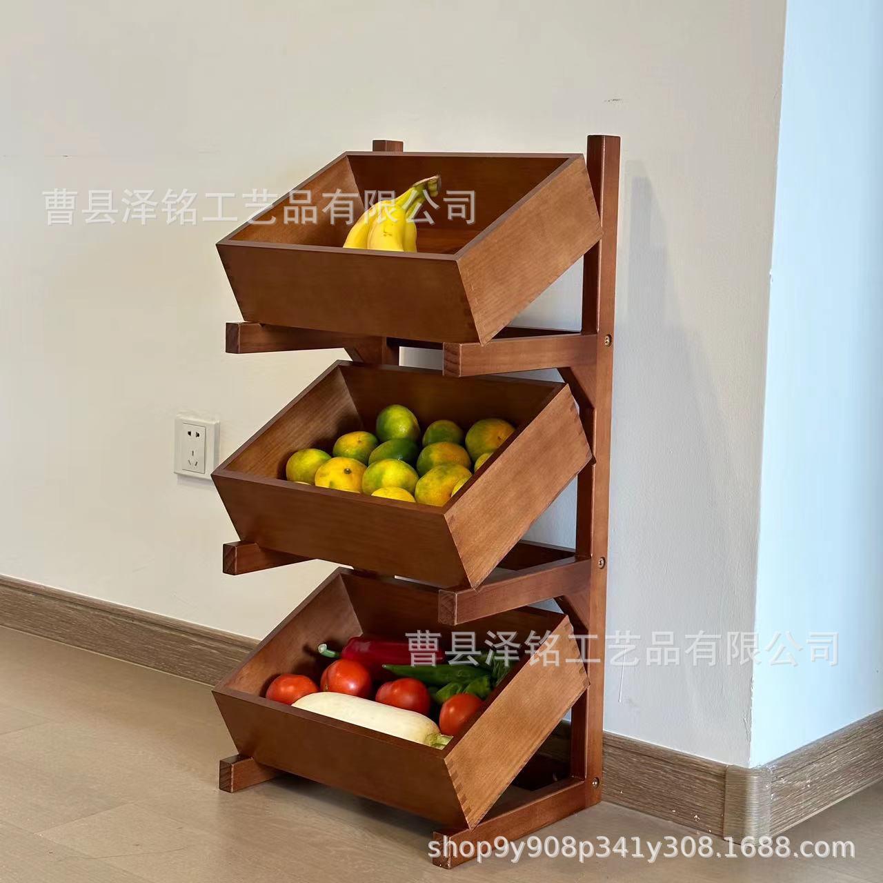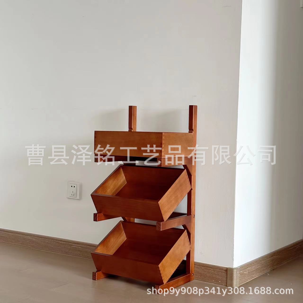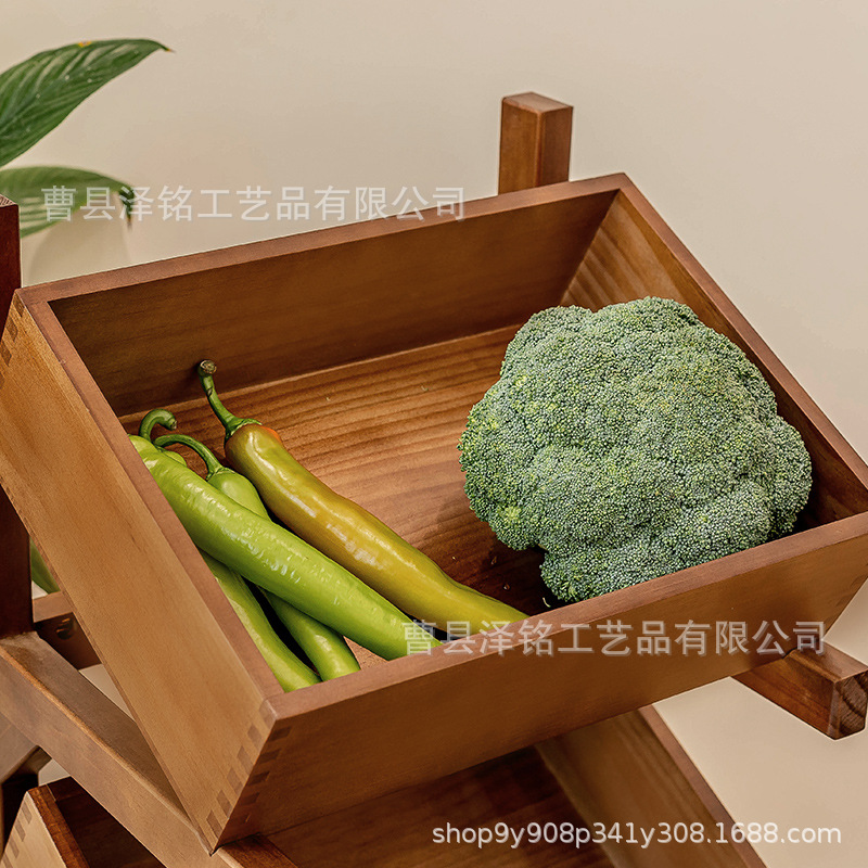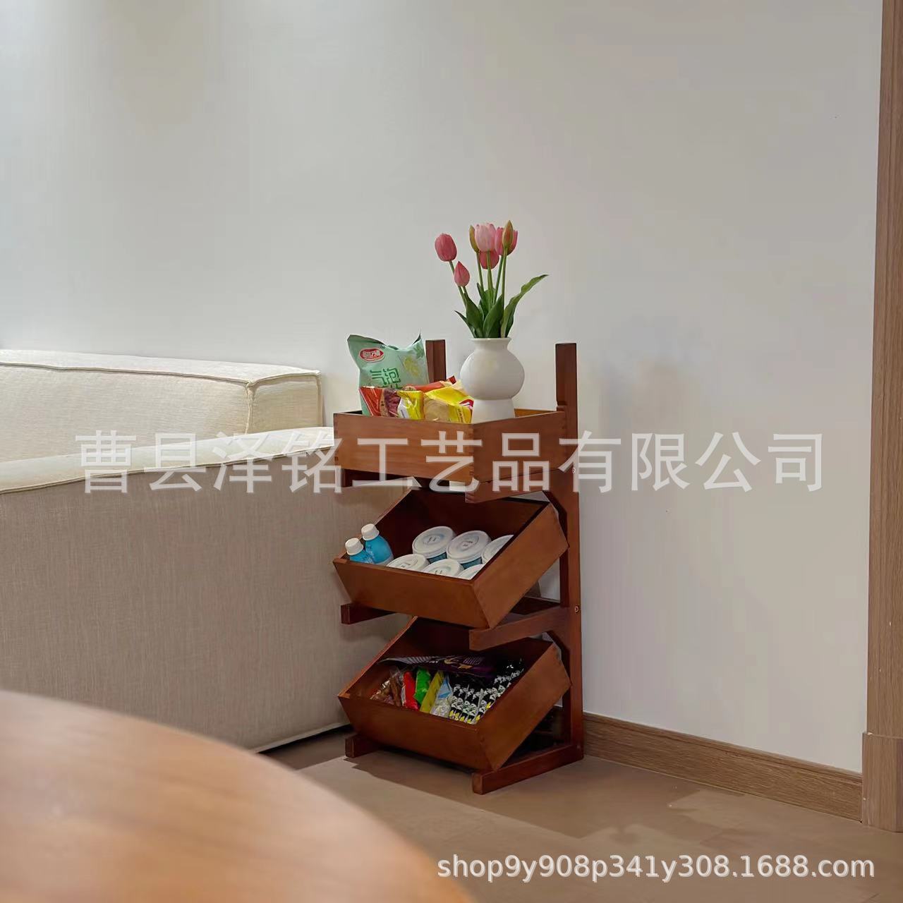 재고 중간 및 고대 스타일 바닥 서 스토리지 랙 나무 다층 잡화 보관 랙 거실 장식 과일 저장 바구니