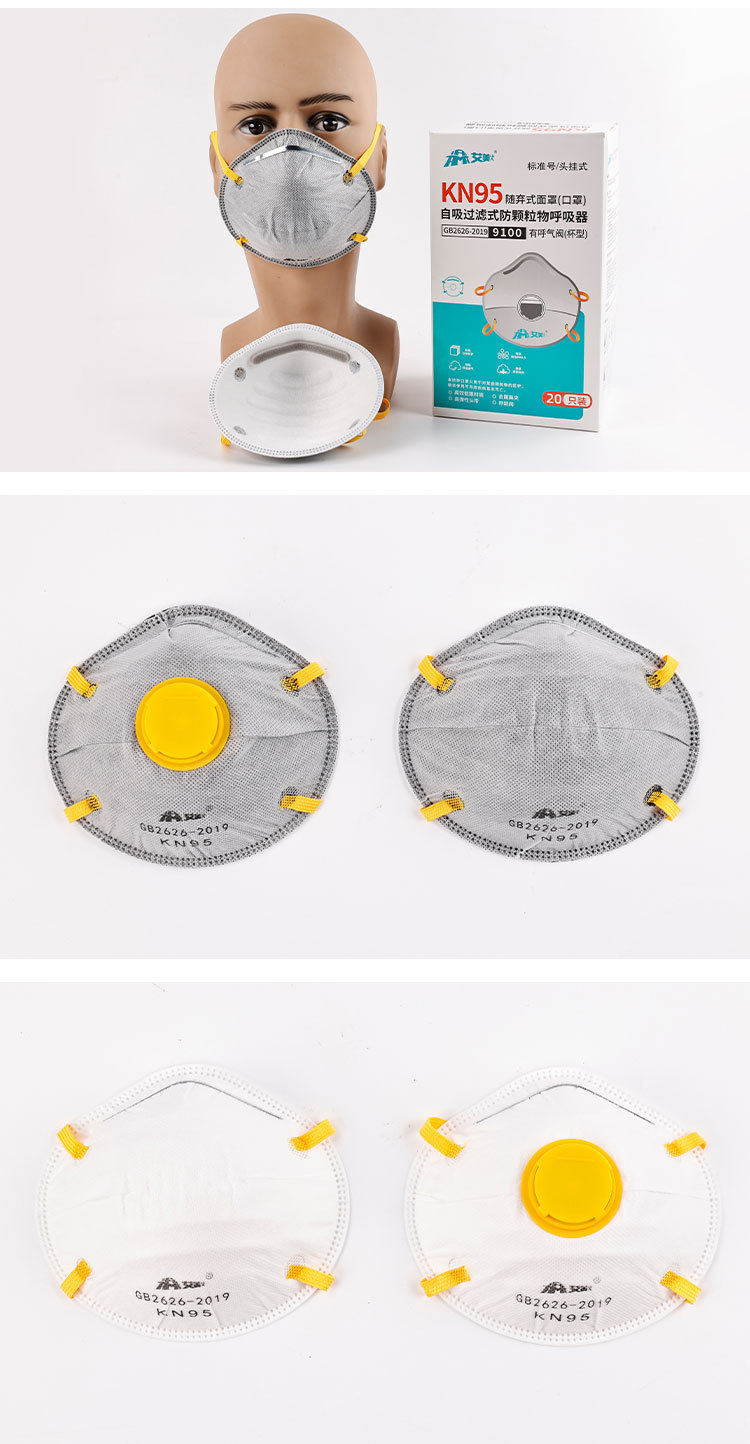 공장 직판 Kn95 컵형 방진 마스크 먼지 분쇄 활성탄 호흡 밸브 헤드 장착형 산업용 방진
