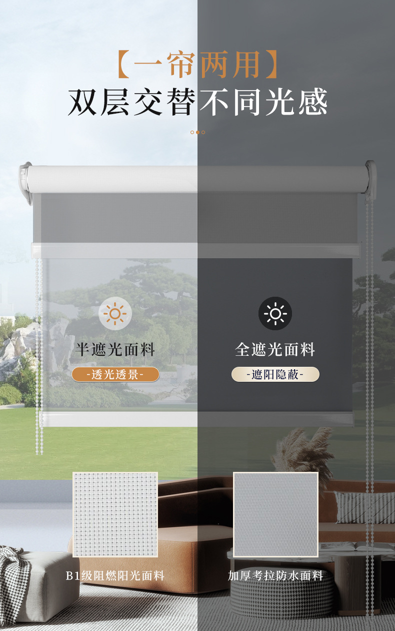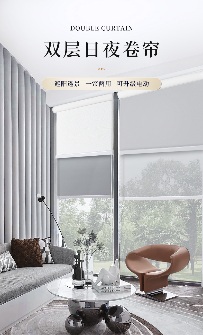 차양 주야간 커튼 롤러 셔터 호텔 사무실 침실 발코니 커튼 손으로 그린 전기 리프팅 2 층 롤러 셔터