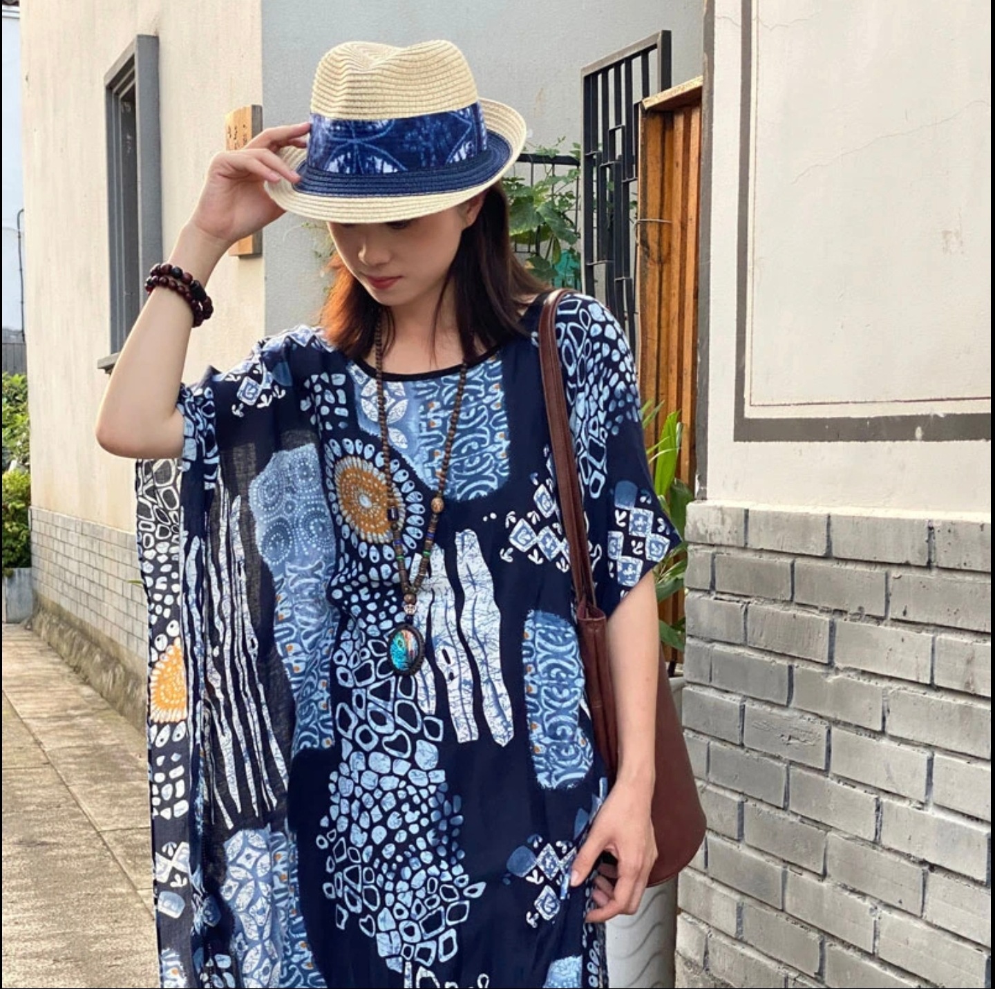 공 페이 빈티지 넥타이 염색 민족 스타일 목도리 윈난 리장 여행 풀오버 목도리 블루 술 따뜻한 어깨