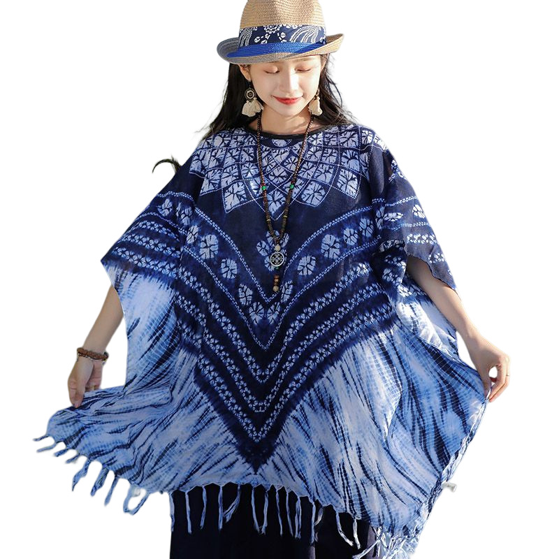 공 페이 빈티지 넥타이 염색 민족 스타일 목도리 윈난 리장 여행 풀오버 목도리 블루 술 따뜻한 어깨스토어 가기