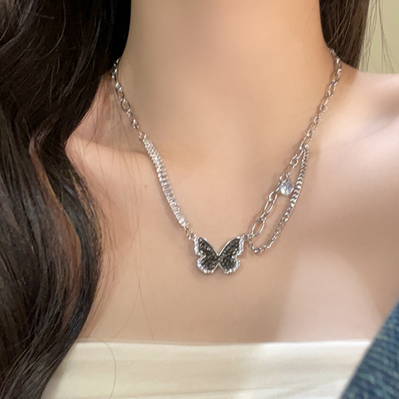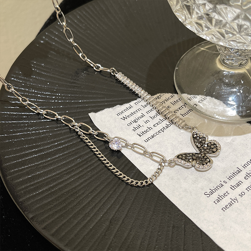 [티타늄강] 나비 스티칭 지르콘 목걸이 여성 고급에 차가운 스타일 뜨거운 소녀 액세서리 가벼운 고급 쇄골 체인