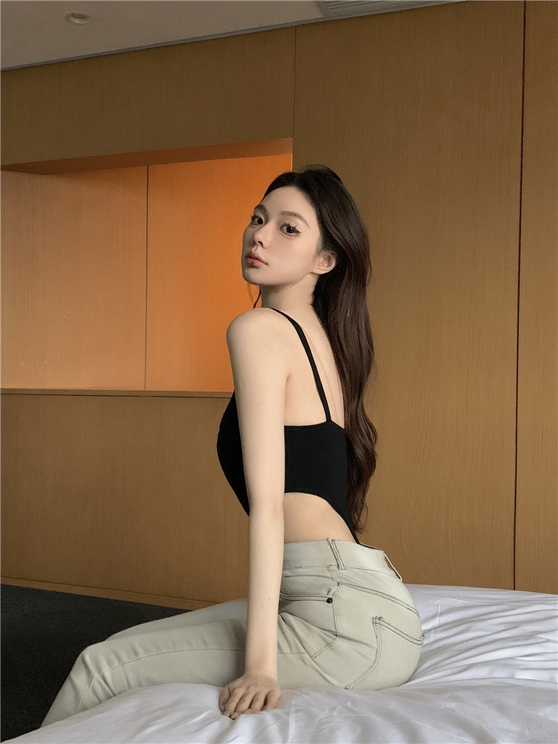 블랙 아메리칸 스타일 레트로 레터 로우 넥 재킷 슬링 탑 여성의 여름 섹시한 슬림-핏 트렌디 탑