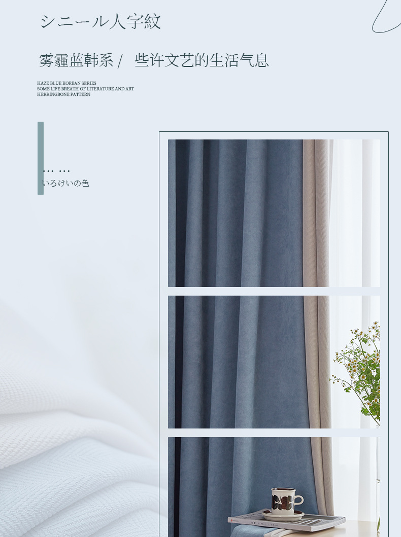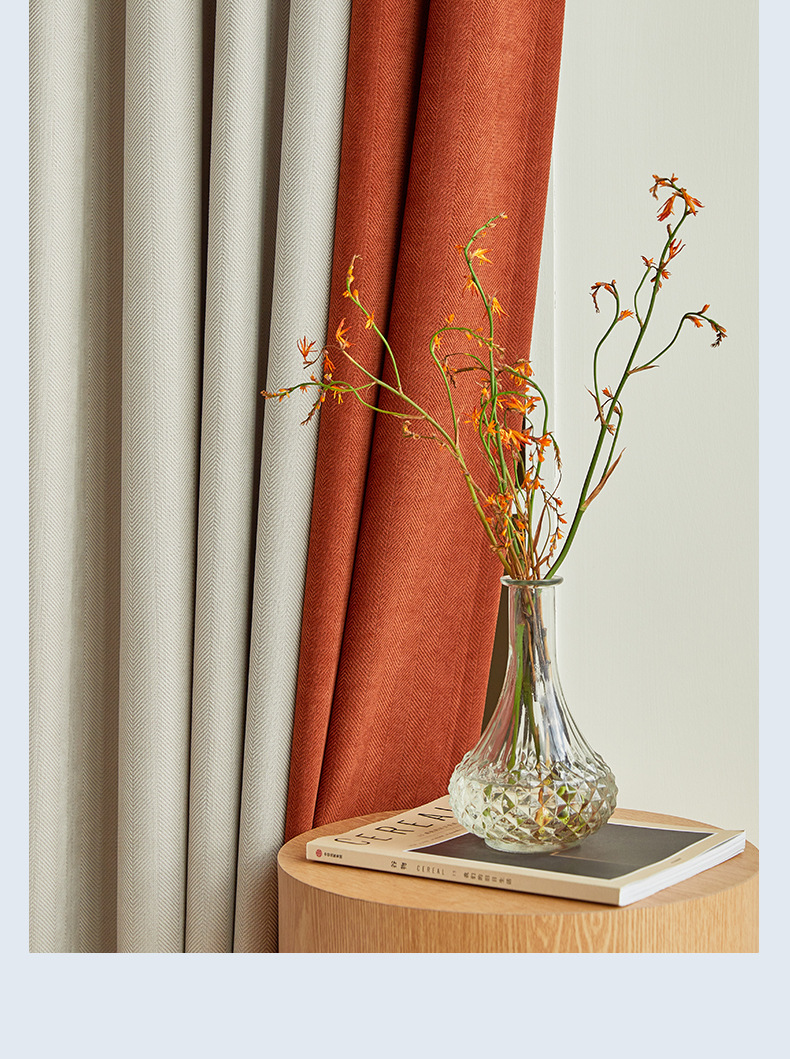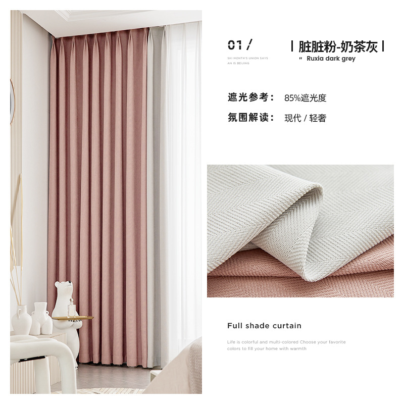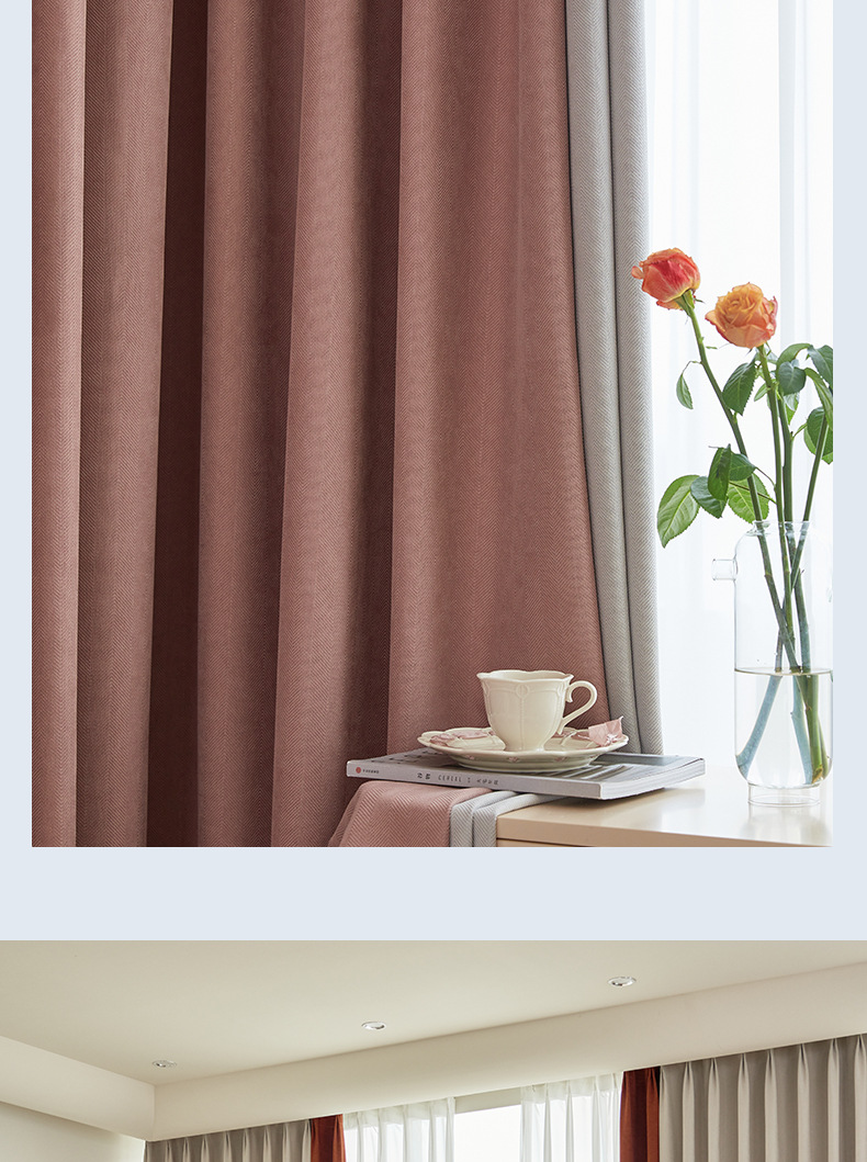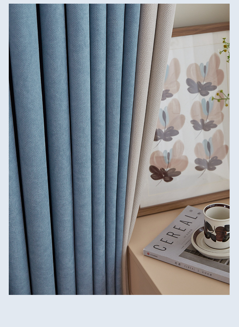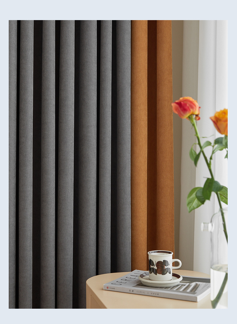 헤링본 셔닐 음영 커튼 2023 새로운 침실 거실 발코니 단색 매칭 가정 장식 커튼 도매