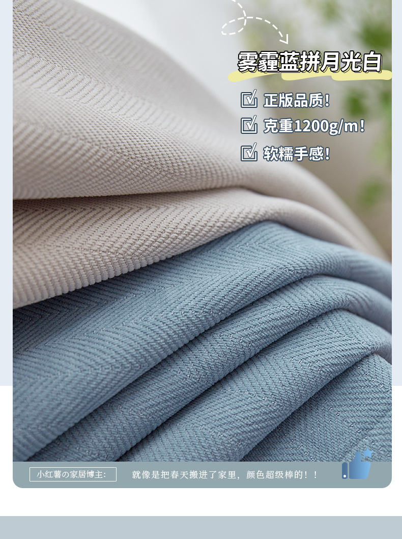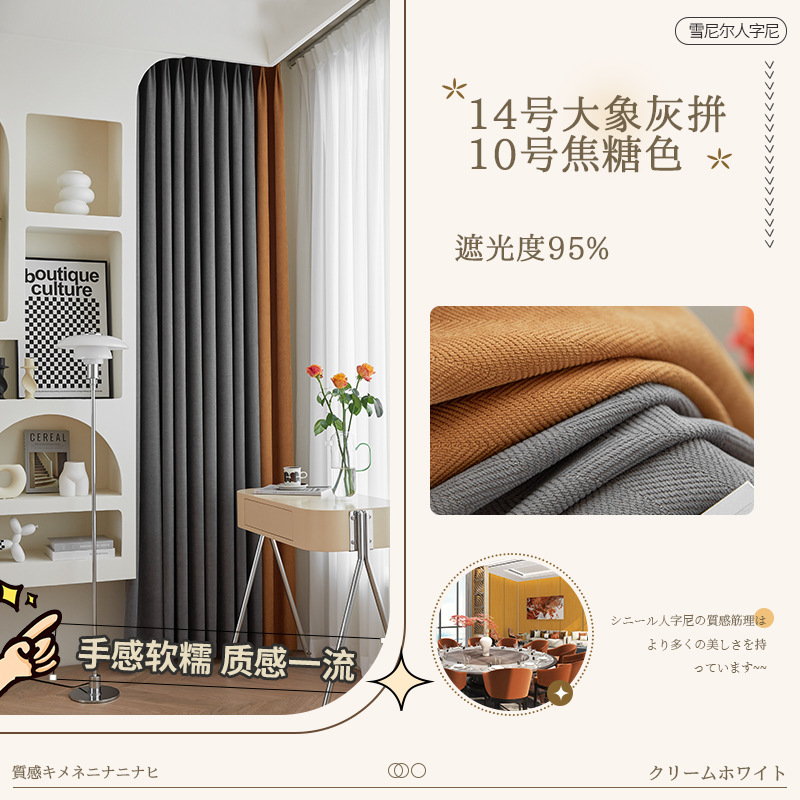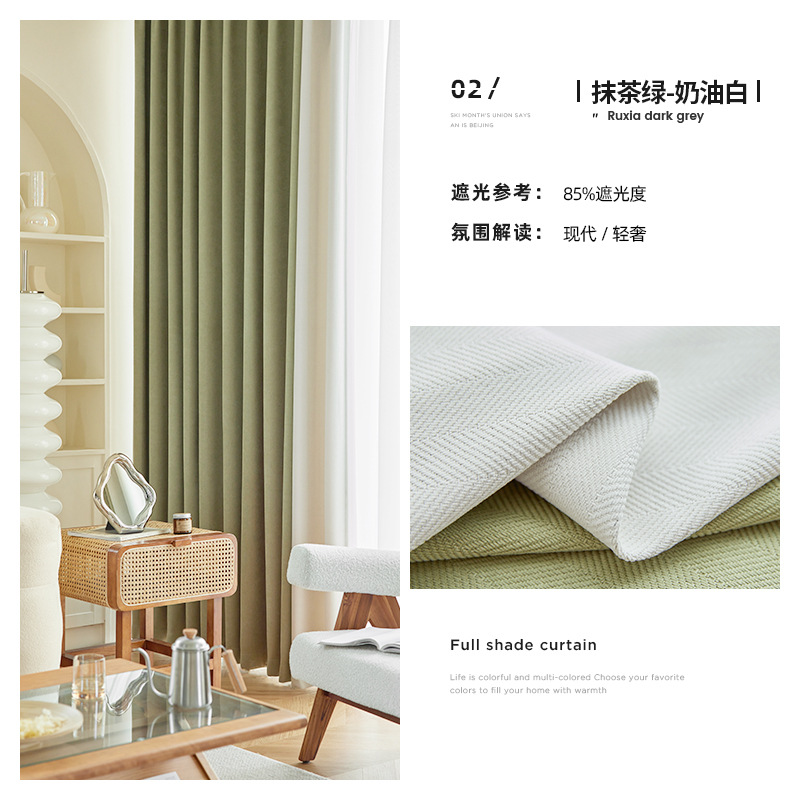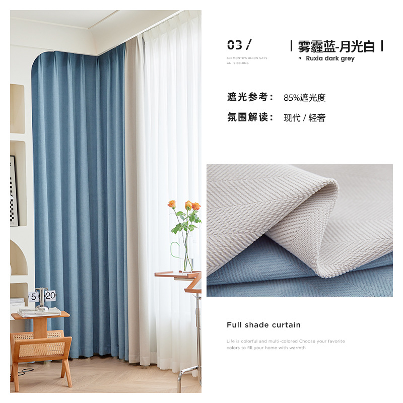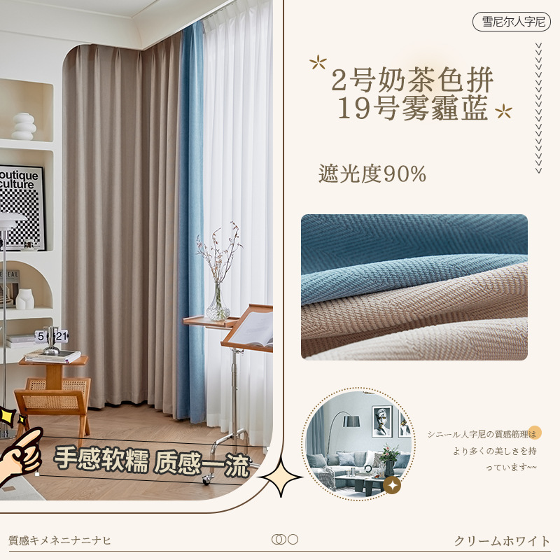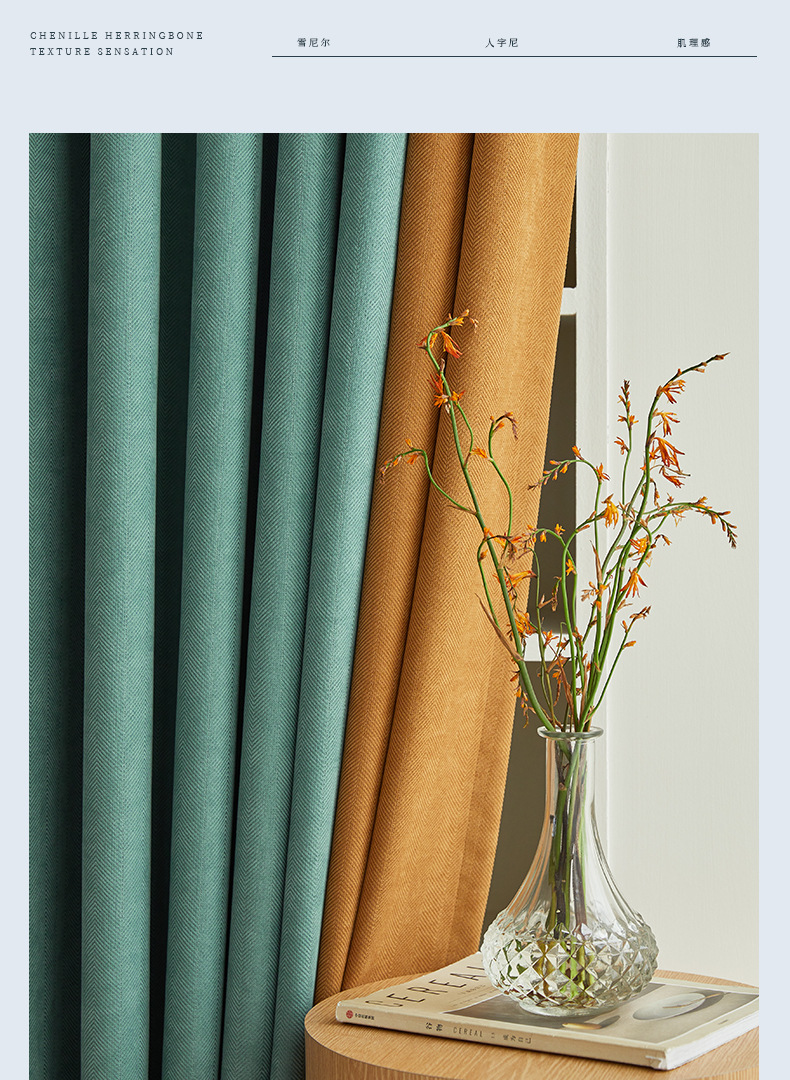 헤링본 셔닐 음영 커튼 2023 새로운 침실 거실 발코니 단색 매칭 가정 장식 커튼 도매스토어 가기