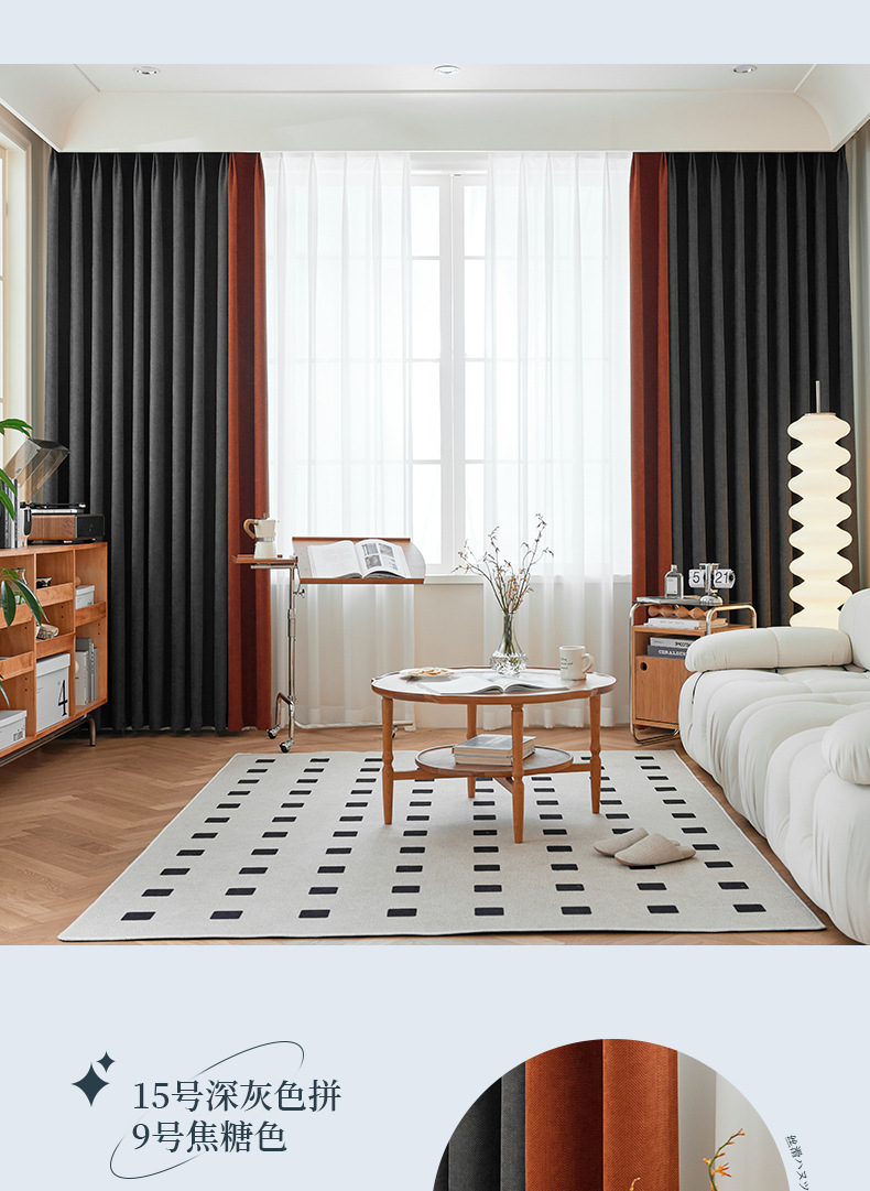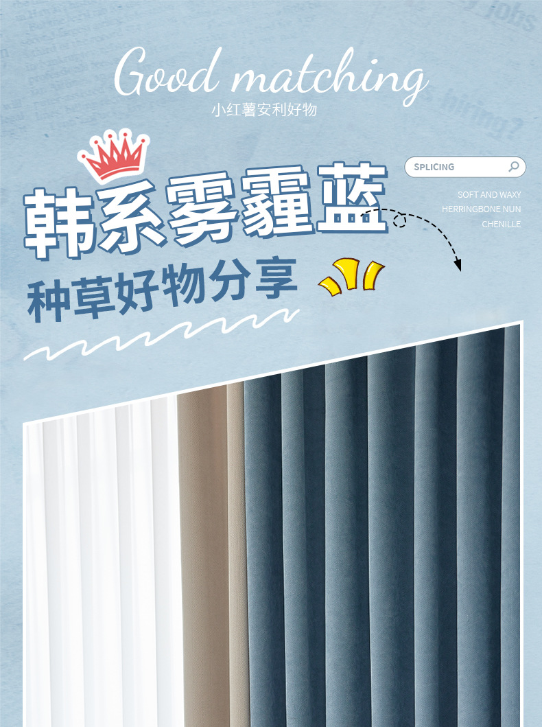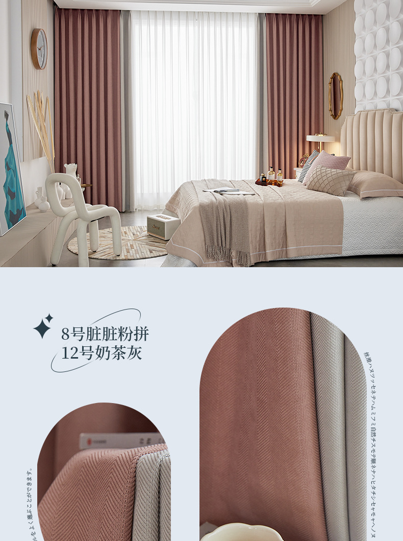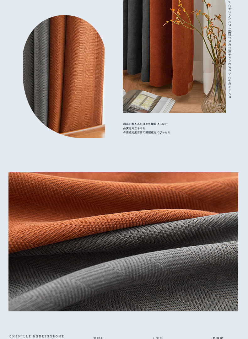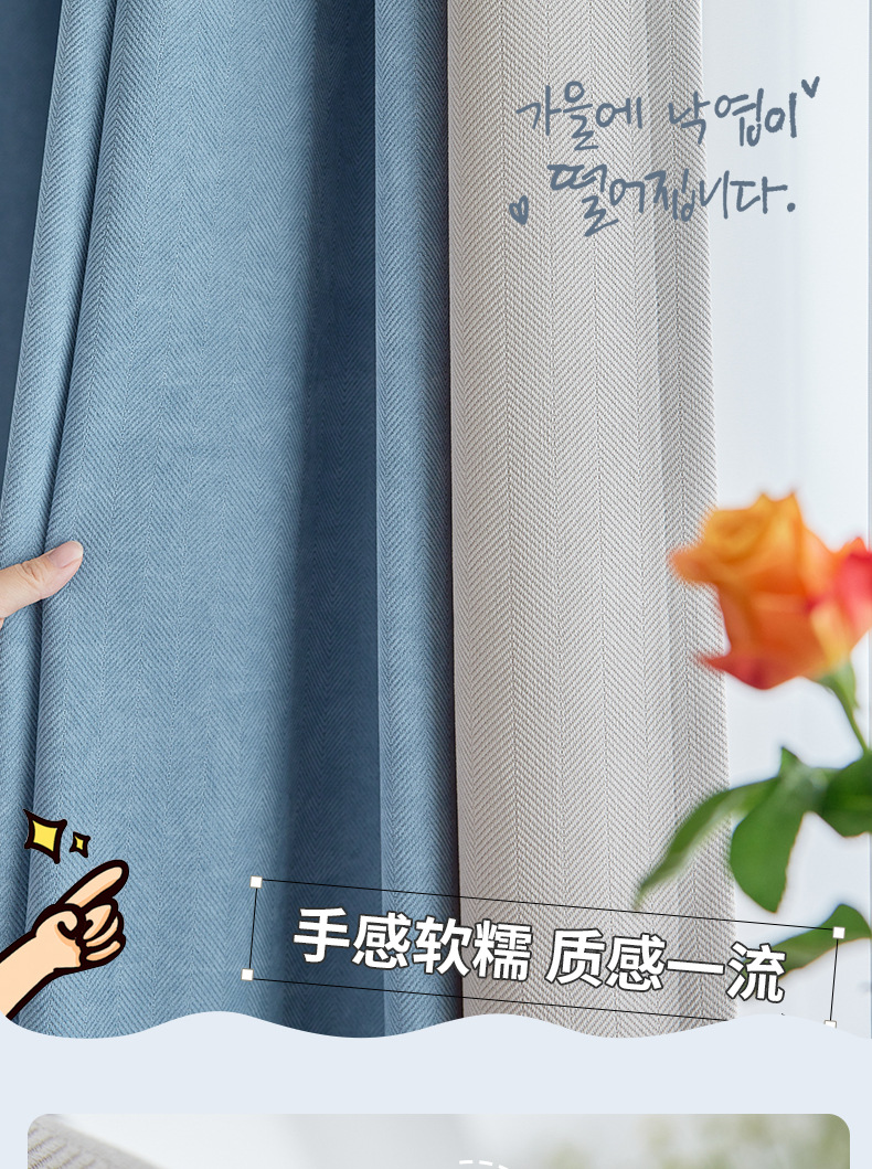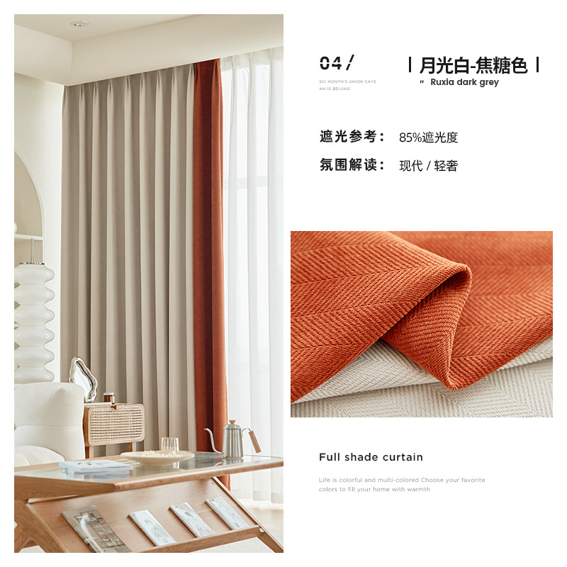 헤링본 셔닐 음영 커튼 2023 새로운 침실 거실 발코니 단색 매칭 가정 장식 커튼 도매스토어 가기