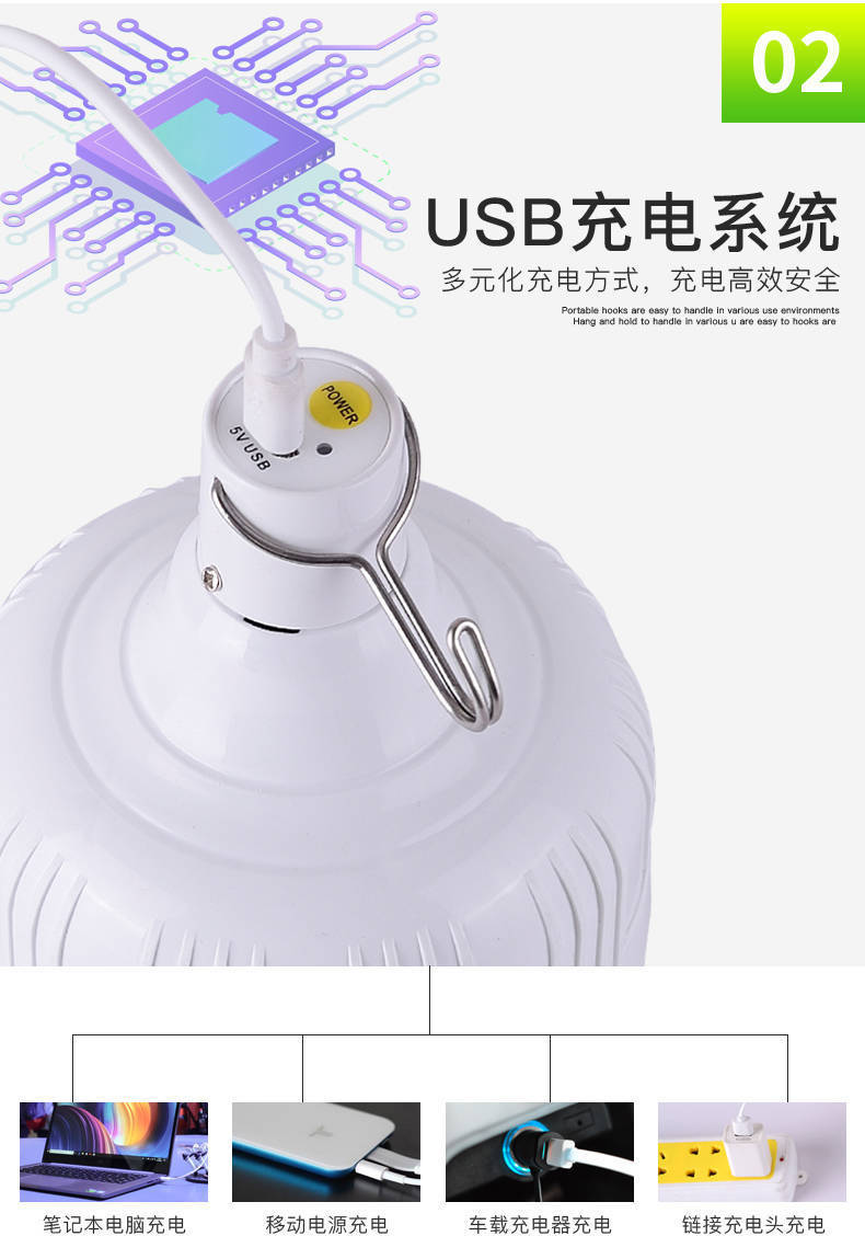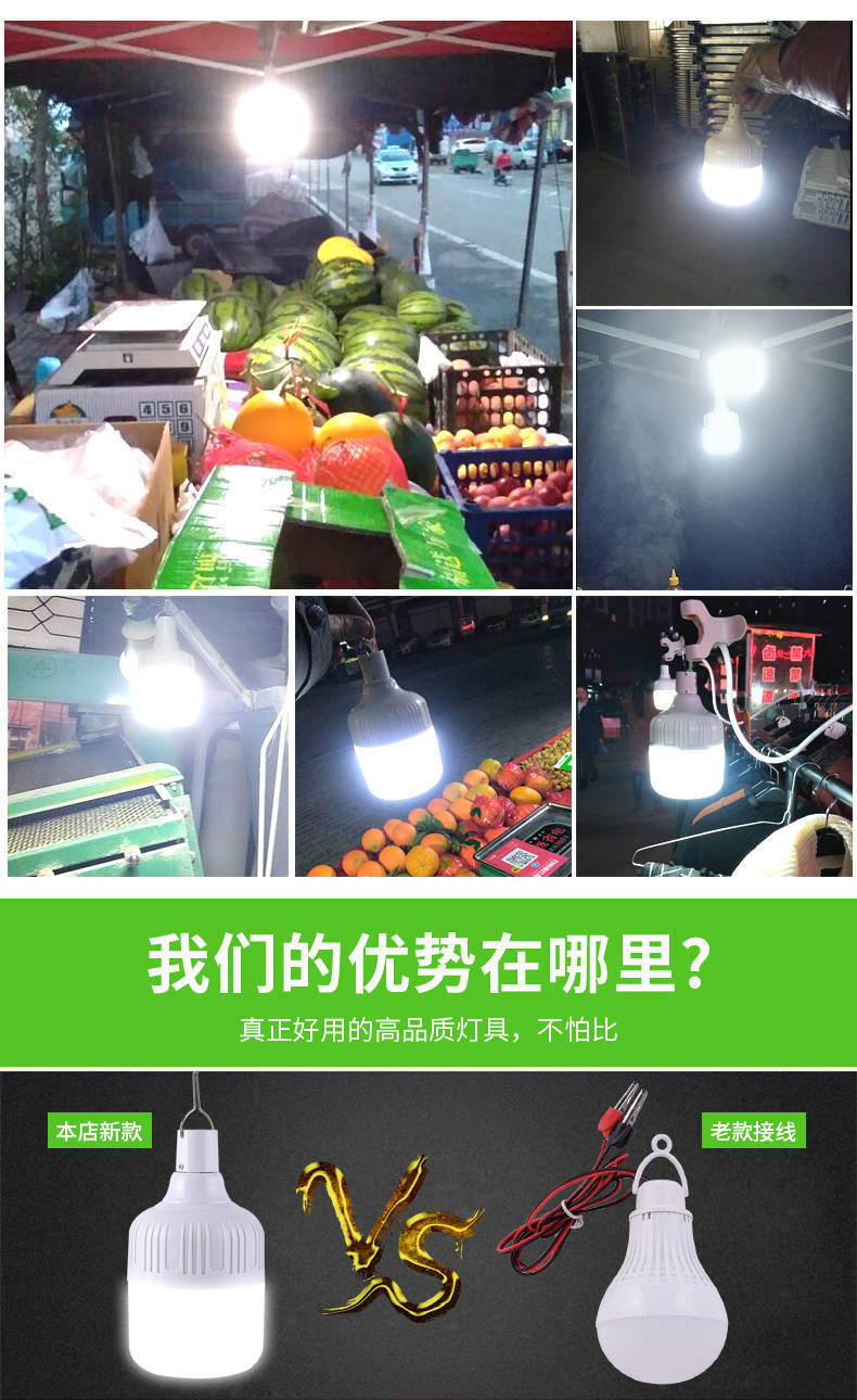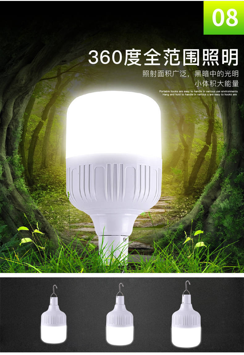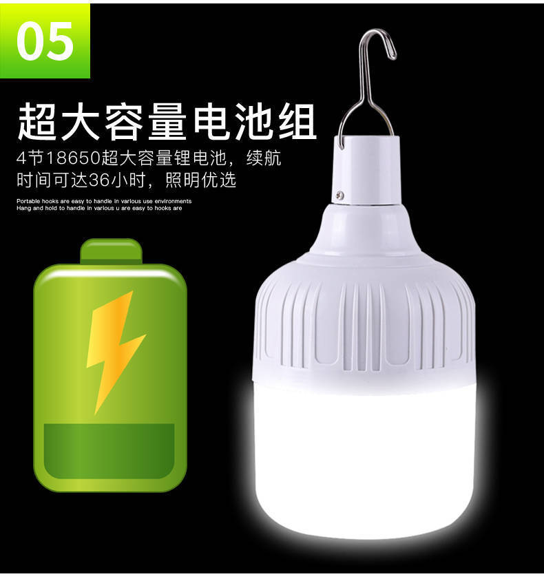 [지원 세대] 충전식 LED 전구 야시장 슈퍼 브라이트 정전 응급 가정용 모바일 옥외 무선등스토어 가기