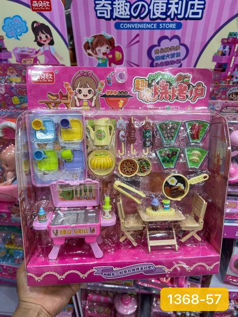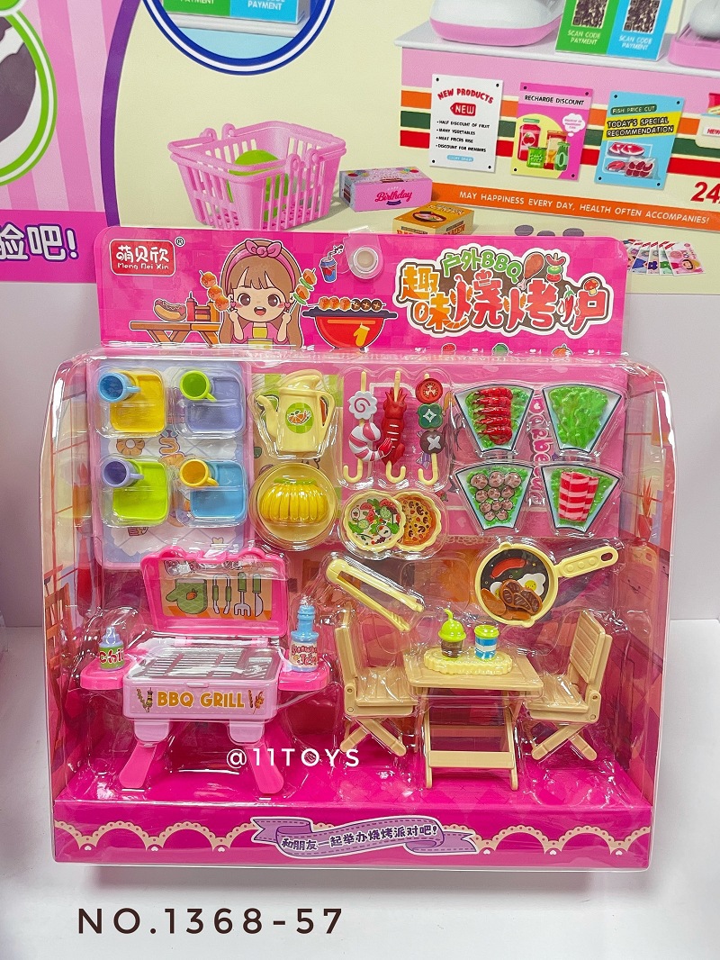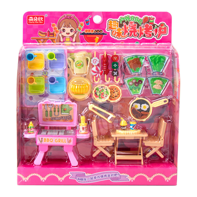 놀이 하우스 바베큐 1368-57 부모-자식 인터랙티브 바베큐 오븐 푸드 플레이트 컵 식탁과 의자 식기 주방 놀이스토어 가기