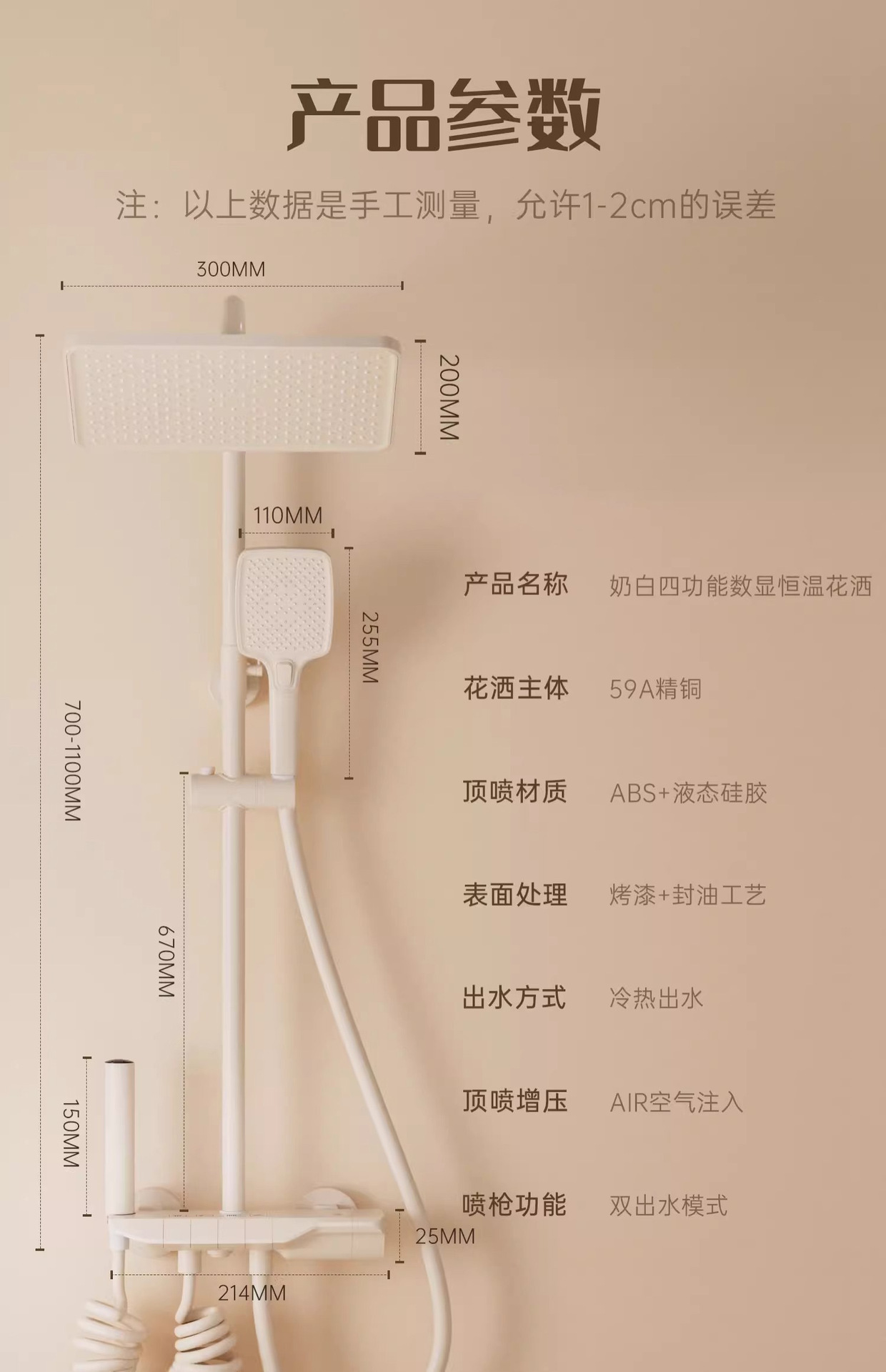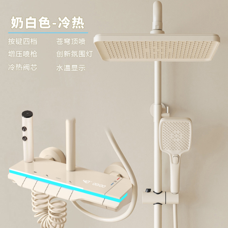 크림 바람 샤워 가정용 샤워 세트 화이트 샤워 샤워 목욕 일정한 온도 목욕 모든 구리 가압 샤워 헤드스토어 가기