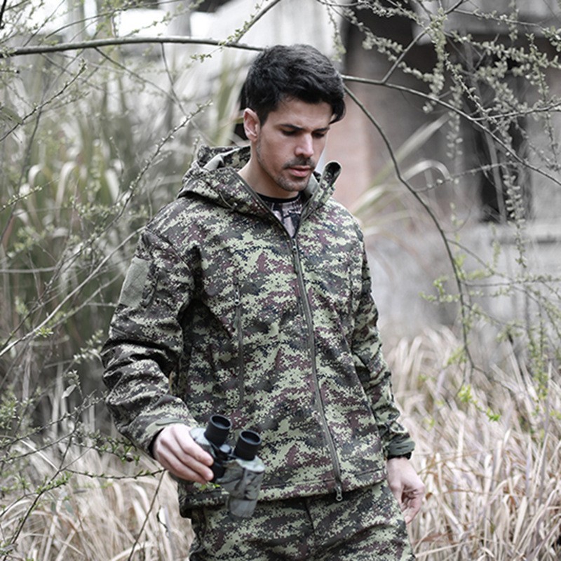 ESDY 모조 상어 스킨 야외 재킷 위장 스포츠 사이클링 등산 스키 세트 소프트 쉘 재킷 A001