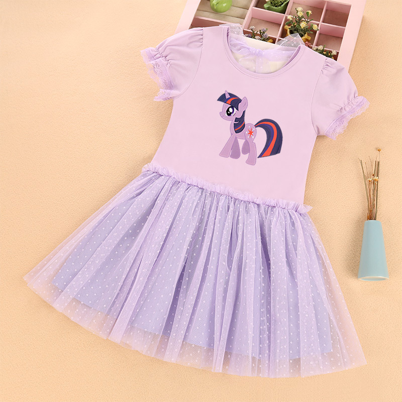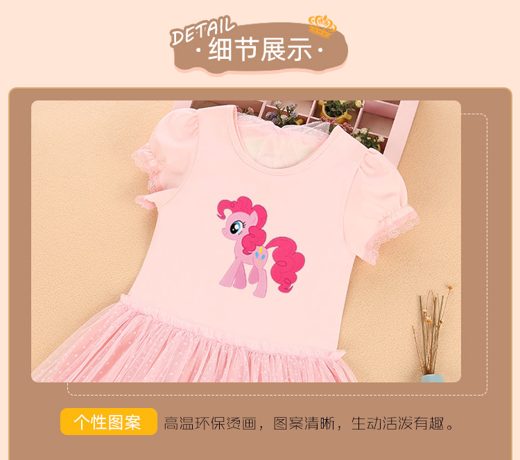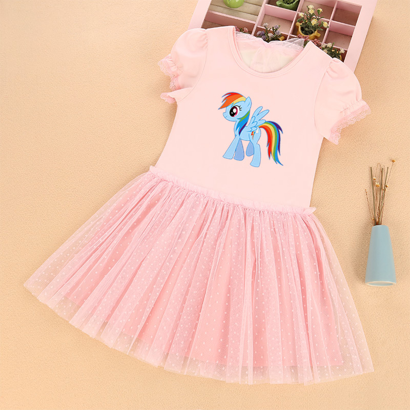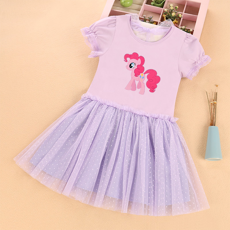 여아 여름 원피스 얇은 아기 여아 퍼프 슬리브 공주 원피스 어린이 짧은 소매 베일 원피스 만화 조랑말 원피스스토어 가기