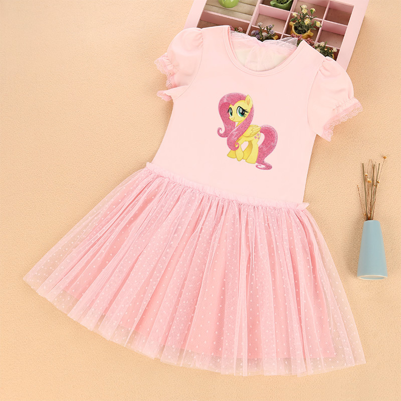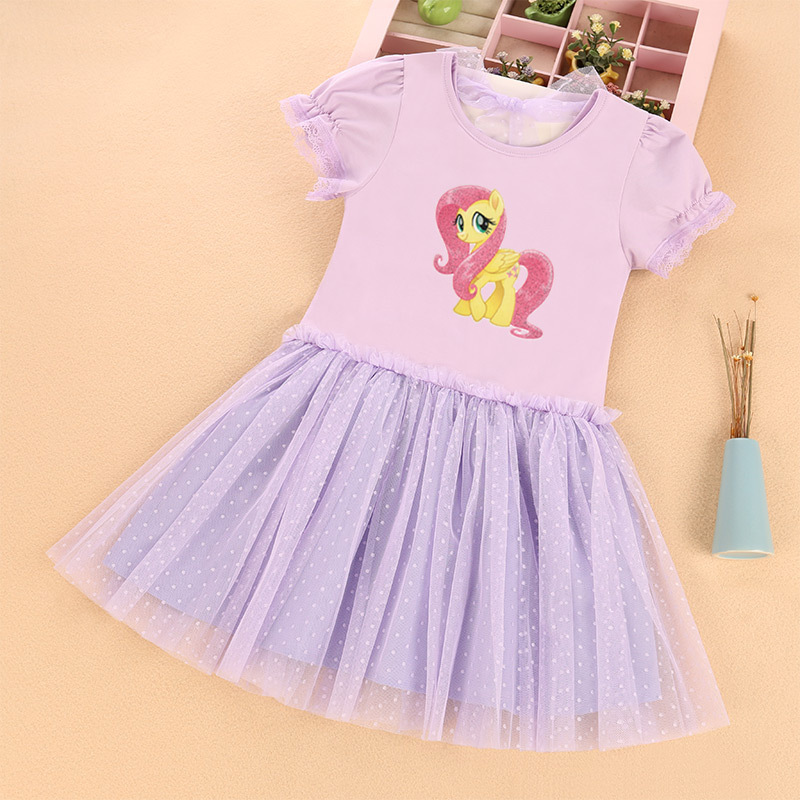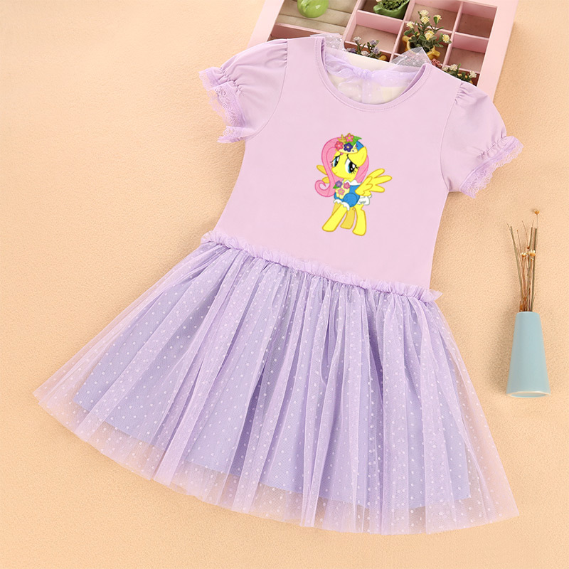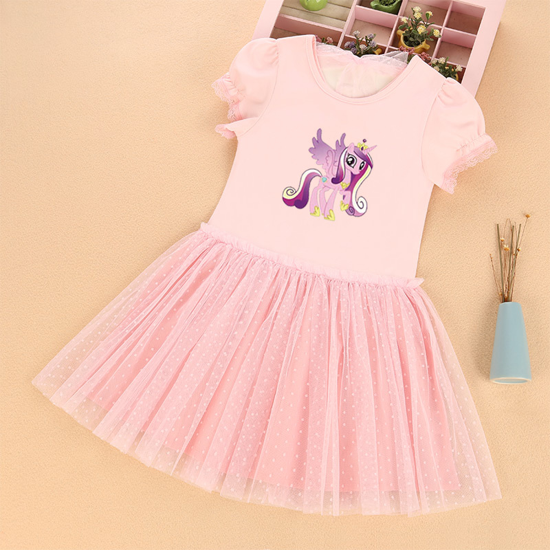 여아 여름 원피스 얇은 아기 여아 퍼프 슬리브 공주 원피스 어린이 짧은 소매 베일 원피스 만화 조랑말 원피스