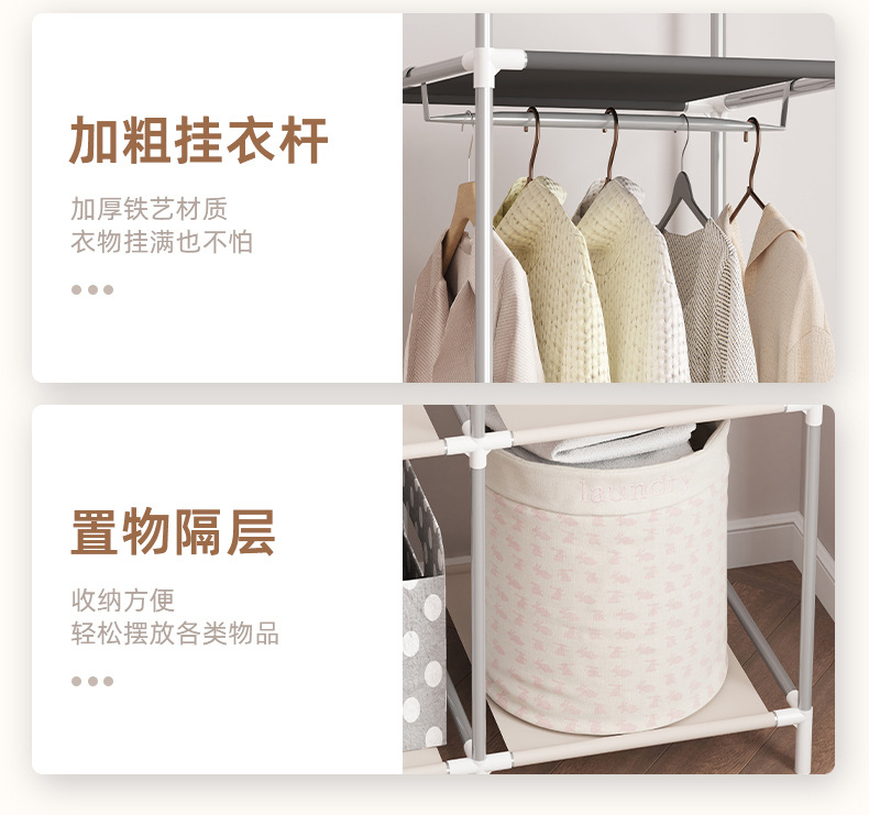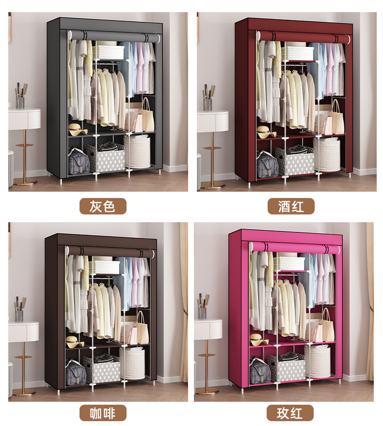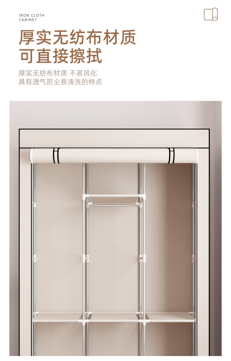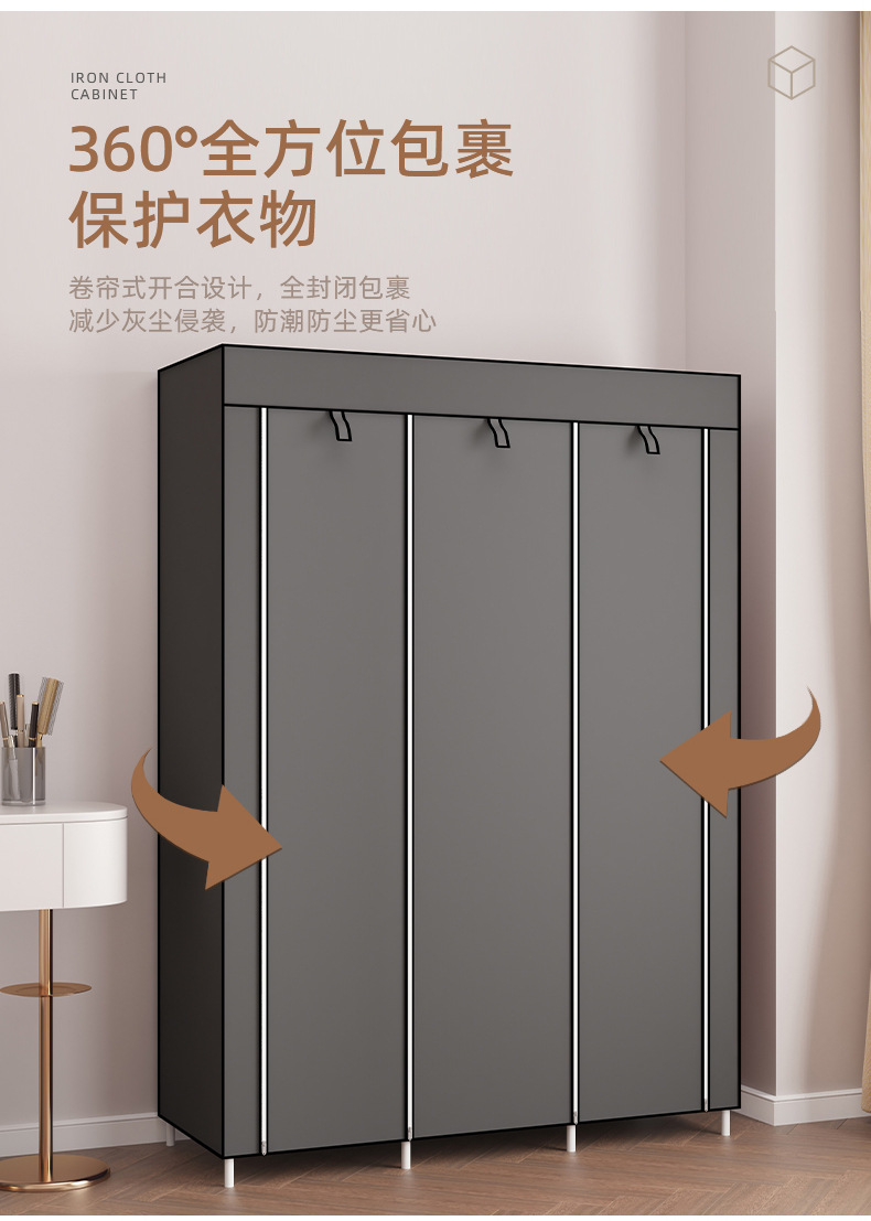 간단한 옷장 부직포 보관 옷 다층 방진 도매 대외 무역 조합 조립 아마존 철 파이프 옷장