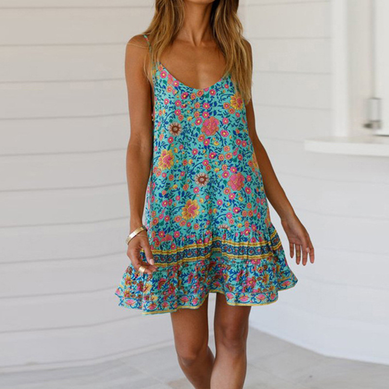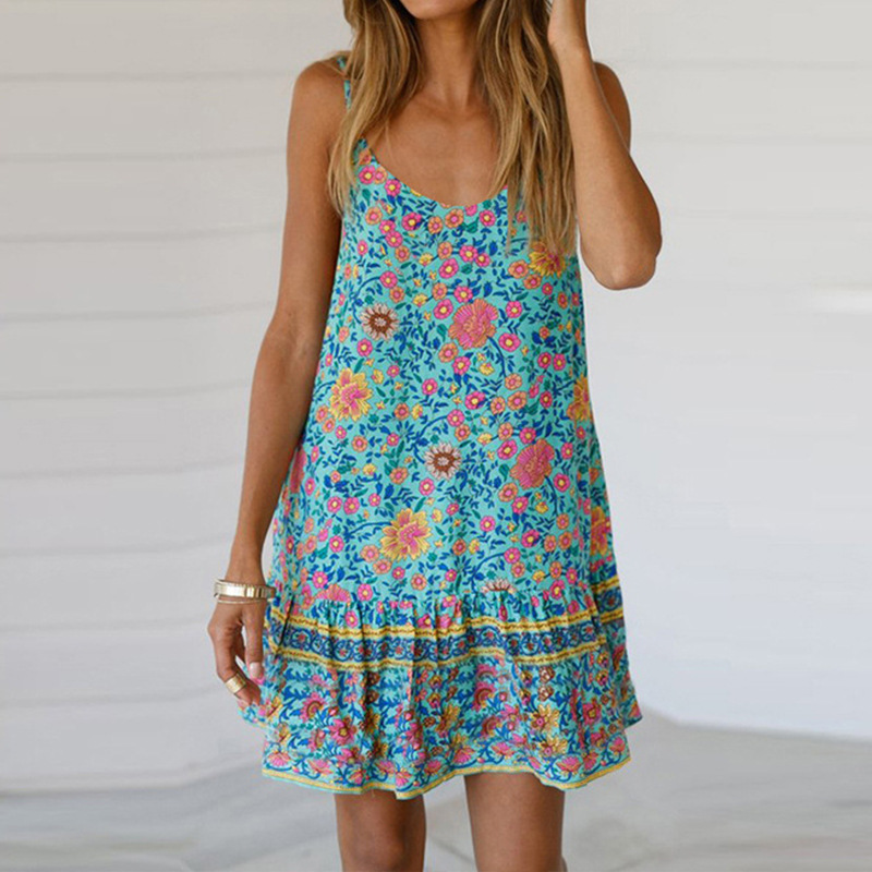 2023 유럽과 미국 크로스 국경 아마존 봄과 여름 새로운 여성의 섹시한 멜빵 주름 인쇄 원피스 여성스토어 가기