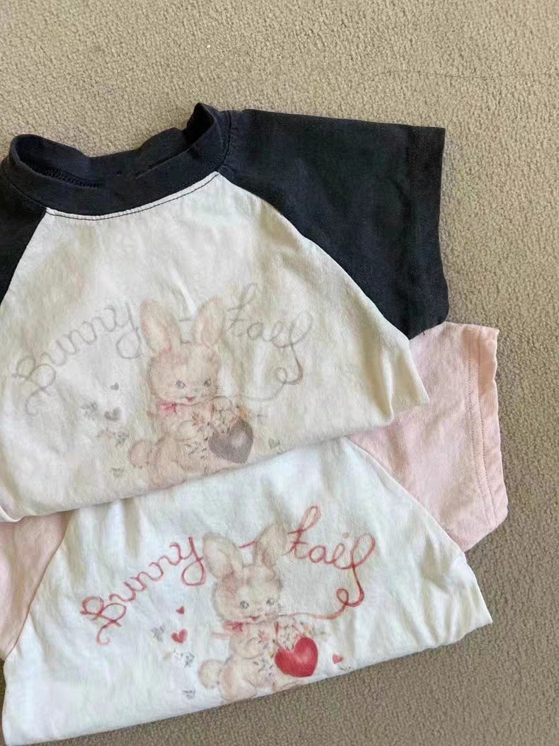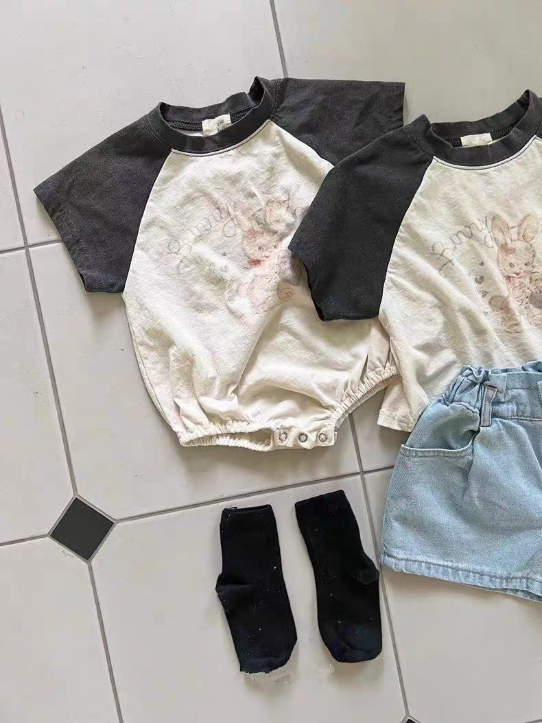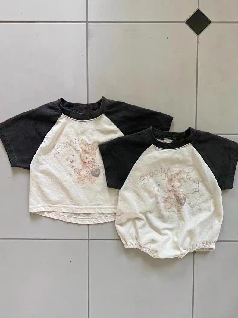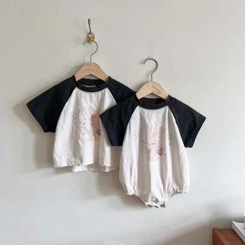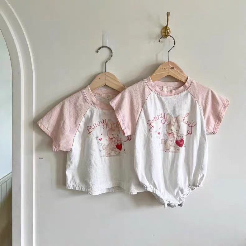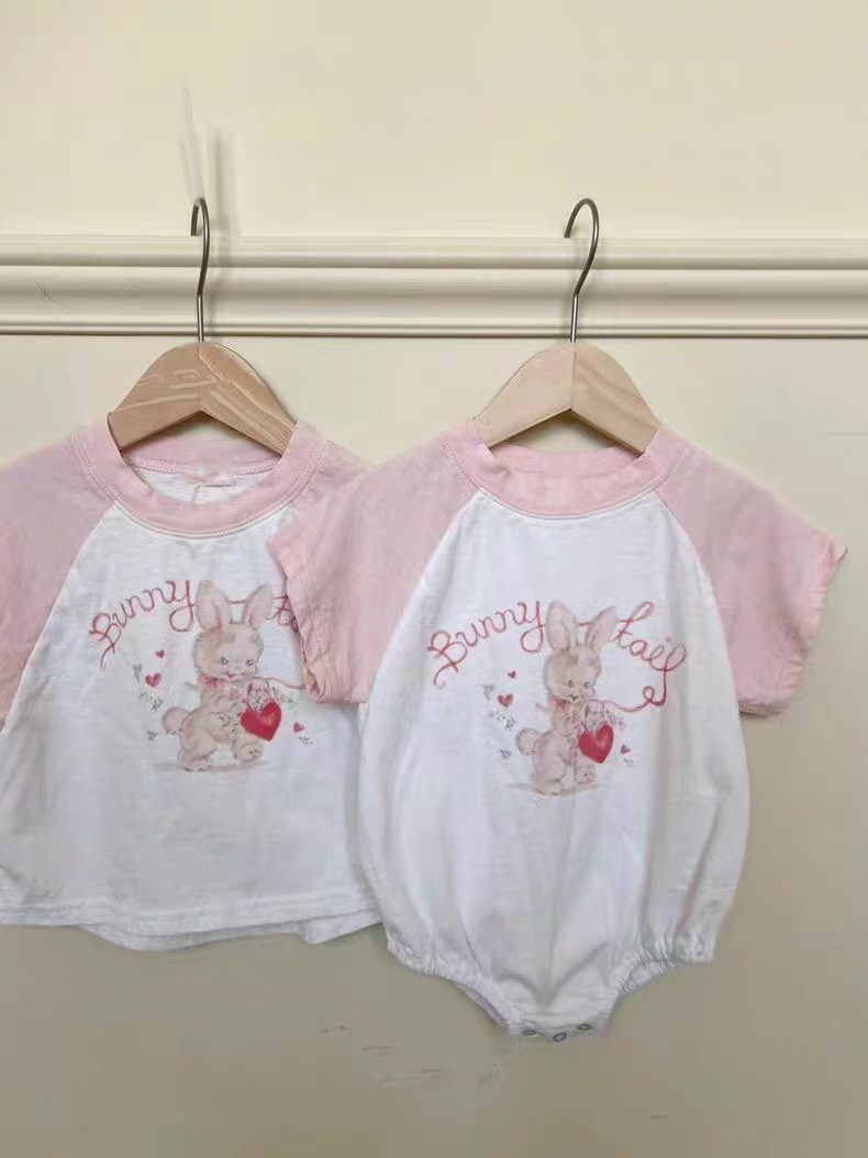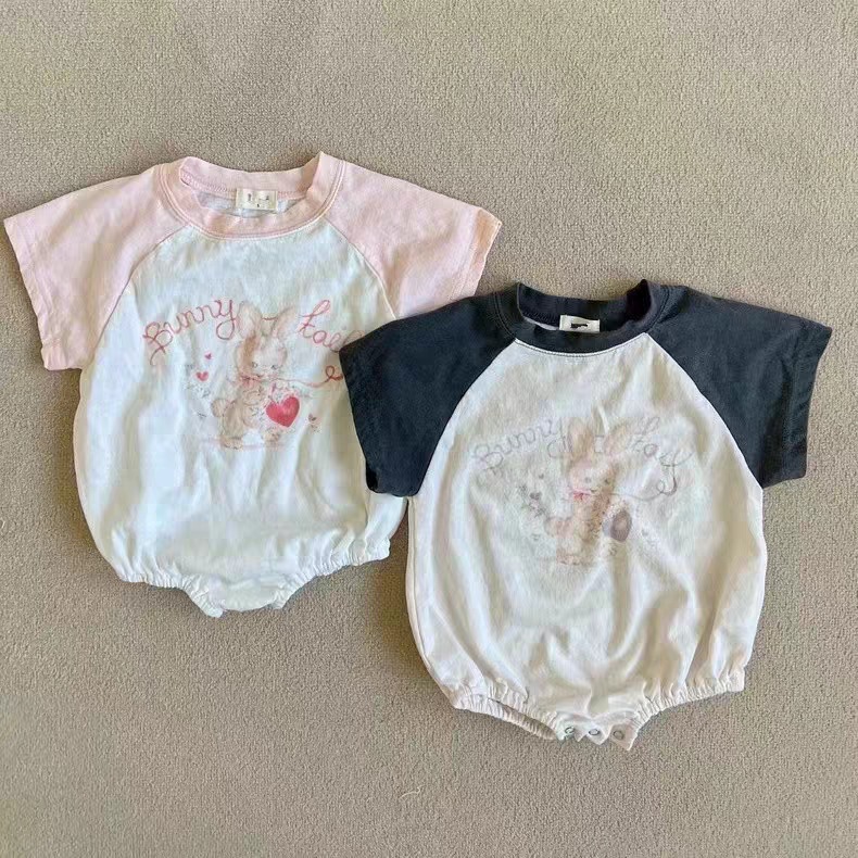 한국식 인 여름 아기 신생아 얇은 반팔 가슴 토끼 사랑 컬러 매칭 랩 하 옷 통기성 및 시원한
