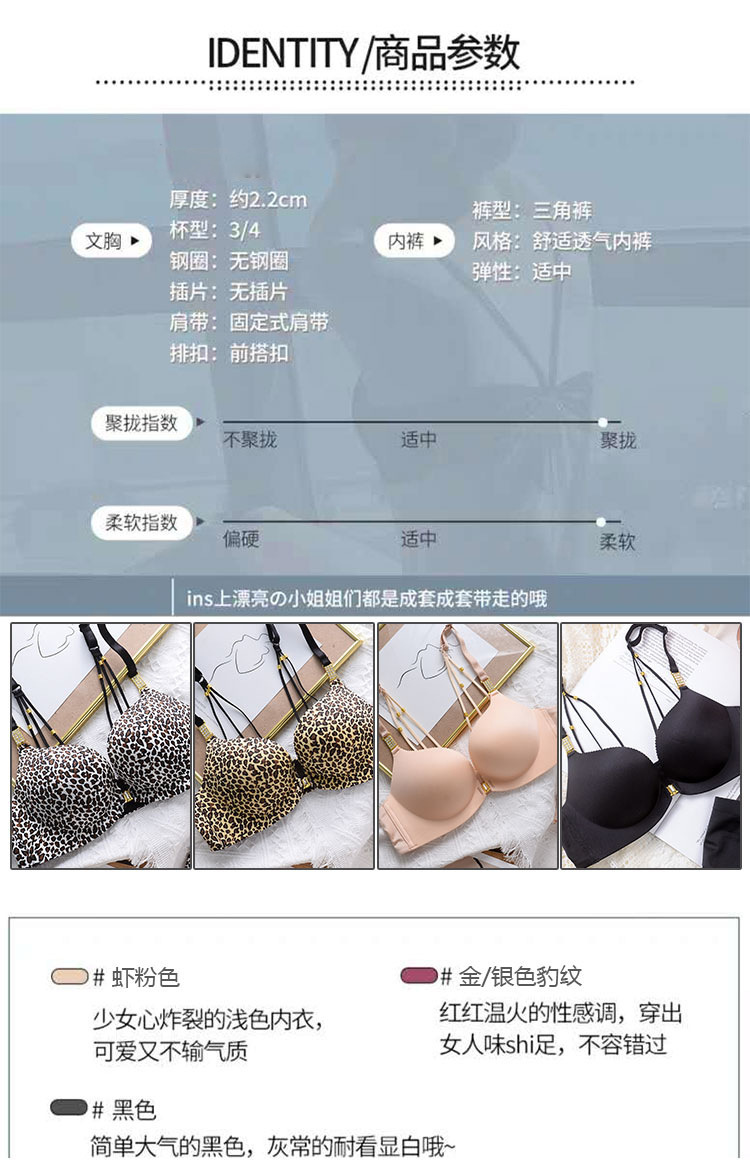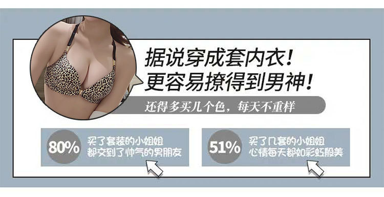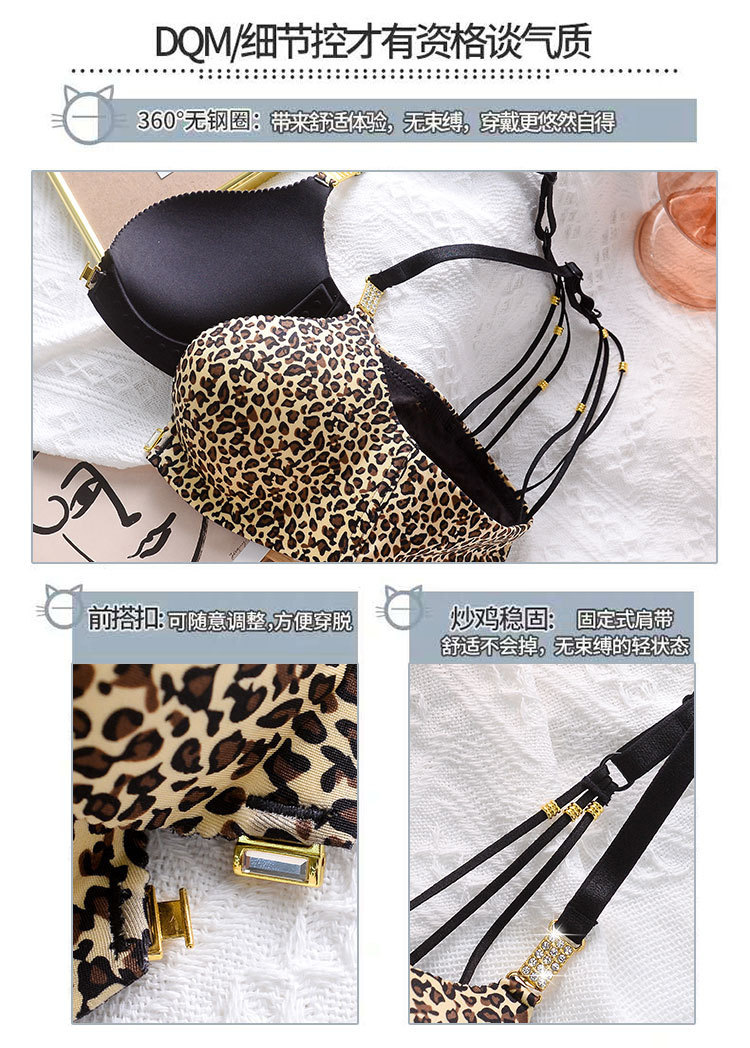 섹시한 레오파드 무늬 플랫 가슴 속옷 중간 두꺼운 아름다운 등 푸시 업 붕괴 유방 탑 업 전면 버클 작은 가슴 대형 브래지어 세트스토어 가기