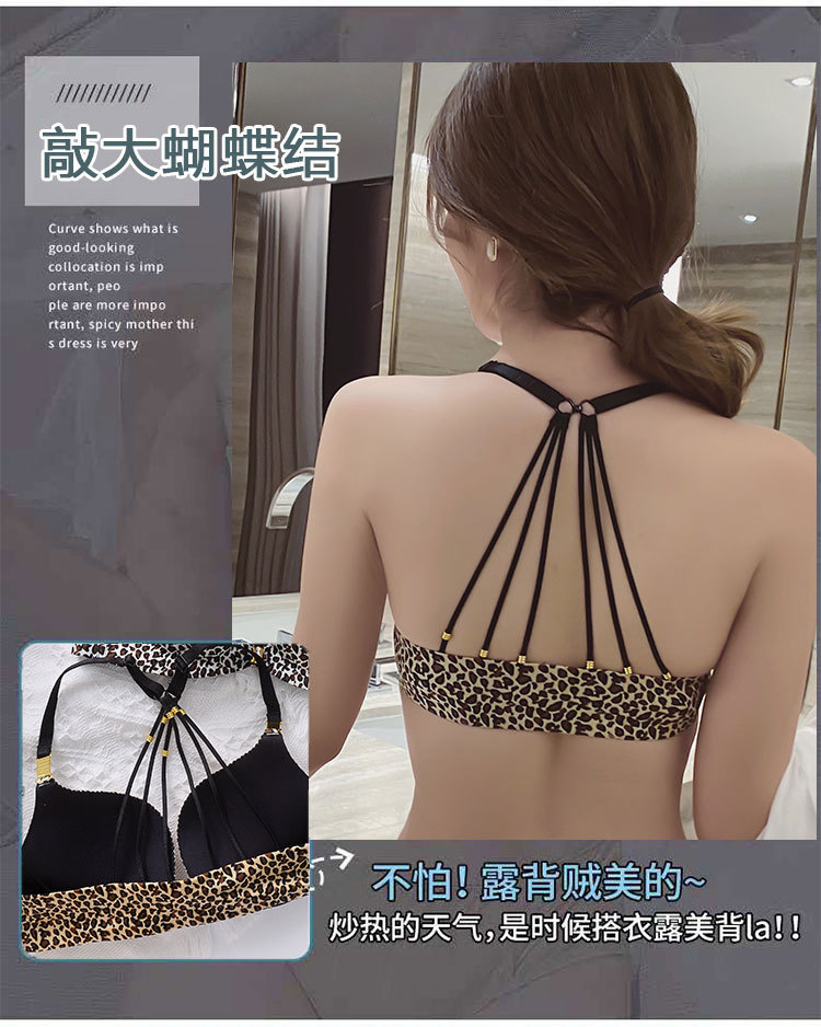 섹시한 레오파드 무늬 플랫 가슴 속옷 중간 두꺼운 아름다운 등 푸시 업 붕괴 유방 탑 업 전면 버클 작은 가슴 대형 브래지어 세트