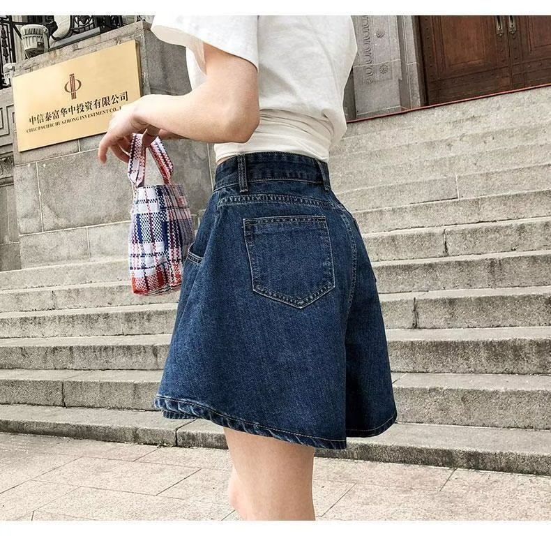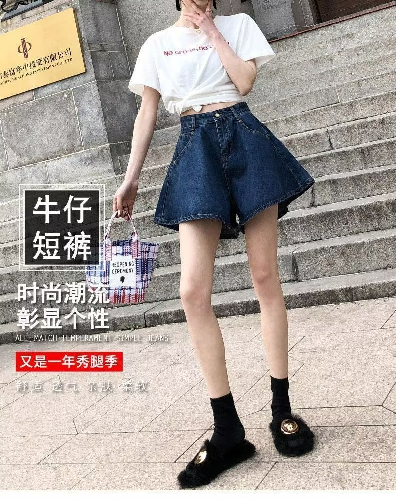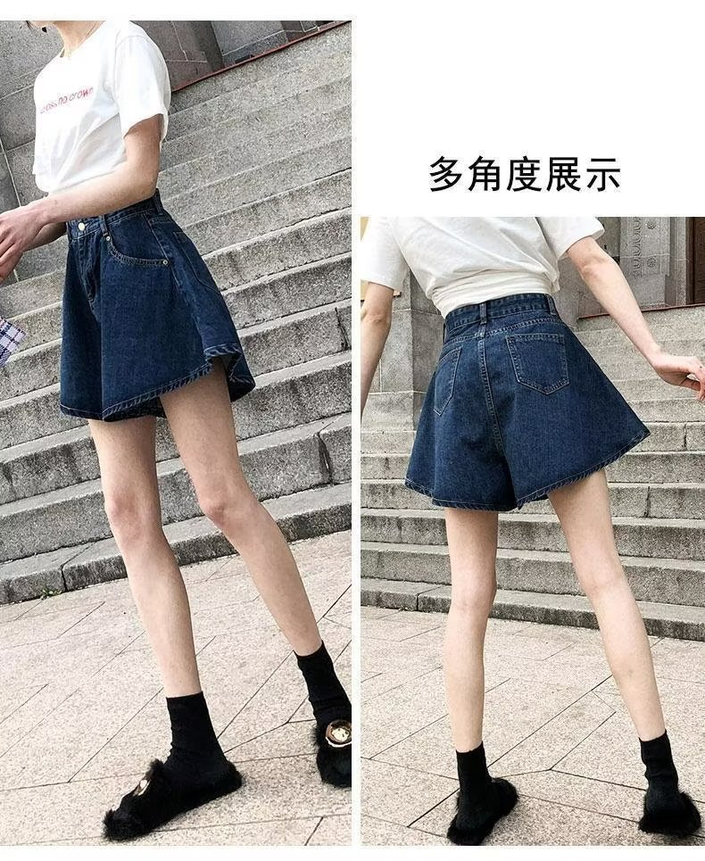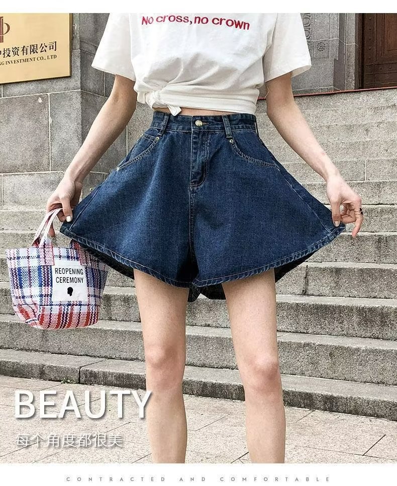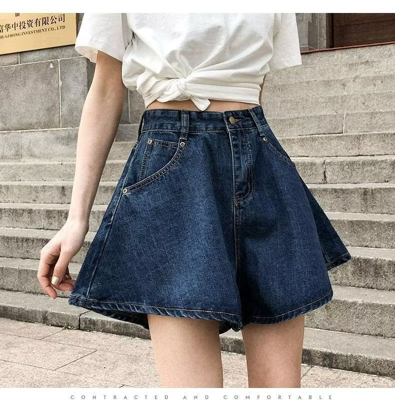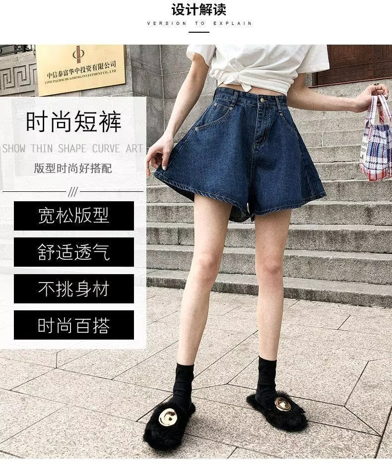 플러스 사이즈 하이 웨이스트 슬리밍 다크 블루 데님 반바지 여자의 여름 통통한 자매 느슨한 작은 얇은 A-라인 바지스토어 가기