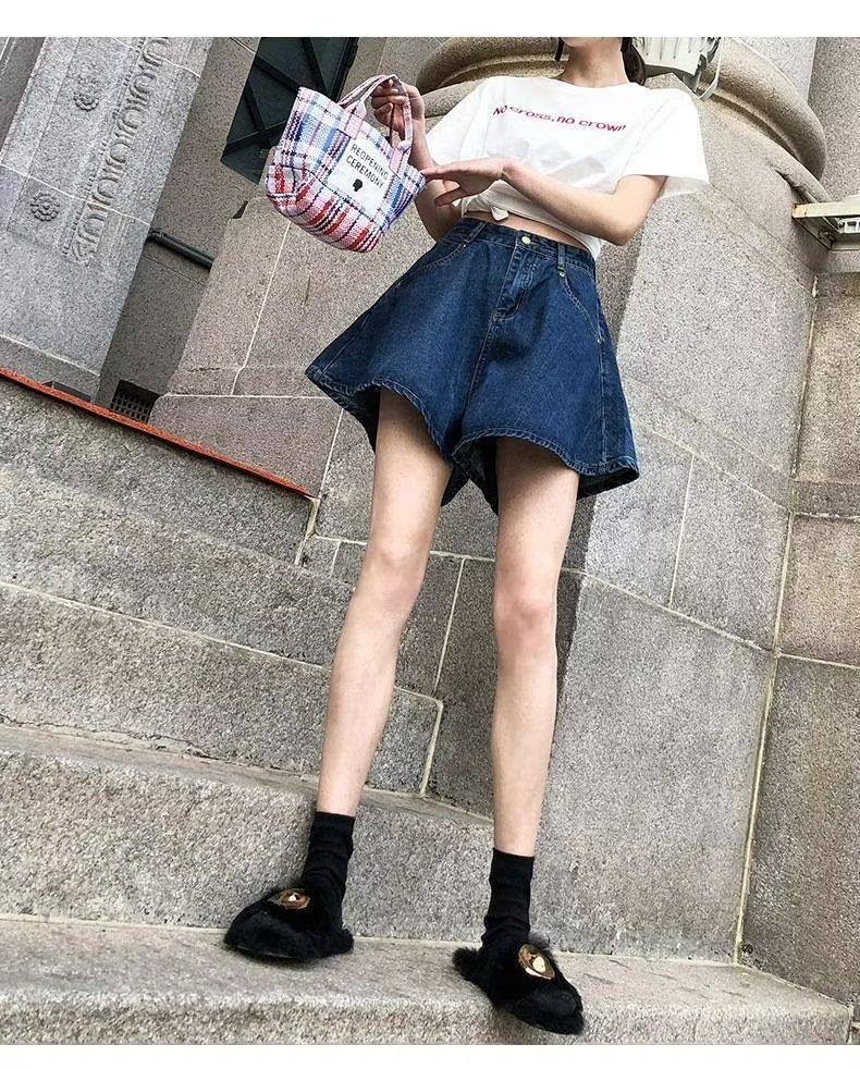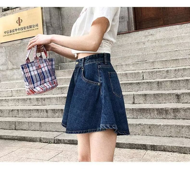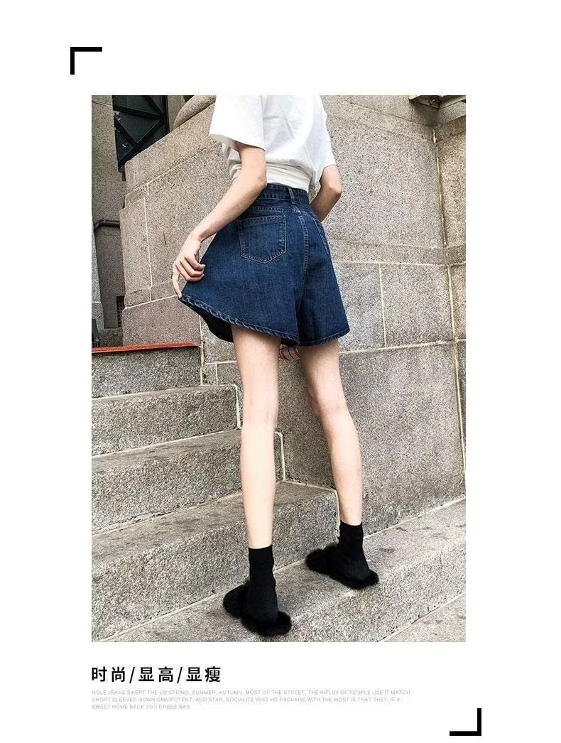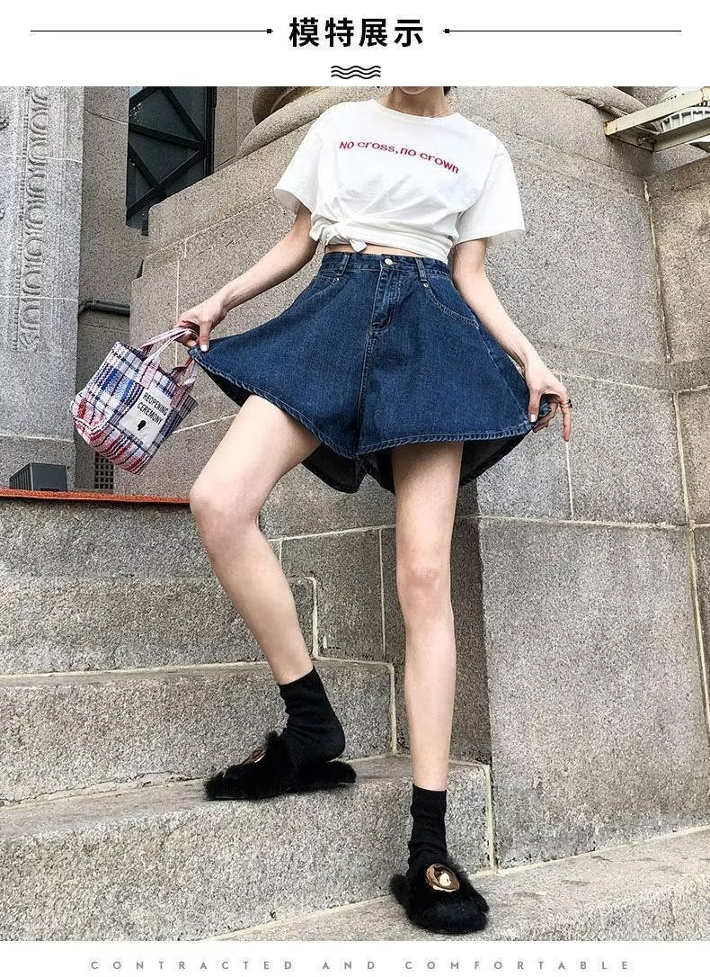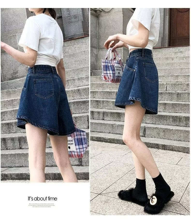 플러스 사이즈 하이 웨이스트 슬리밍 다크 블루 데님 반바지 여자의 여름 통통한 자매 느슨한 작은 얇은 A-라인 바지스토어 가기
