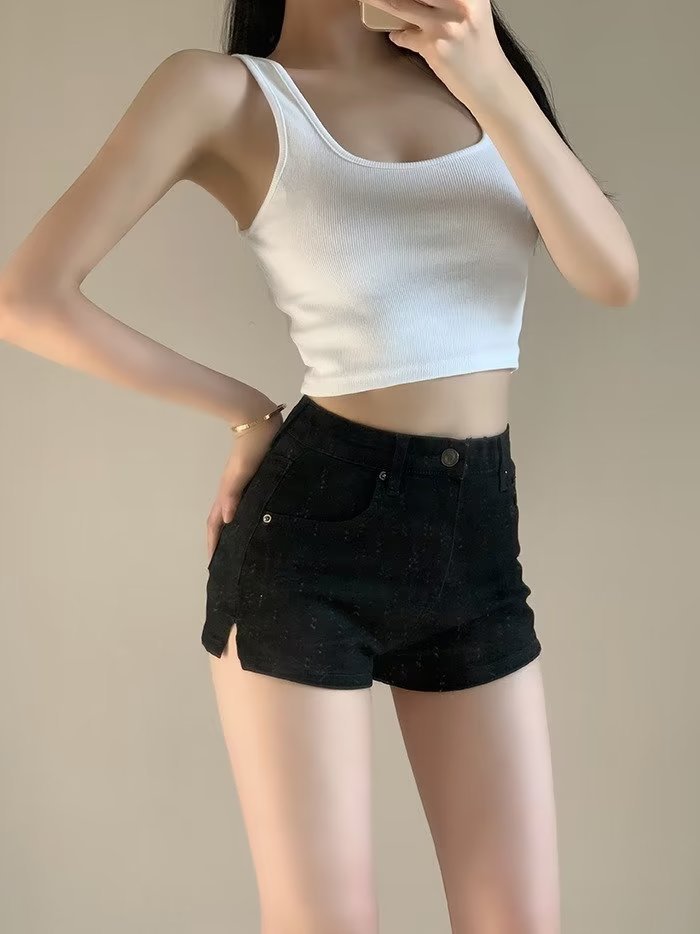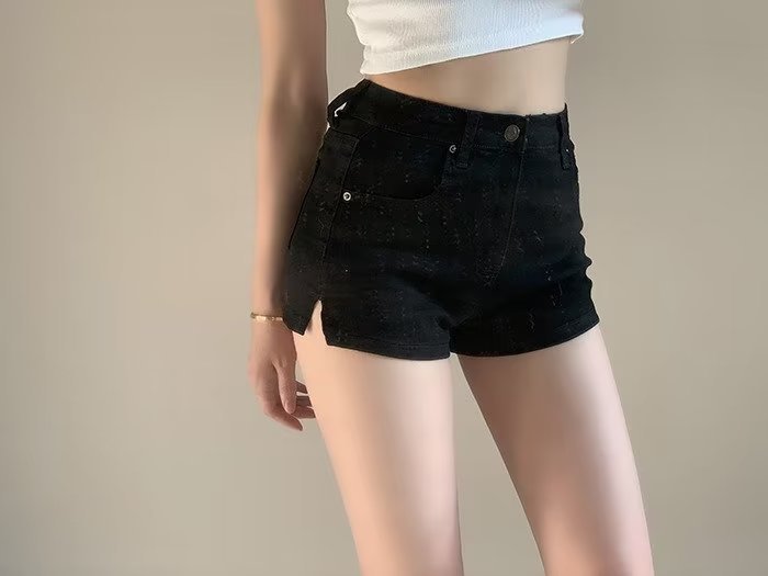 청바지 여성의 여름 꽉 얇은 핫 팬츠 유럽과 미국의 핫 걸 반바지 하이 웨이스트 작은 분할 엉덩이 바지 트렌디스토어 가기