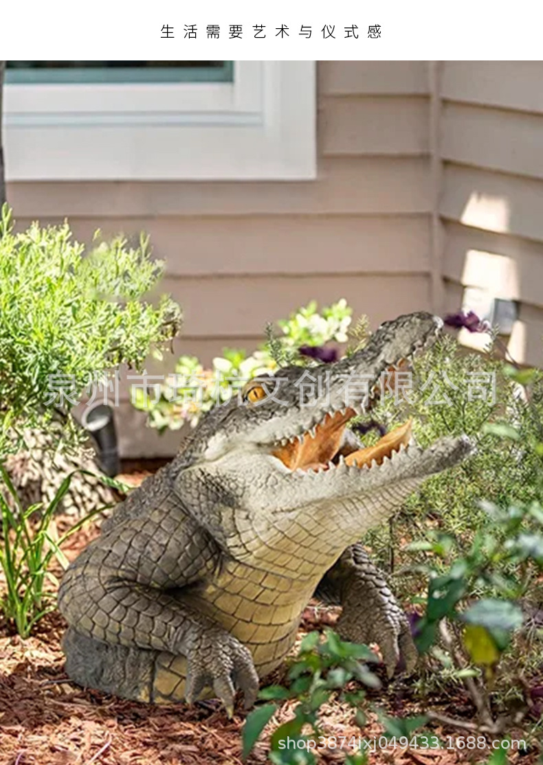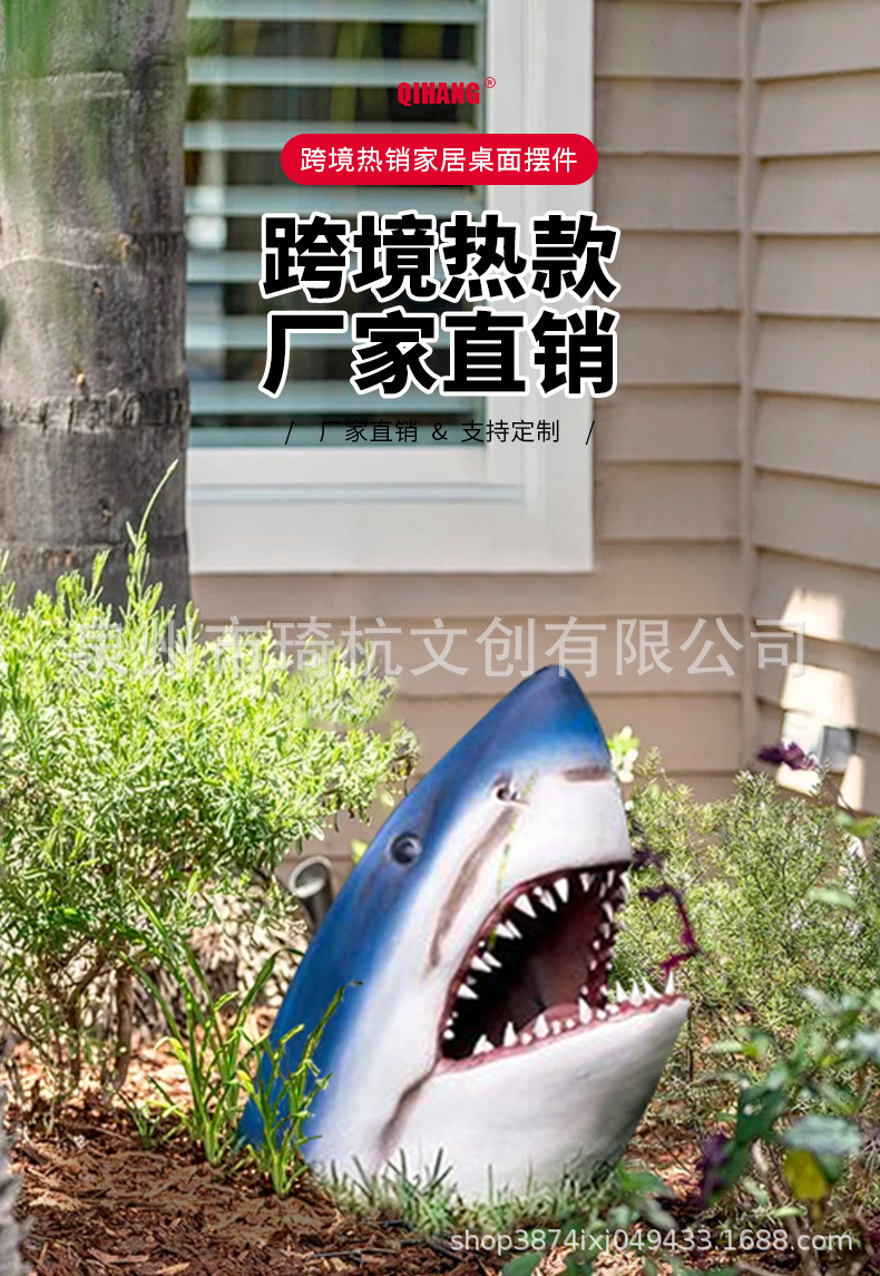 국경 간 시뮬레이션 상어 머리 장식 홈 안뜰 정원 상어 머리 악어 연못 디자인 야외