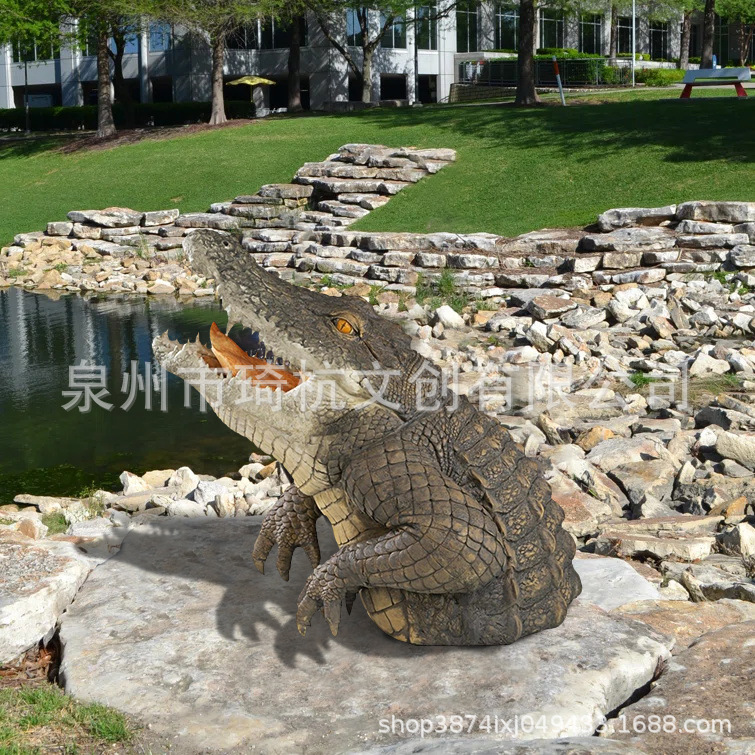 국경 간 시뮬레이션 상어 머리 장식 홈 안뜰 정원 상어 머리 악어 연못 디자인 야외스토어 가기