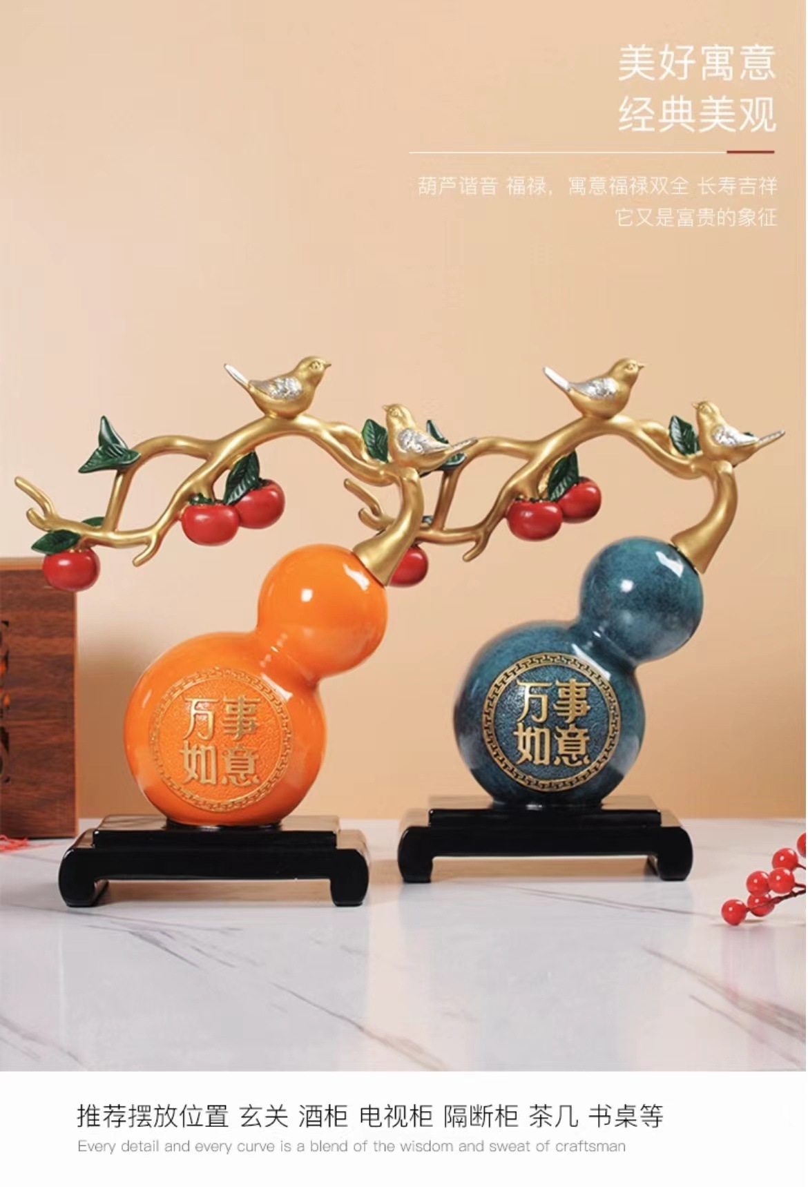 신중국풍 가정용 거실 행운을 기원하는 호박 장식품 새집 이사 선물 서재 현관 와인장 수공예품