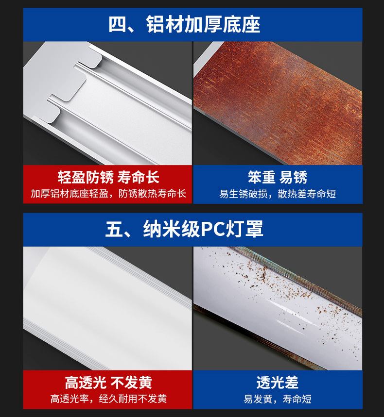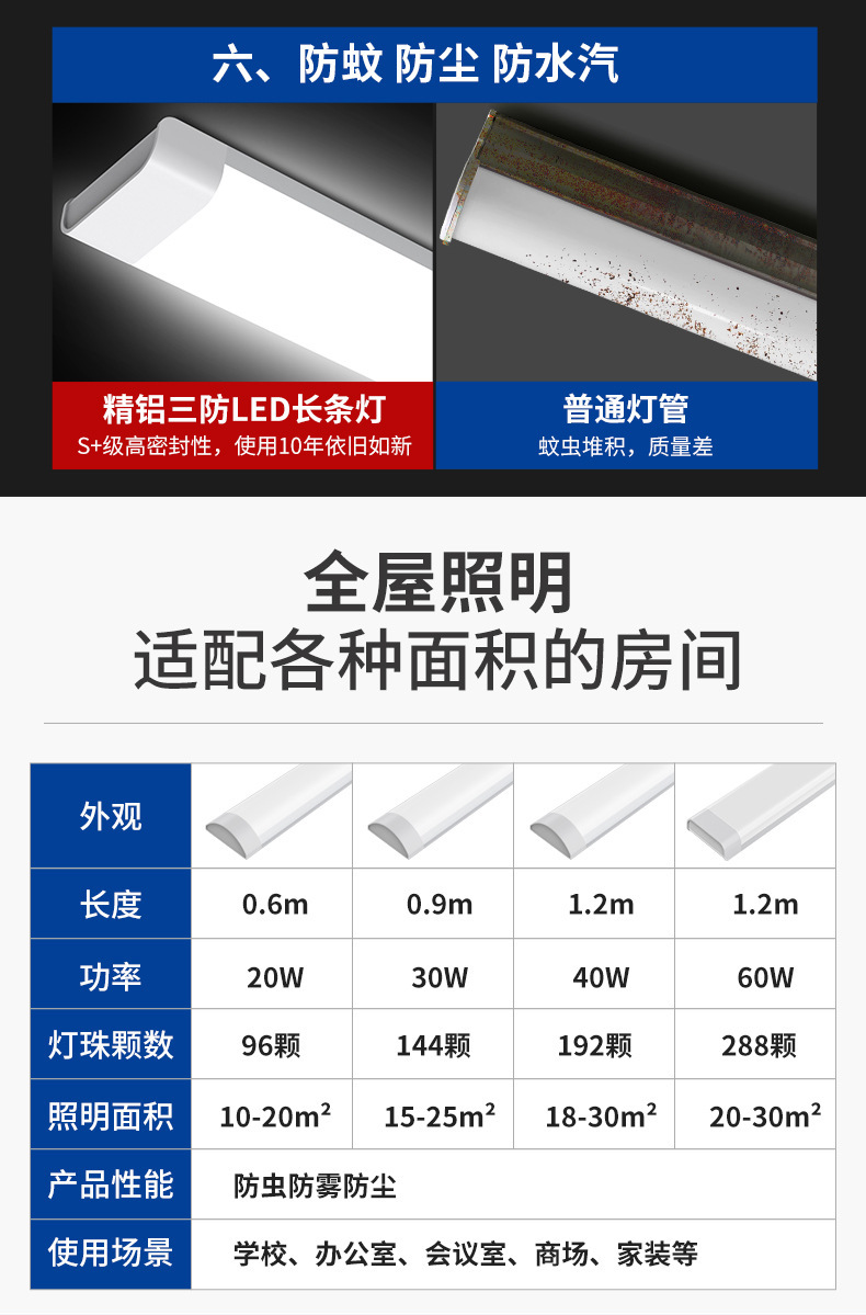 LED 스트립 램프 슈퍼 브라이트 에너지 절약 알루미늄 램프 일체형 스트립 사무실 램프 가정용 3 방 정화 램프 풀 세트