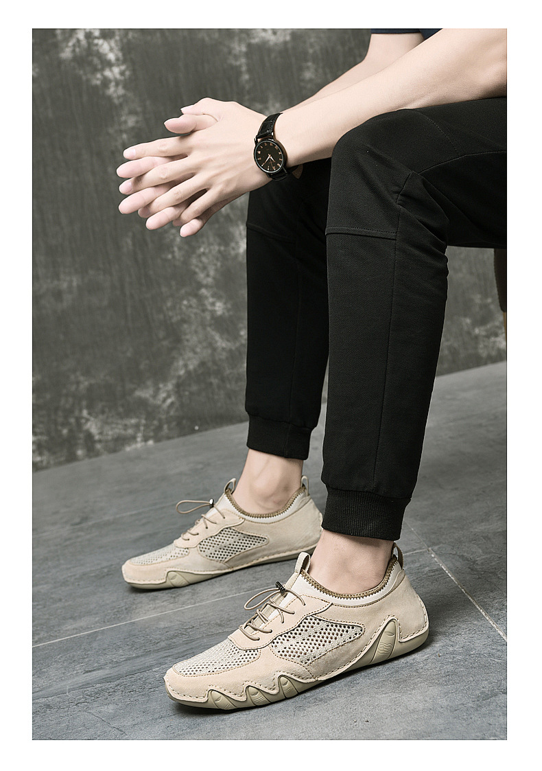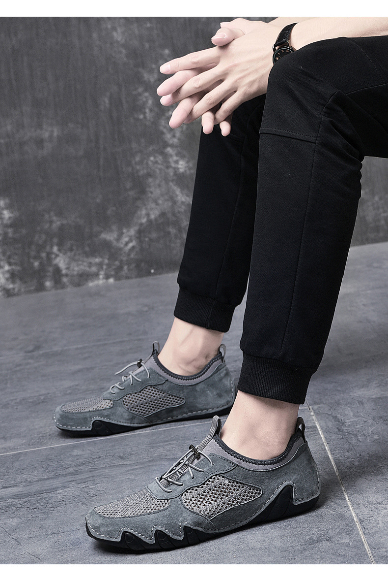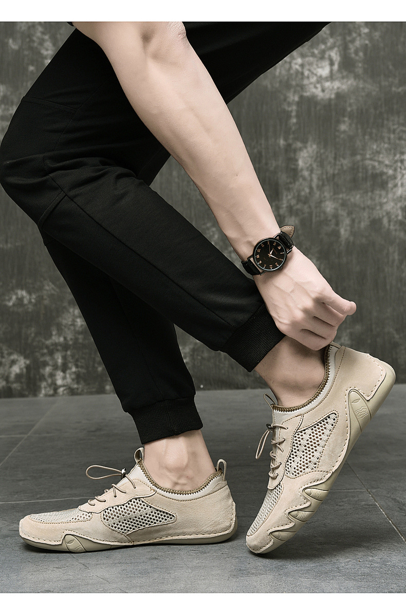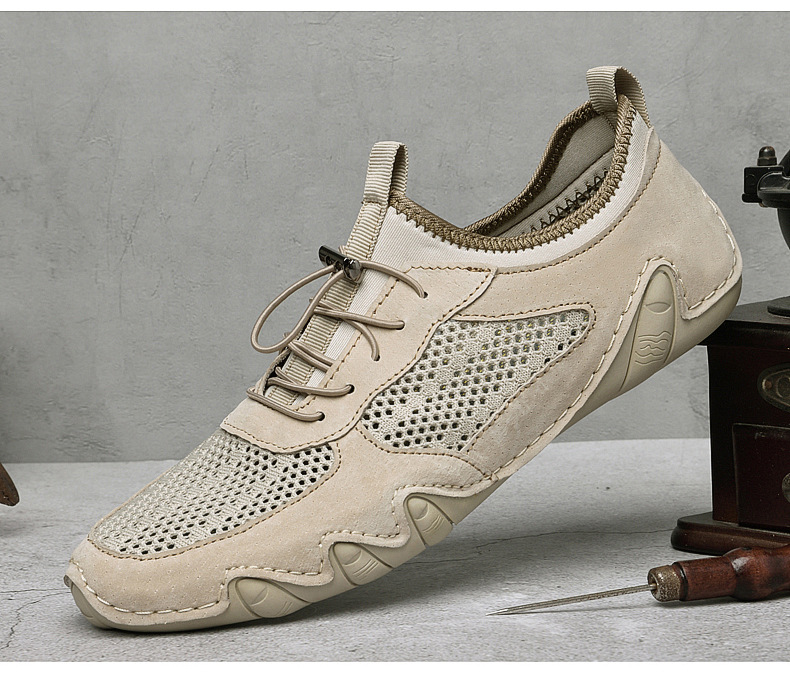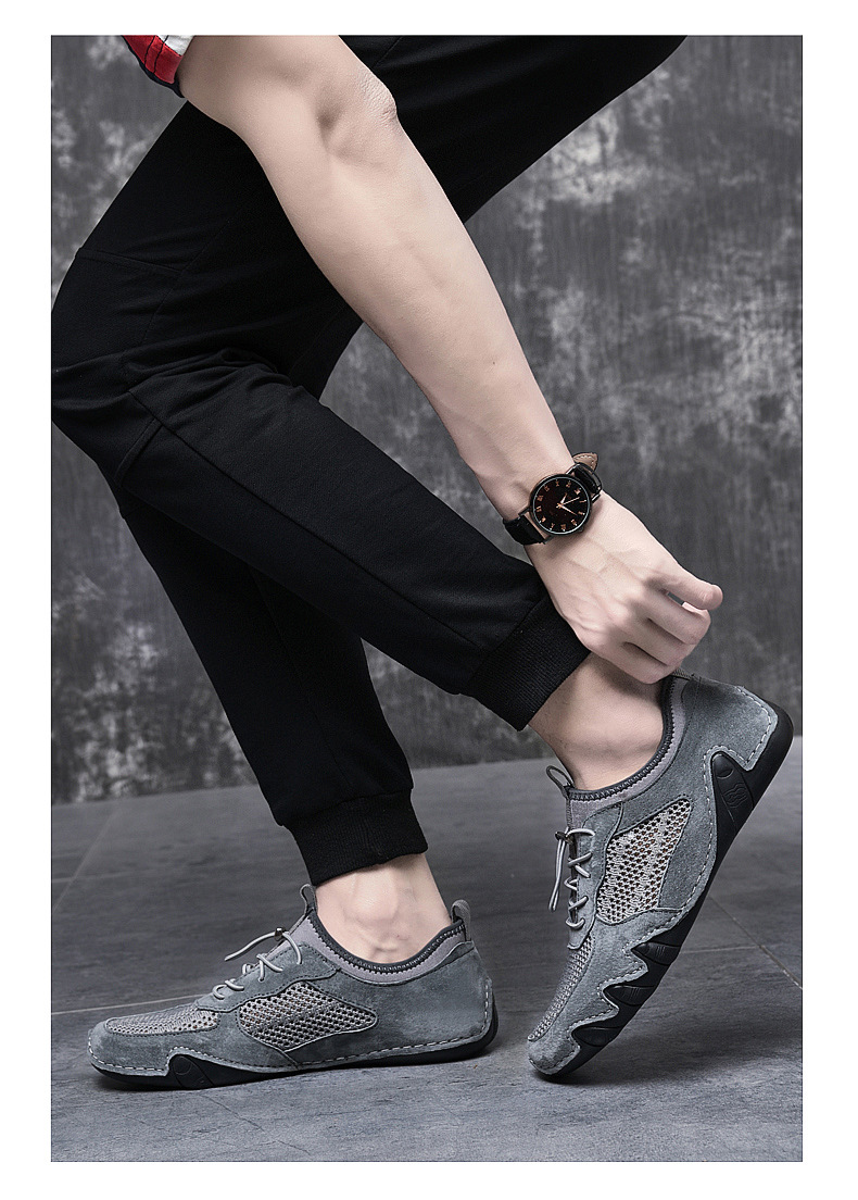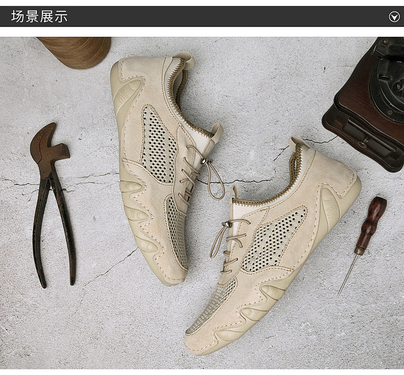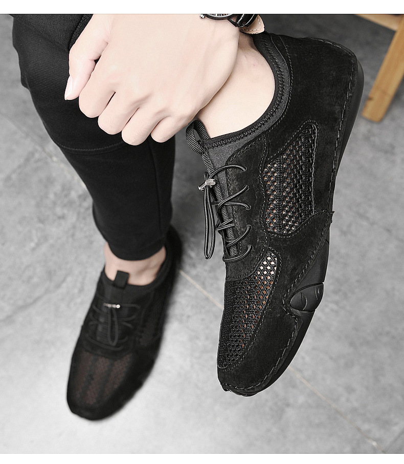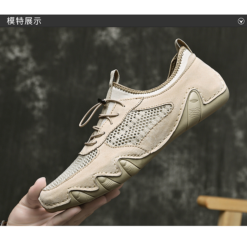 새로운 여름 남성 신발 플러스 사이즈 메쉬 신발 통기성 스포츠 남성 캐주얼 신발 가죽 신발 남성용 모든 일치 유행 신발스토어 가기