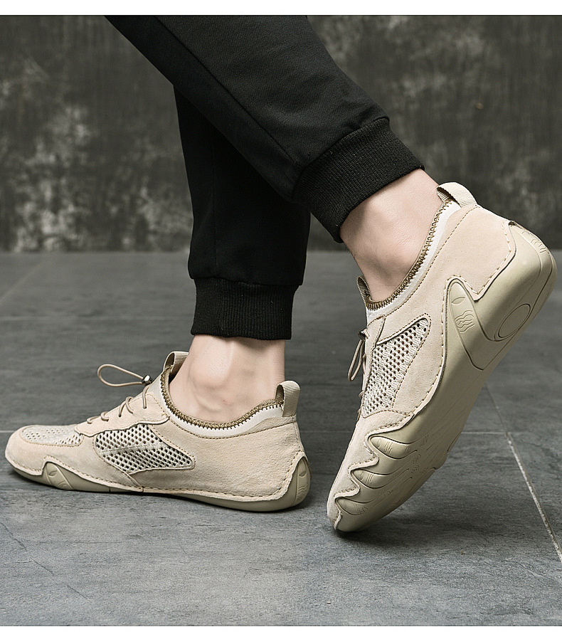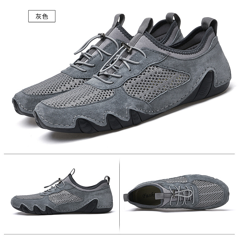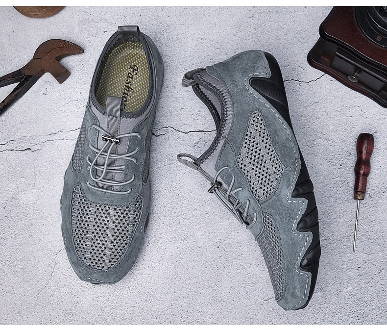 새로운 여름 남성 신발 플러스 사이즈 메쉬 신발 통기성 스포츠 남성 캐주얼 신발 가죽 신발 남성용 모든 일치 유행 신발