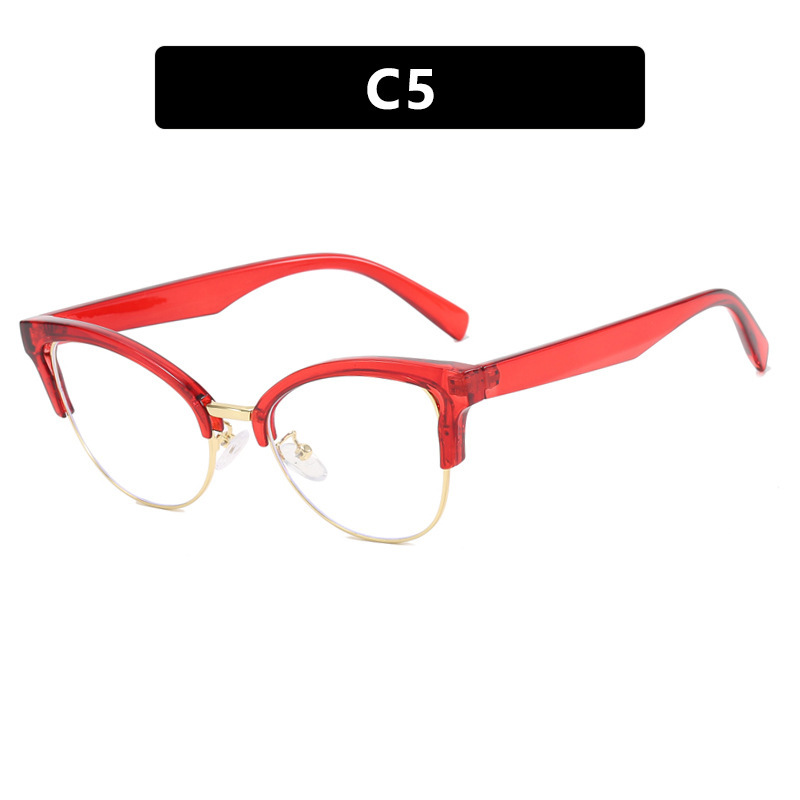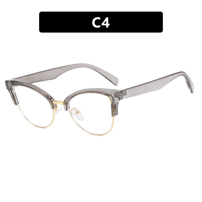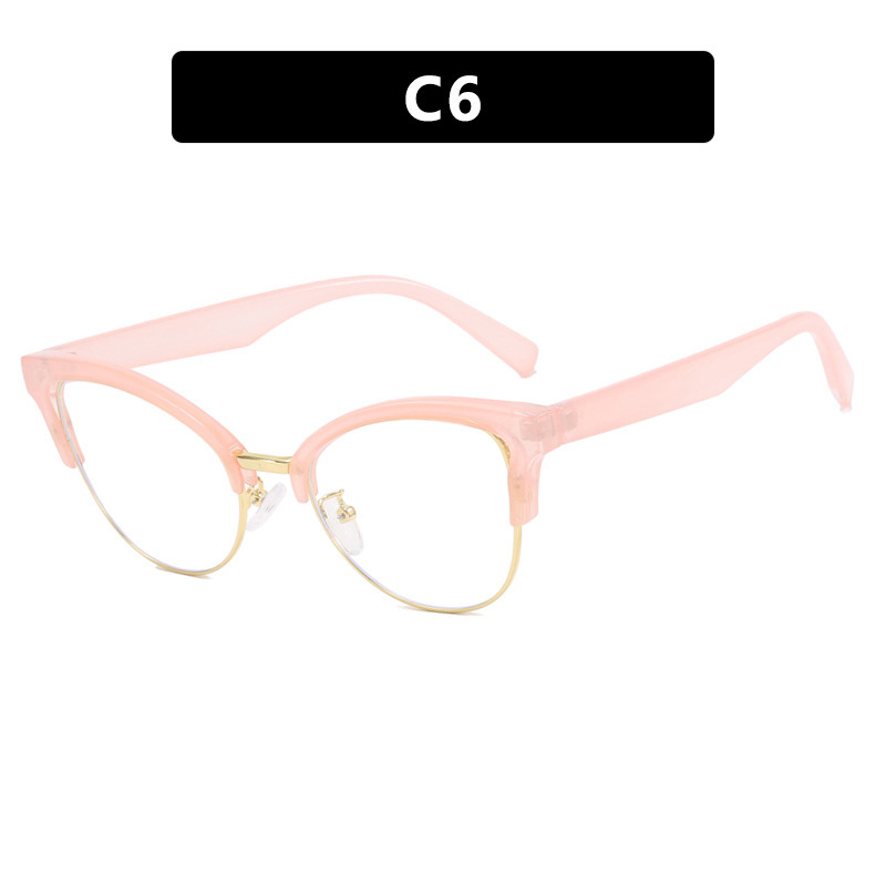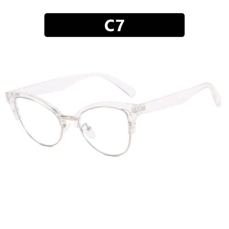 유럽과 미국의 복고풍 하프 프레임 플랫 미러 2023 새로운 숙녀 안경 프레임 안티 블루 고양이의 눈은 근시 오목 모양을 장착 할 수 있습니다