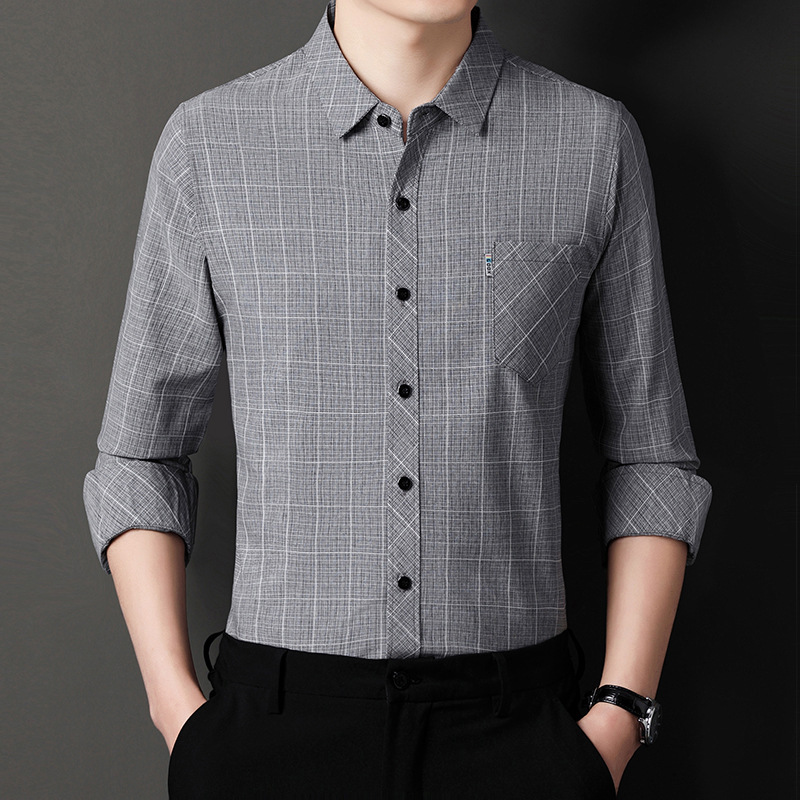 봄과 가을 2022 남성용 스트라이프 리얼 포켓 얇은 모조 면과 린넨 긴팔 셔츠 젊은 중년 캐주얼 남성 셔츠스토어 가기
