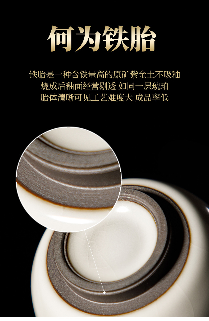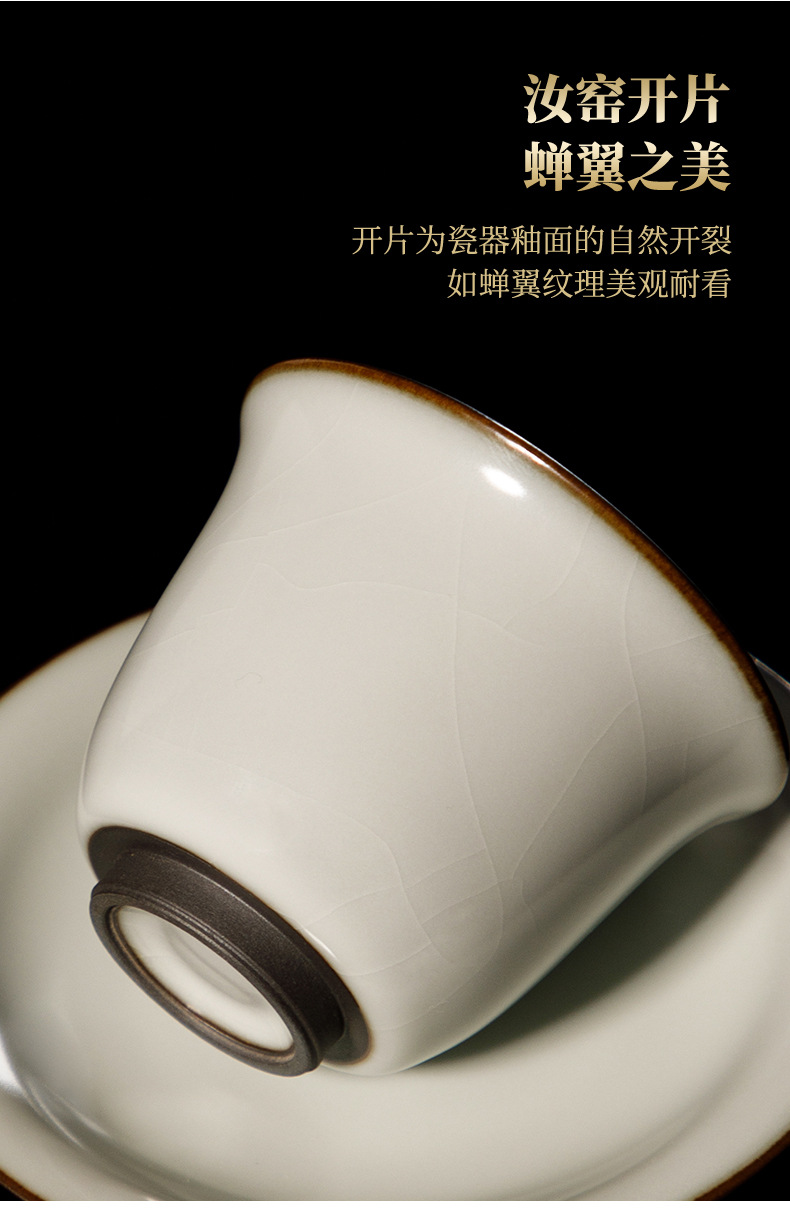 Song Pu Ru Kiln Ru 도자기 커버 그릇 수제 정제 된 철 발 문 화이트 유약 커버 그릇 세라믹 산사이 차 그릇 오프닝 필름을 높일 수 있습니다스토어 가기