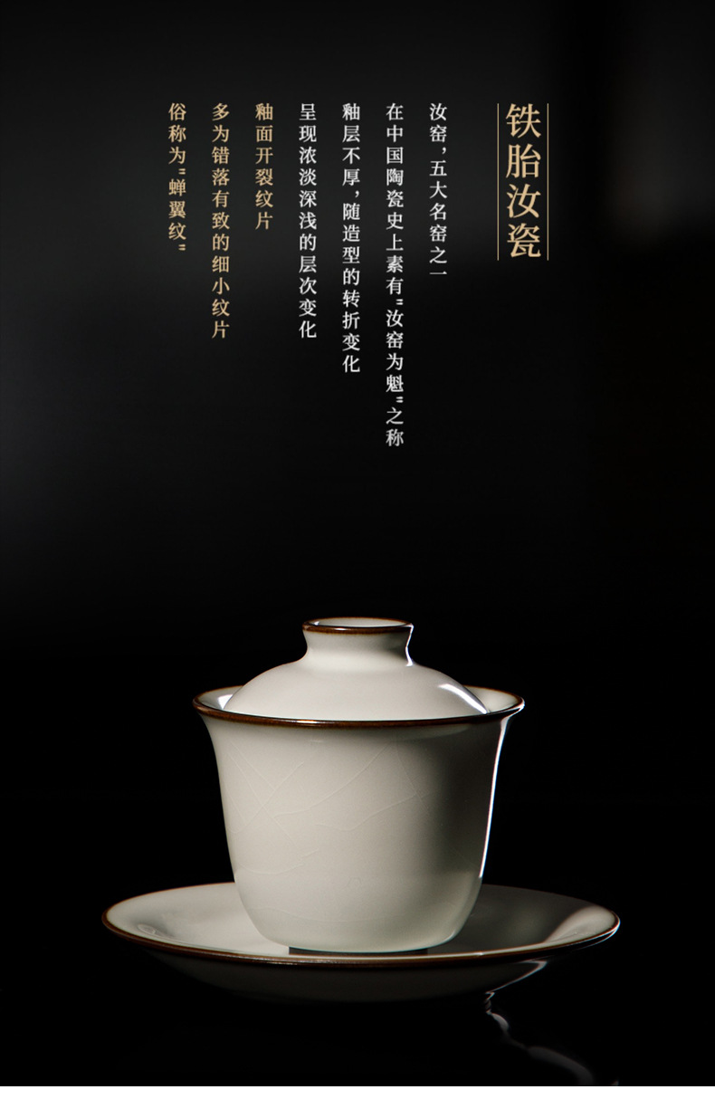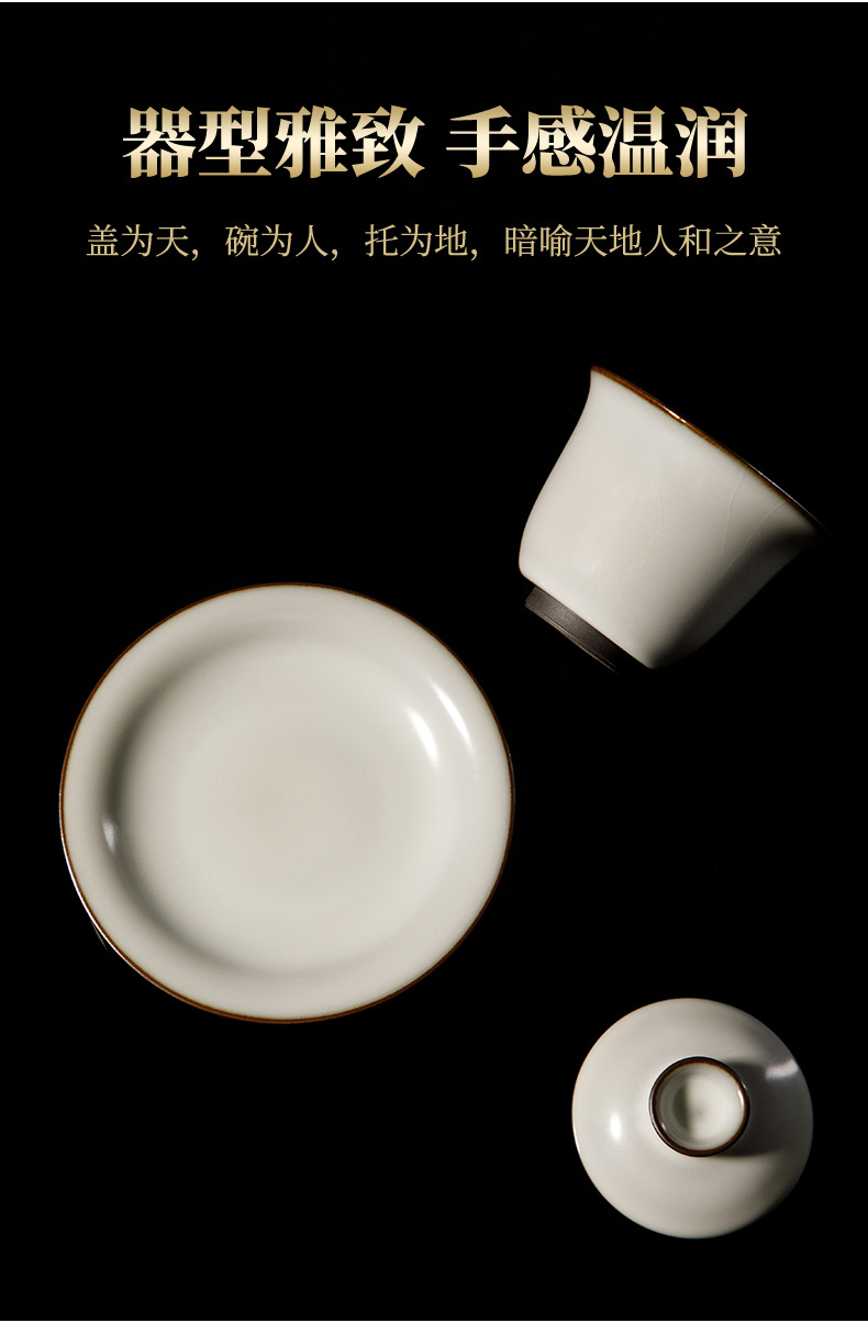 Song Pu Ru Kiln Ru 도자기 커버 그릇 수제 정제 된 철 발 문 화이트 유약 커버 그릇 세라믹 산사이 차 그릇 오프닝 필름을 높일 수 있습니다