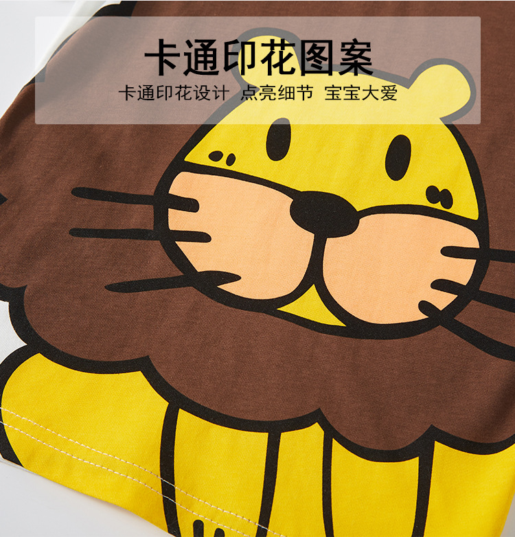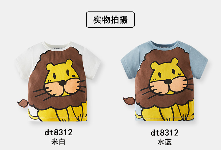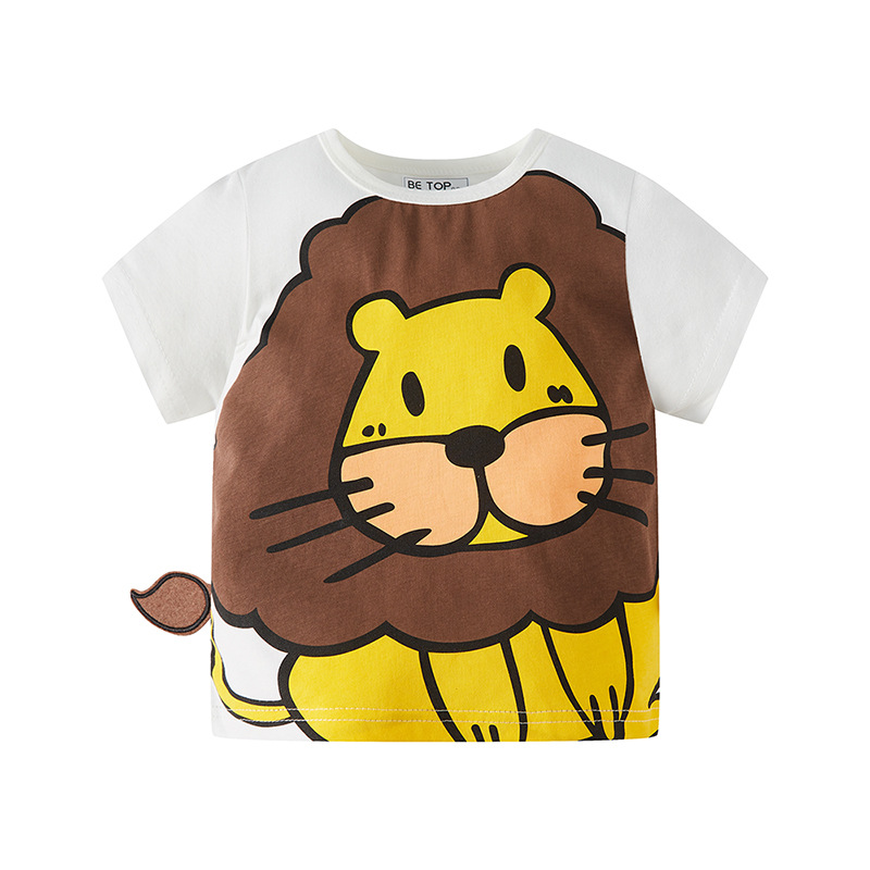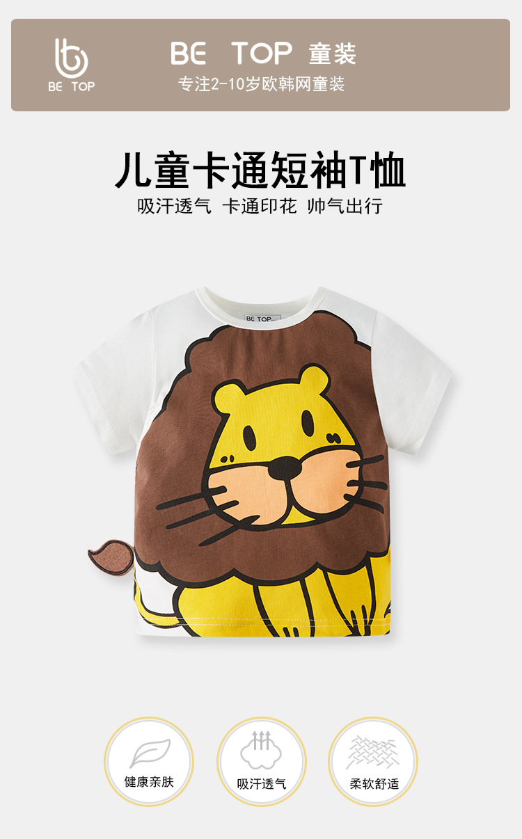 Betop 여름 만화 사자 반 소매 소년 티셔츠 반팔 면화 새로운 어린이 아기 여름 옷 머리카락 세대스토어 가기