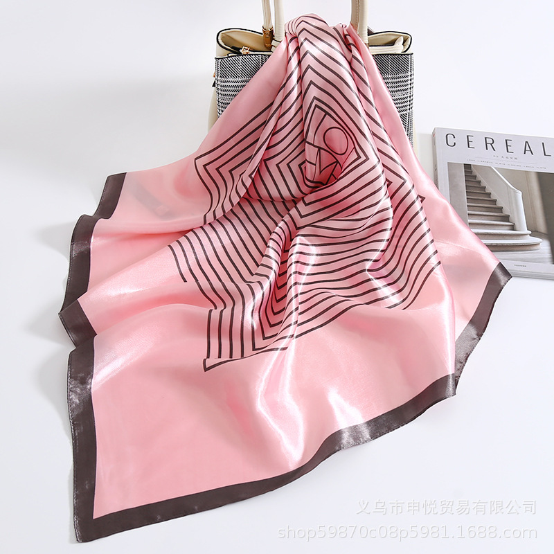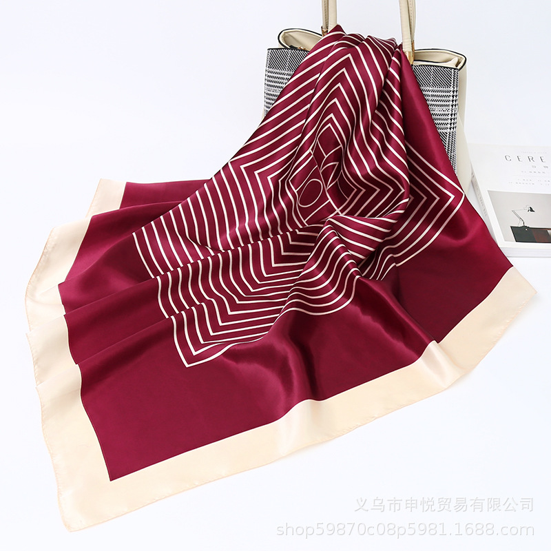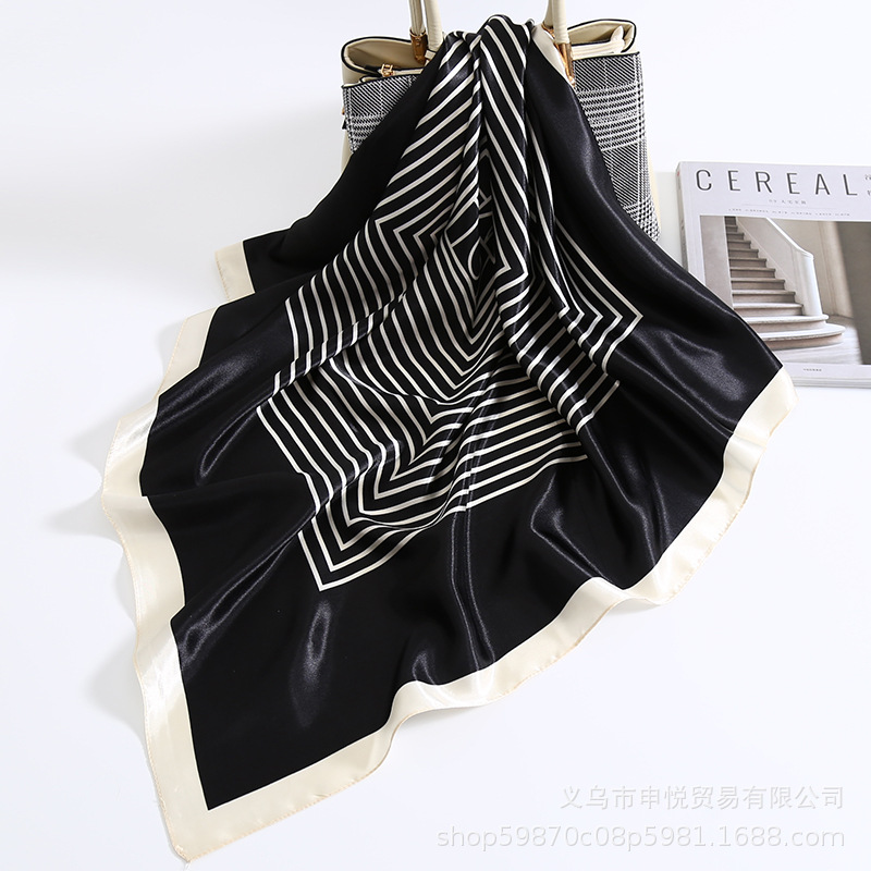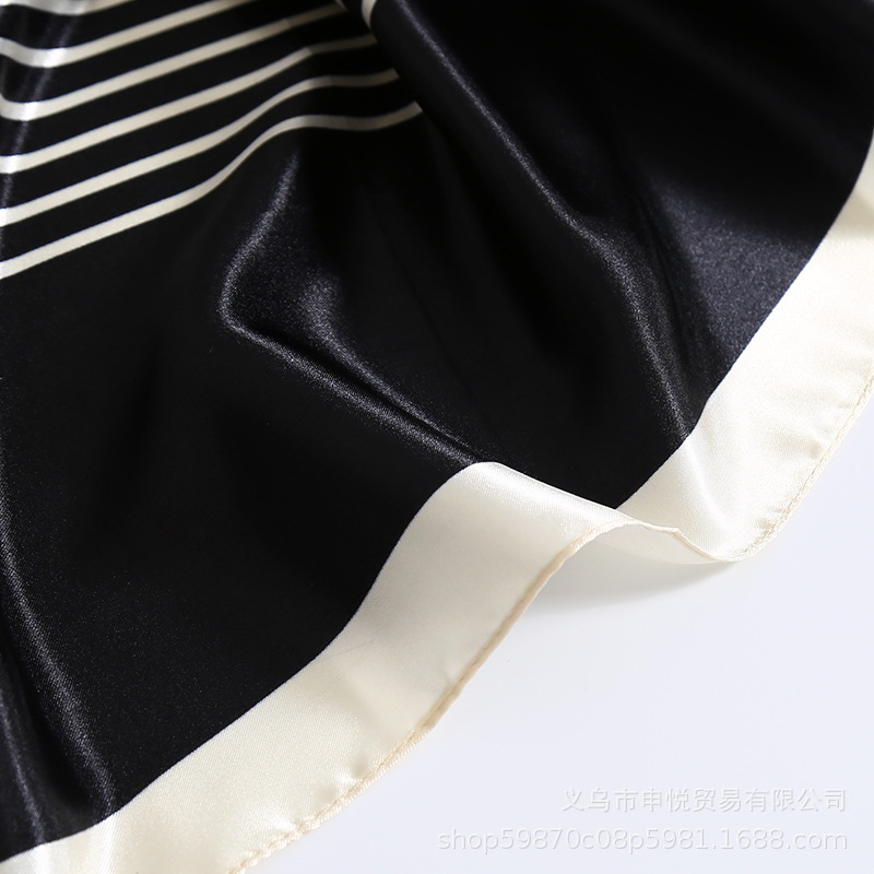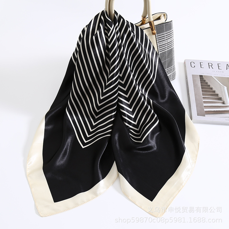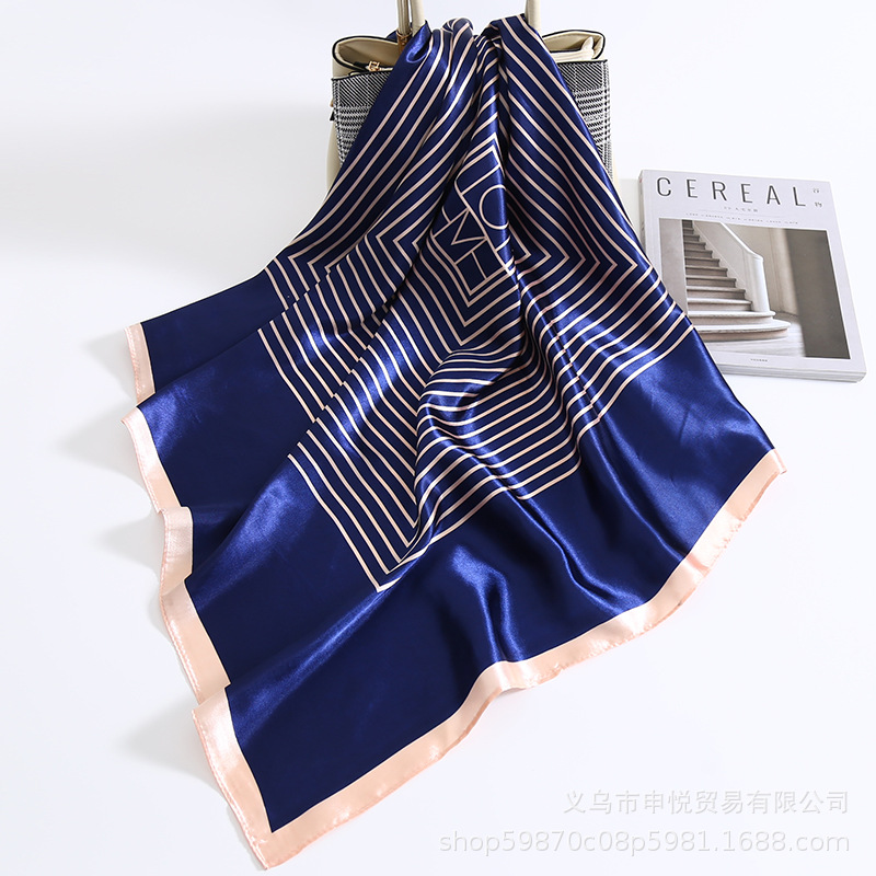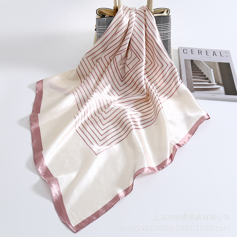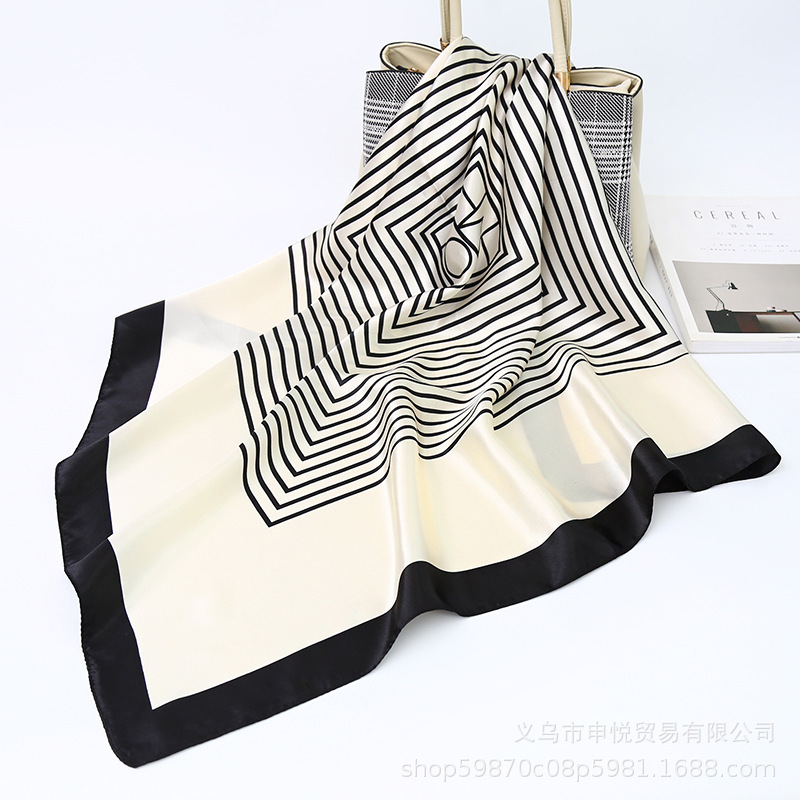 봄 가을 패션 다용도 여행용 자외선 차단 숄 스트라이프 심플 실크 스카프 인조 실크 90x90 스퀘어 스카프 여성용 스카프스토어 가기