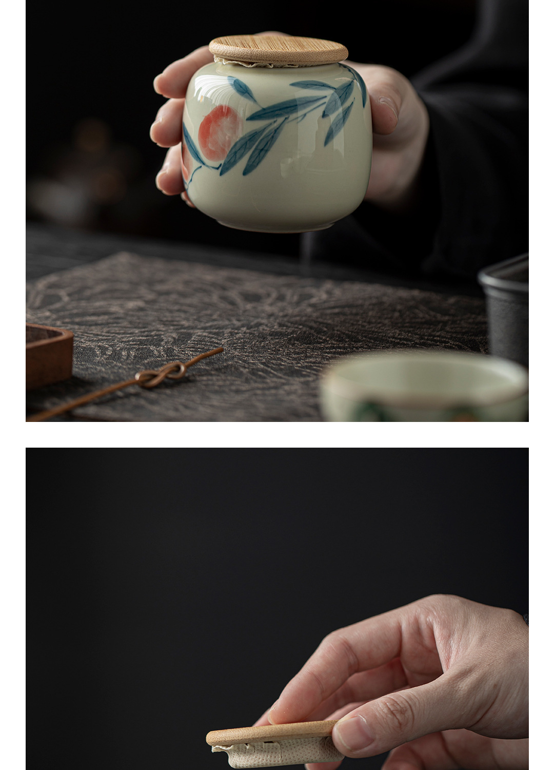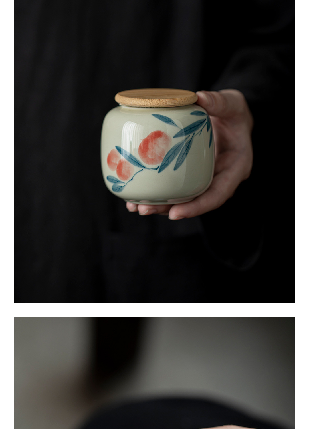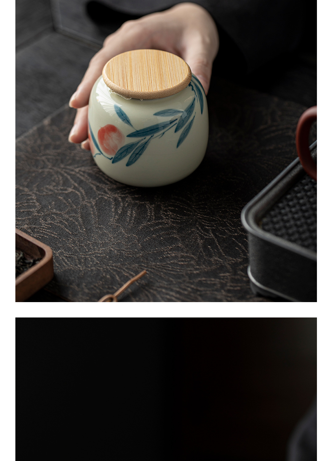 옛날 따라잡기 손으로 그린 찻주전자 식물 재 세라믹 밀폐 냄비 보관 찻주전자 방습 휴대용 중국식 가정용 소형 찻주전자