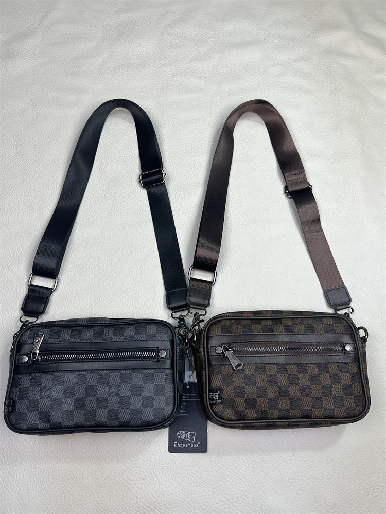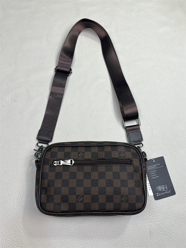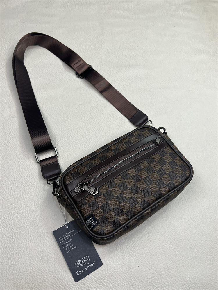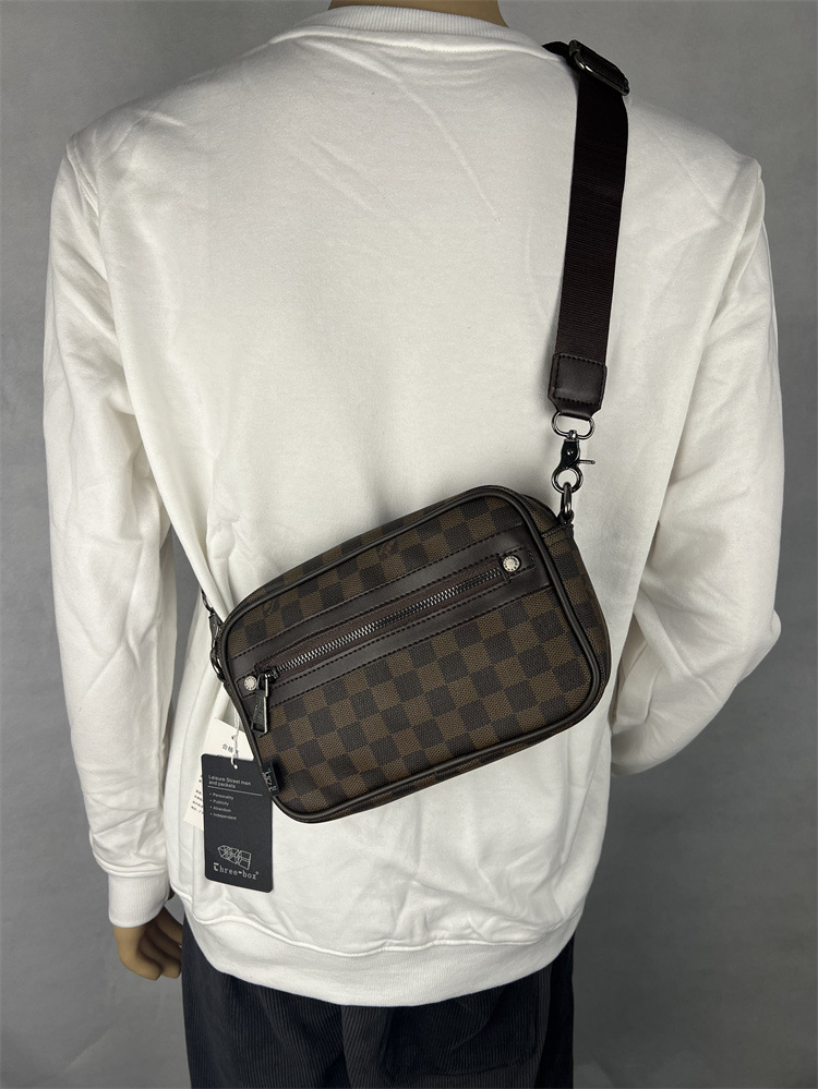 三盒子新品国潮男包包 时尚格子日韩单肩包 休闲韩版背包胸包跨包