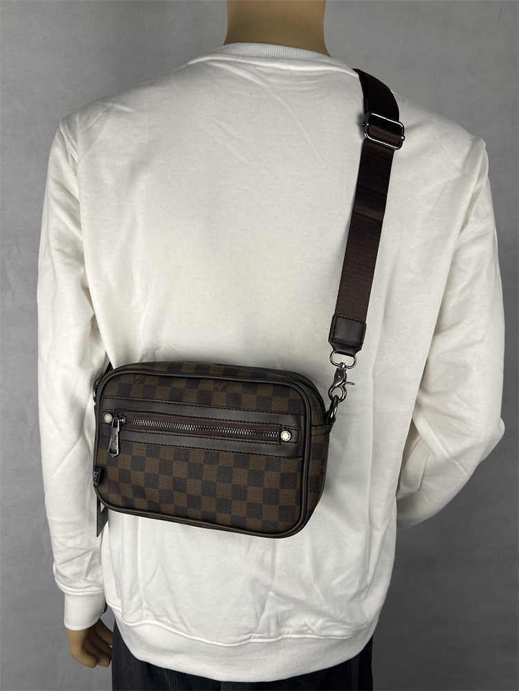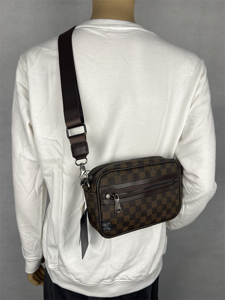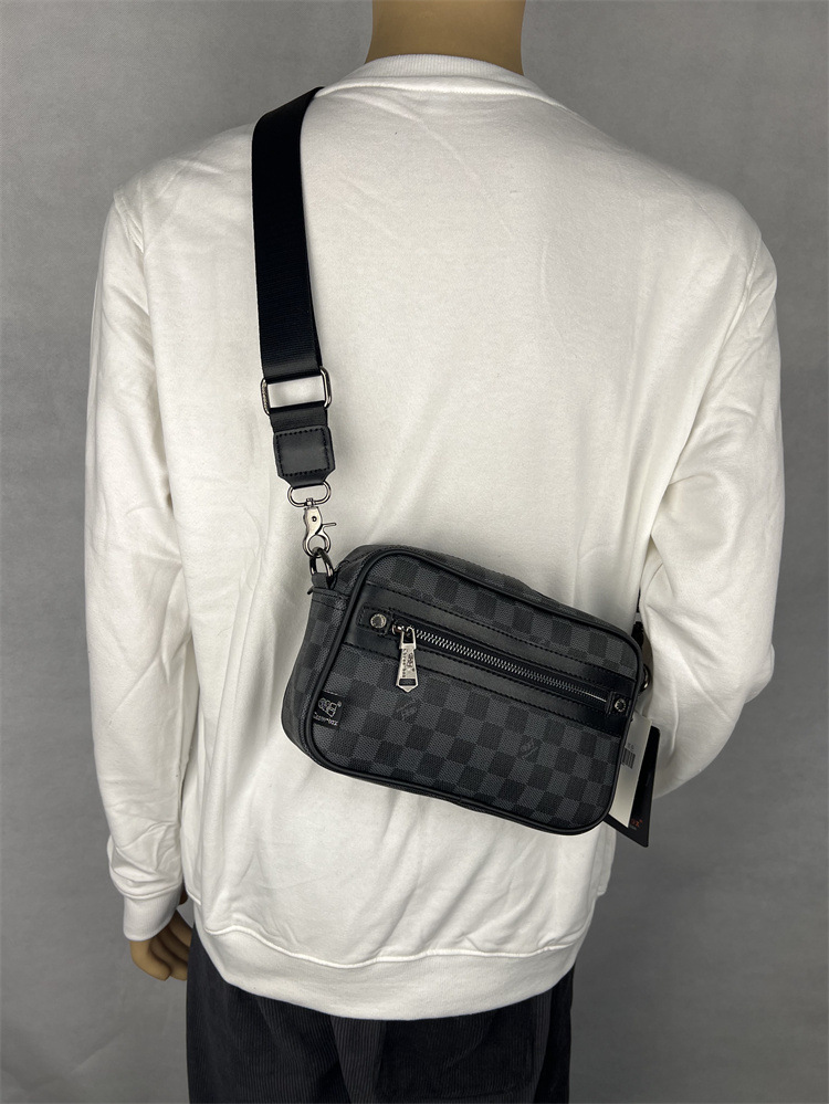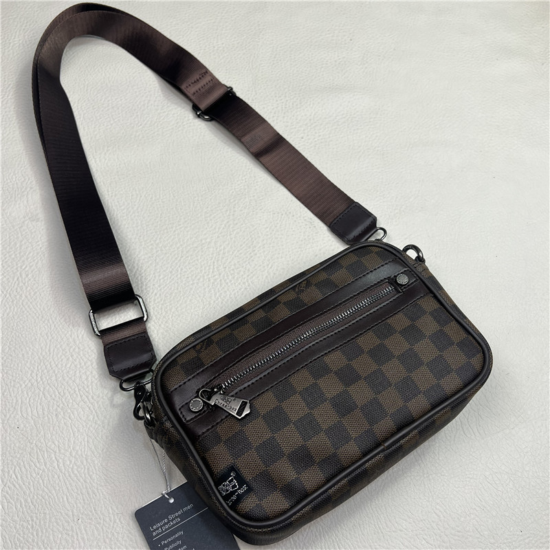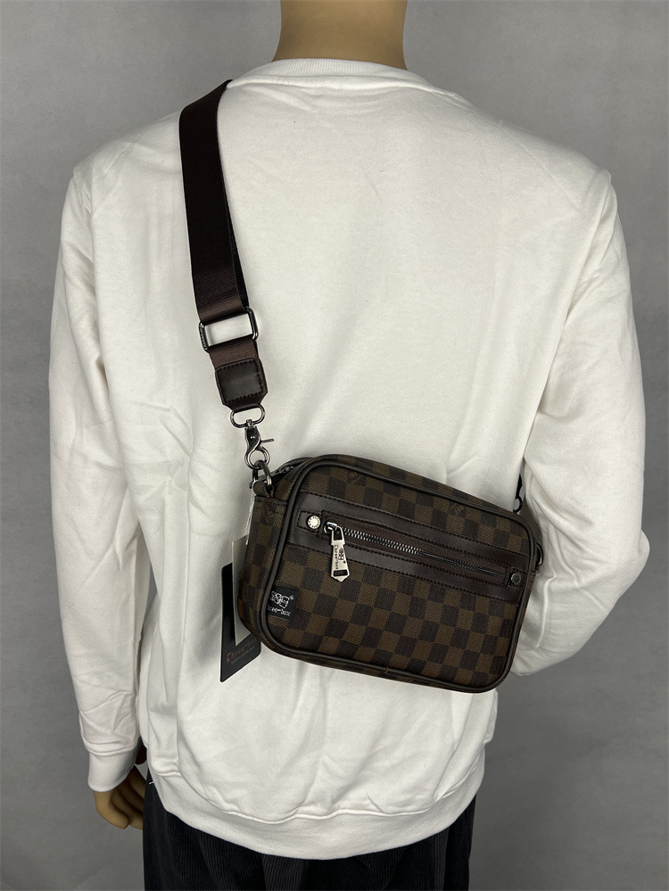三盒子新品国潮男包包 时尚格子日韩单肩包 休闲韩版背包胸包跨包