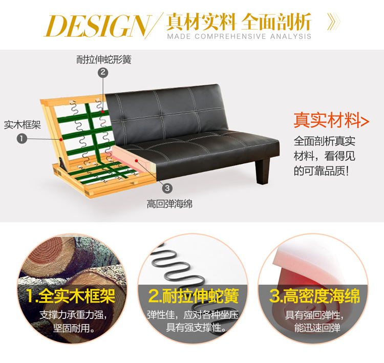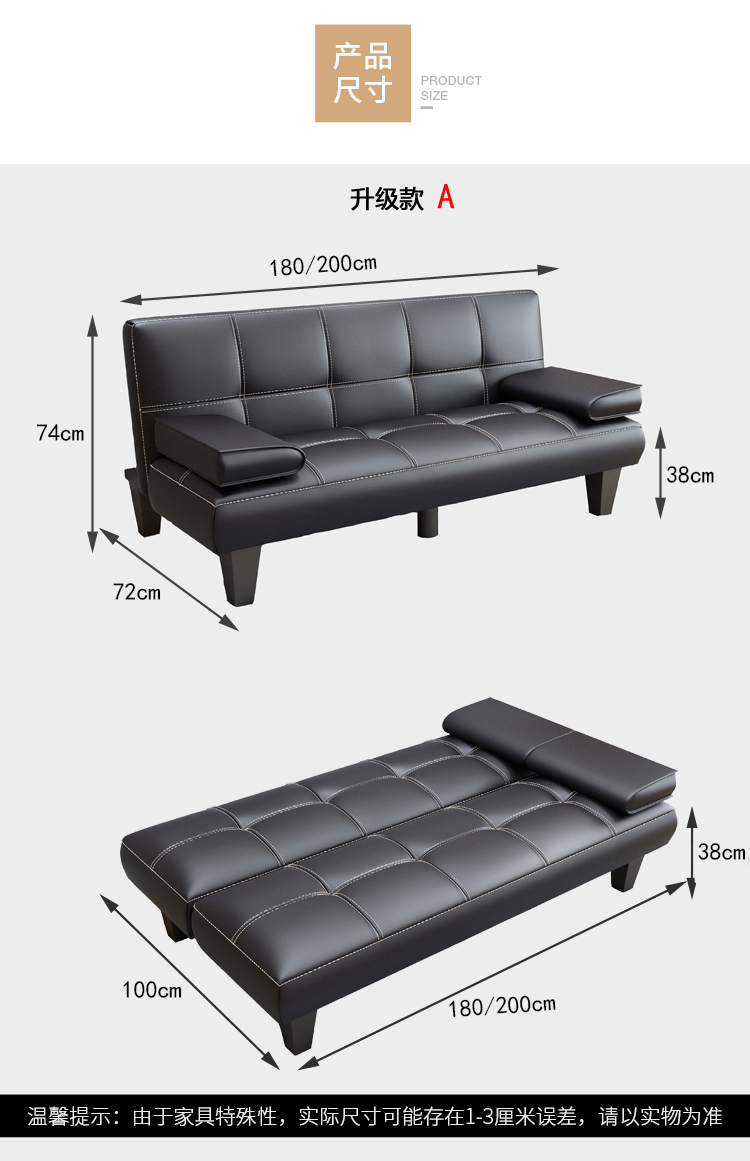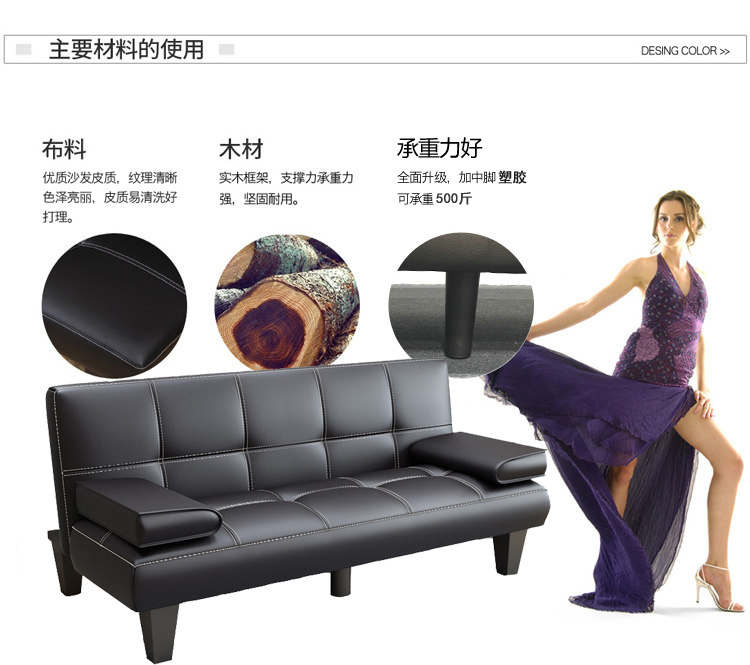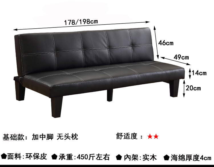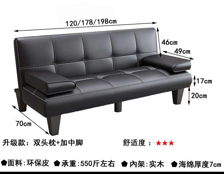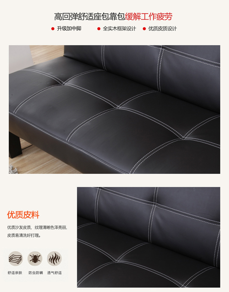 작은 아파트 가죽 소파 거실 접이식 게으른 소파 베드 사무실 발코니 3 위치 다기능 간단한 이중 사용