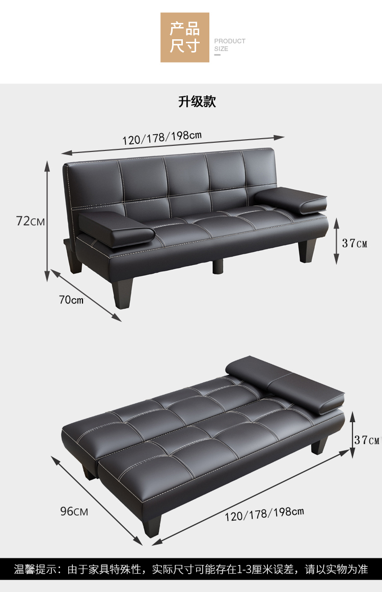 작은 아파트 가죽 소파 거실 접이식 게으른 소파 베드 사무실 발코니 3 위치 다기능 간단한 이중 사용스토어 가기